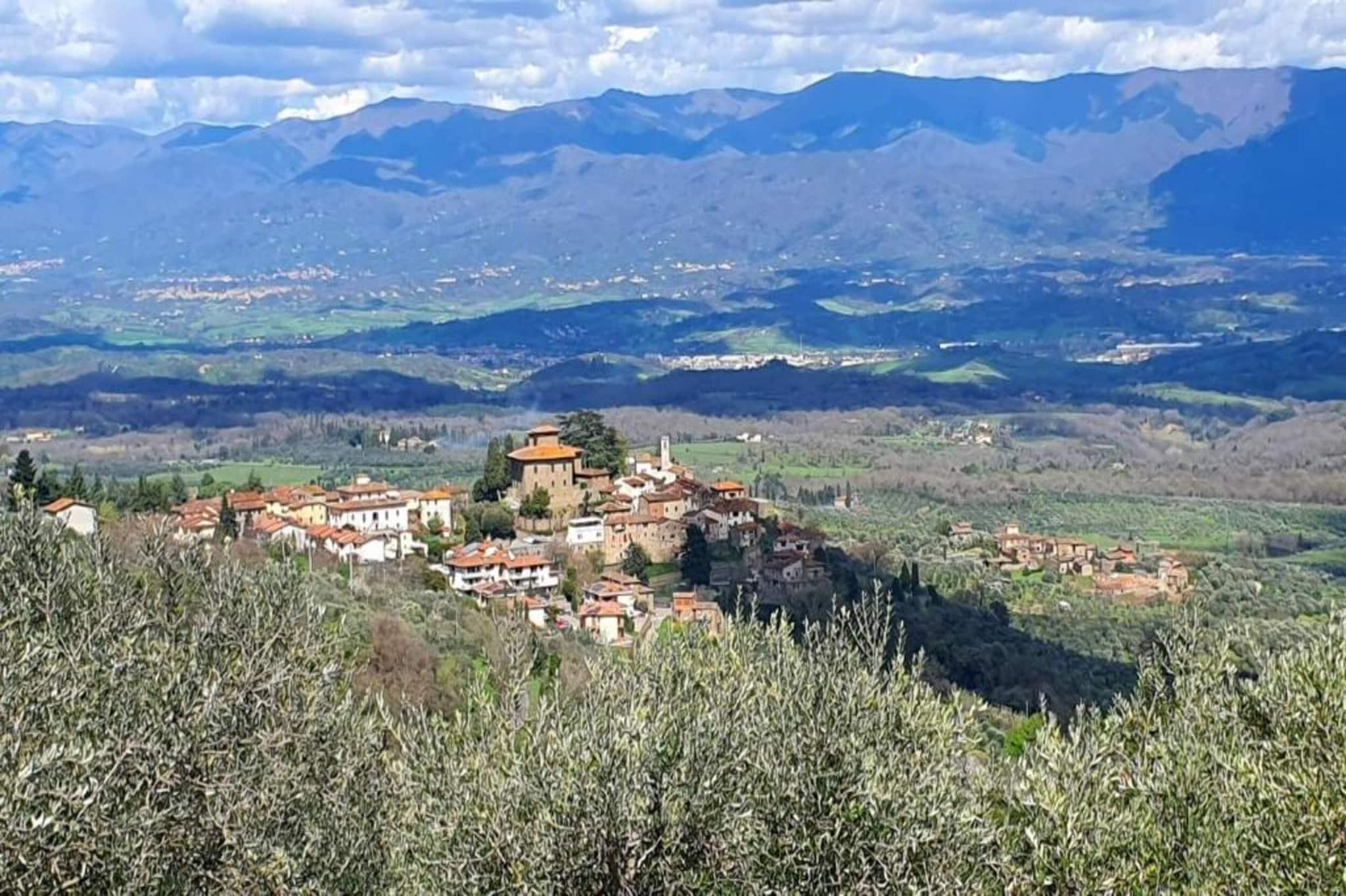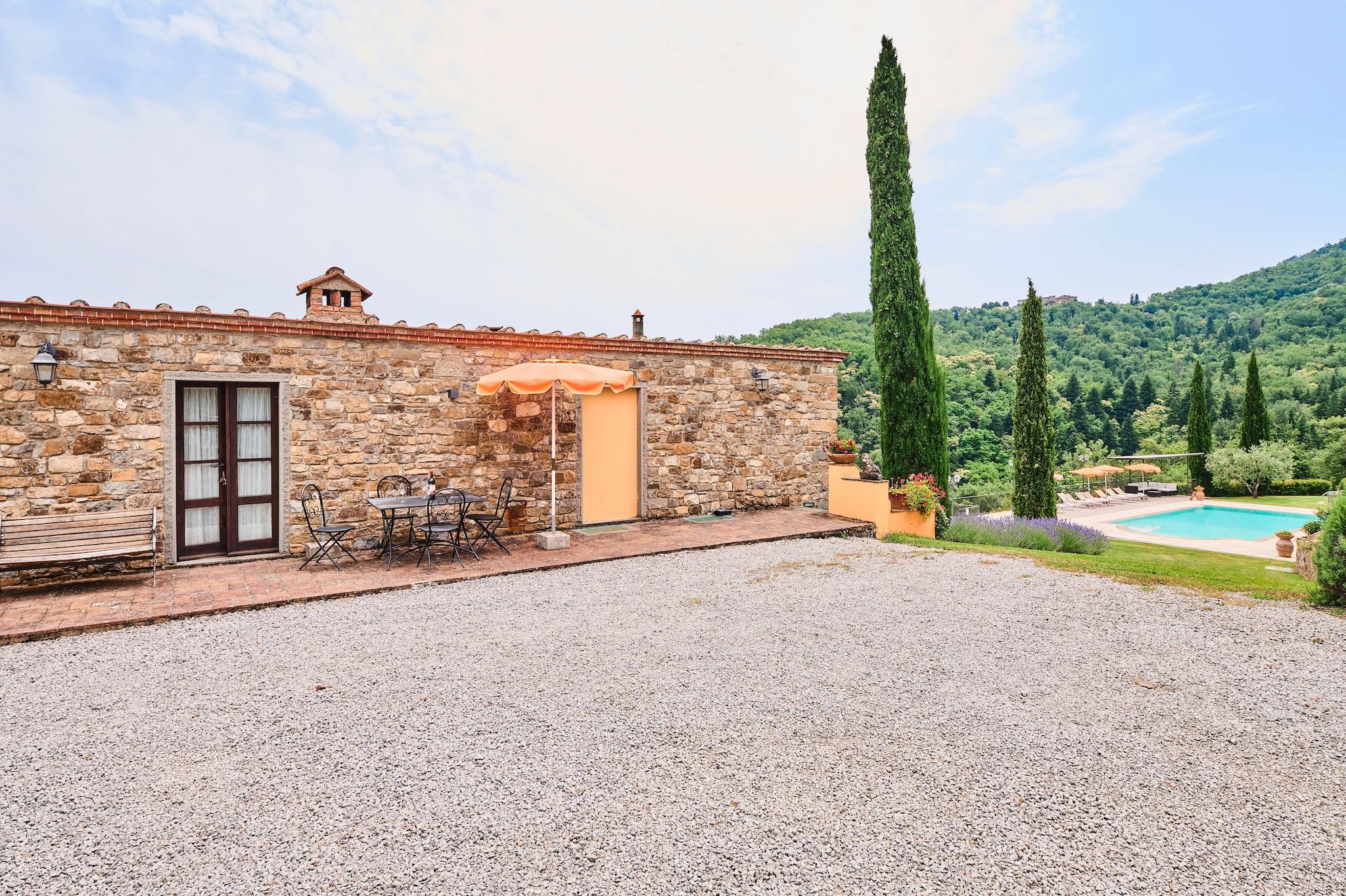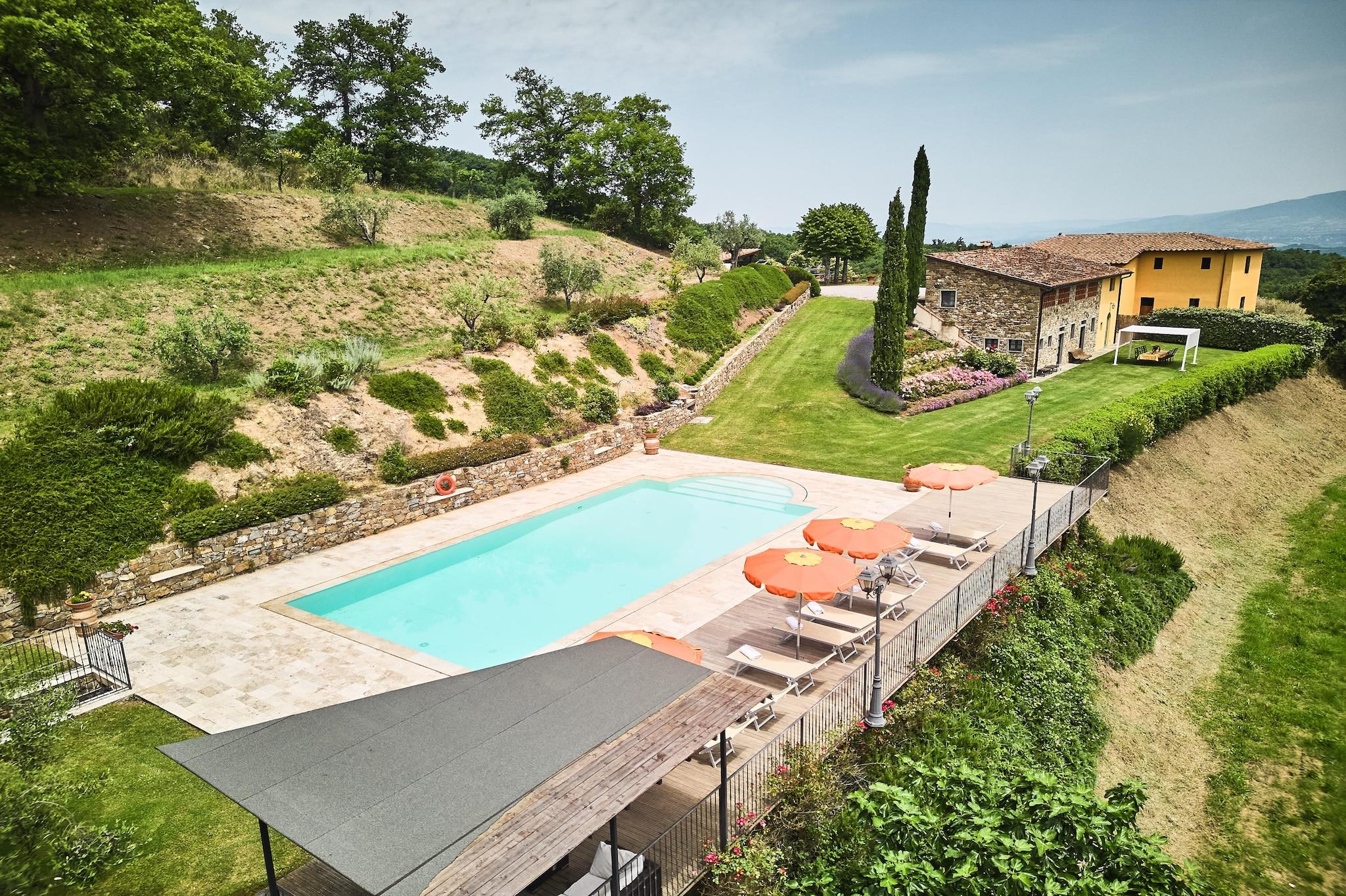 Beliggende midt i Chiantis bølgende bakker, tilbyder denne smukt restaurerede bondegårdslejlighed i Cavriglia en autentisk toscansk oplevelse for op til 4 gæster. Beliggende på første sal i en traditionel villa, blander den rustik charme med komfort og har udsigt over et fredfyldt landskab fyldt med vinmarker og olivenlunde. Ejendommen er en del af et større bondehus opdelt i to uafhængige enheder, med adgang til en fælles have og swimmingpool, perfekt til at slappe af, læse eller nyde alfresco-måltider. Renoveret med materialer af høj kvalitet, lejligheden tilbyder en elegant, men hjemlig atmosfære ideel til par eller små familier, der ønsker at slappe af i naturen. Blot en kort køretur væk kan du udforske de kulturelle skatte i Firenze og Siena, eller besøge nærliggende middelalderlandsbyer og slotte. Den charmerende by Cavriglia (3,5 km) byder på lokale restauranter og vigtige butikker, mens Castelnuovo-søen giver mulighed for fredelige gåture eller picnic. Uanset om du er her til vinsmagning eller toscansk udsigt, er denne villa et perfekt tilflugtssted.