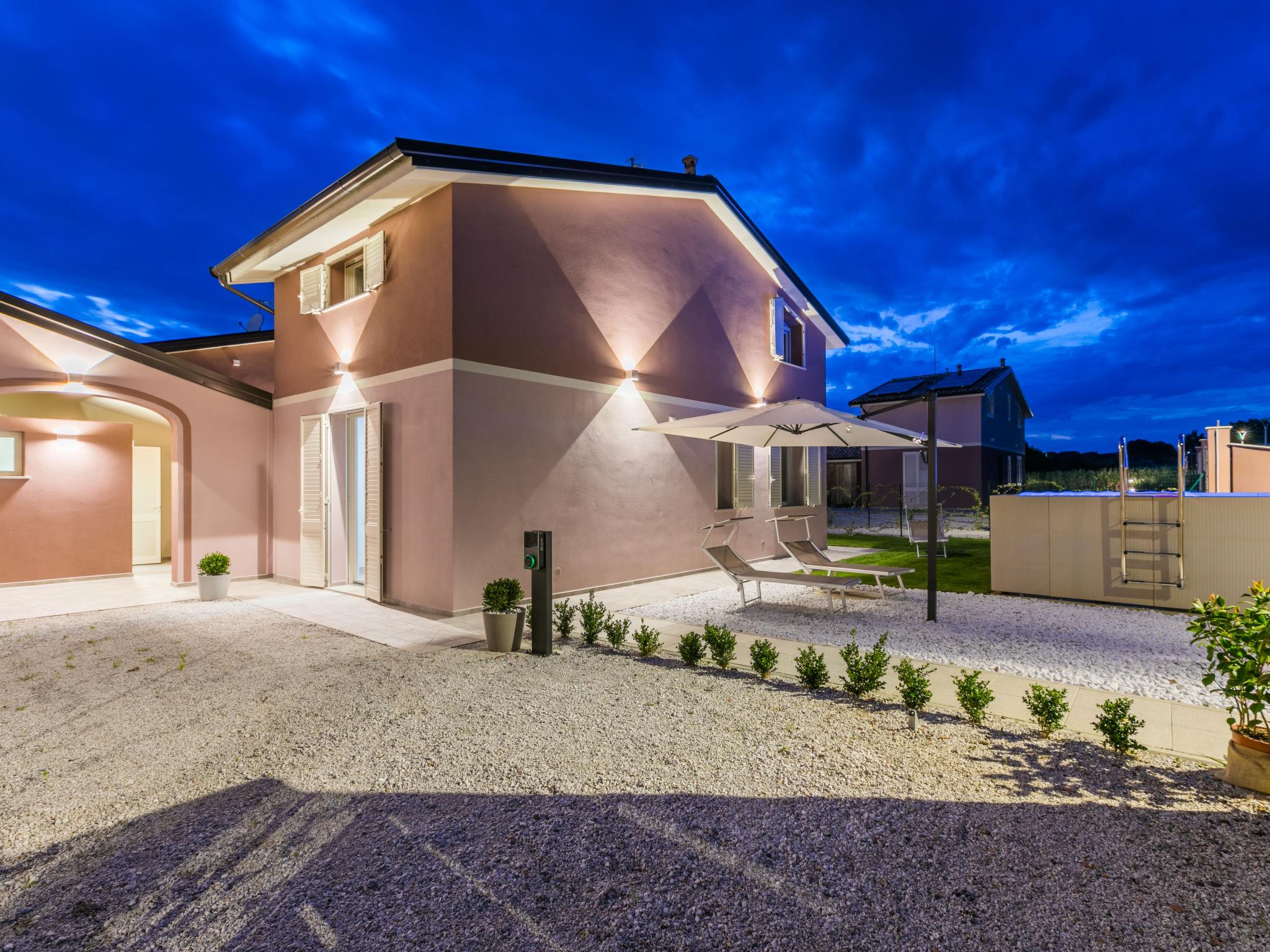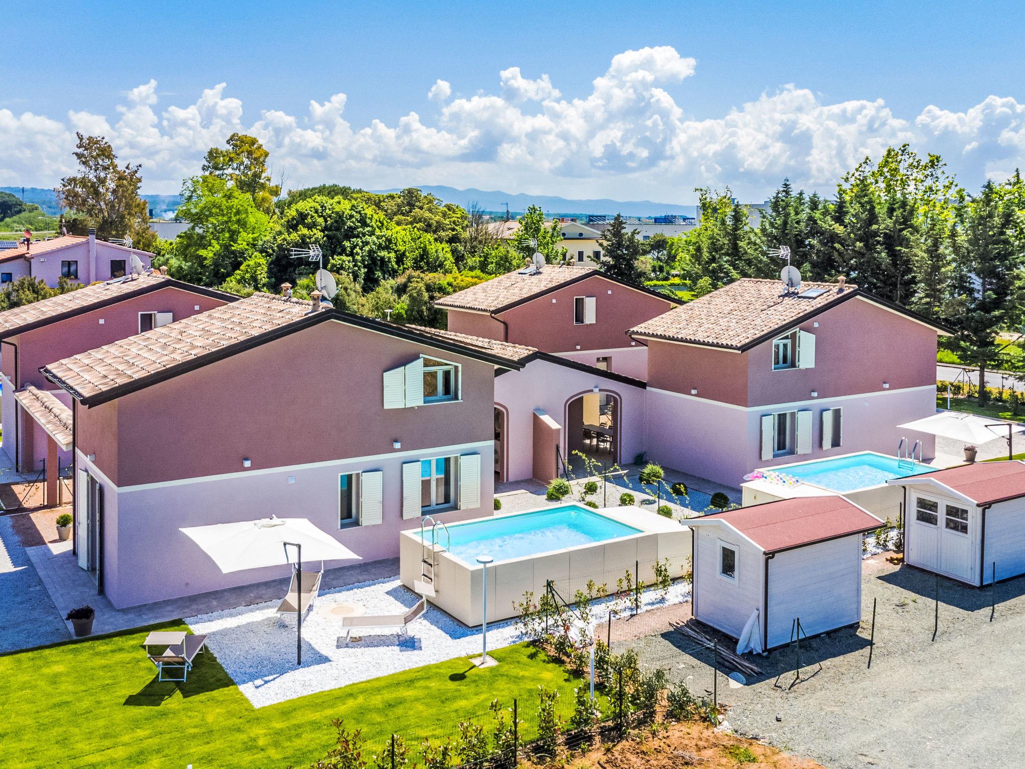 Residence "Borgo il Vallin delle Conche", built in 2025. 4 houses in the residence. 2 km from the centre of San Pietro in Palazzi, 4 km from the centre of Cecina, 4.8 km from the sea, 4.8 km from the beach. Private: property 600 m2 (fenced), garden, swimming pool (above ground) (3 x 5 m, depth 125 - 125 cm, seasonal availability: 20.May. - 15.Oct.). Pool maintenance by the owner/gardener. Linen change (suppl. charge extra). Towel change (suppl. charge extra). Parking (for 2 cars) at the house. E-charging station. Supermarket, shopping centre, restaurant, bakery, café 300 m, bus stop "SP 68 Variante Ponte" 500 m, railway station "Cecina" 3.5 km, sandy beach "Le Gorette" 4.8 km, thermal baths "Calidario" 35 km. Marina 5 km, golf course (9 hole) 11 km. Nearby attractions: Bolgheri 20 km, Pisa 60 km, Lucca 80 km, Firenze 110 km. Please note: Additional accommodations can be booked. Property ref. IT5308.310.1-4 is situated on the same property.