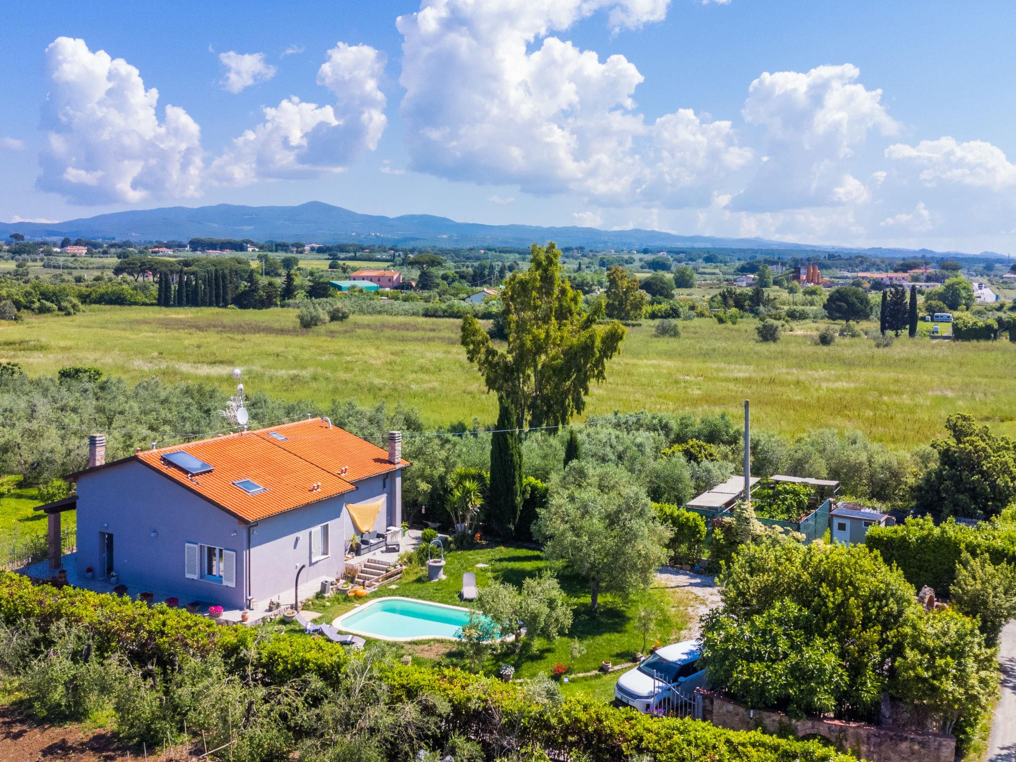 2-family house, 3 storeys, surrounded by trees and fields. 650 m from the centre of San Pietro in Palazzi, on the outskirts, 3.5 km from the centre of Cecina, 4.5 km from the sea, 4.5 km from the beach, in a cul-de-sac, in the countryside. Private: property 500 m2, natural garden, swimming pool (depth 110 - 120 cm, seasonal availability: 12.Apr. - 01.Nov.). Unconventional pool shape. In the house: fitness room, steam room, billiard table. Linen change (suppl. charge extra). Towel change (suppl. charge extra). Motor access (100 m via unmade road). Parking on the premises. Supermarket 2 km, shopping centre 2 km, restaurant 150 m, bus stop 400 m, sandy beach "Le Gorette" 4.5 km, thermal baths "Calidario" 40 km. Marina 5.5 km, golf course (9 hole) 13.5 km. Nearby attractions: Pisa 55 km, Lucca 80 km, Firenze 115 km.
