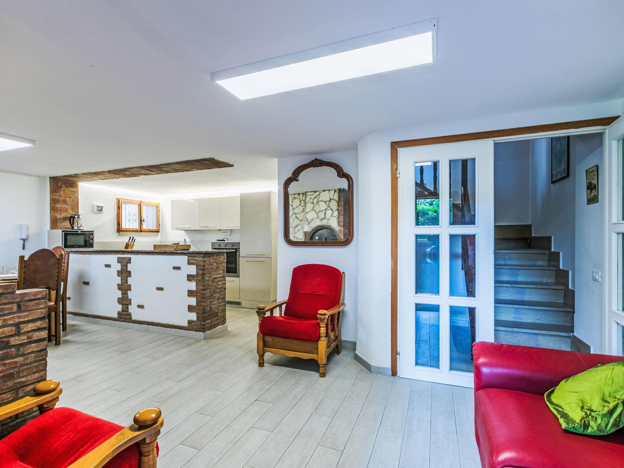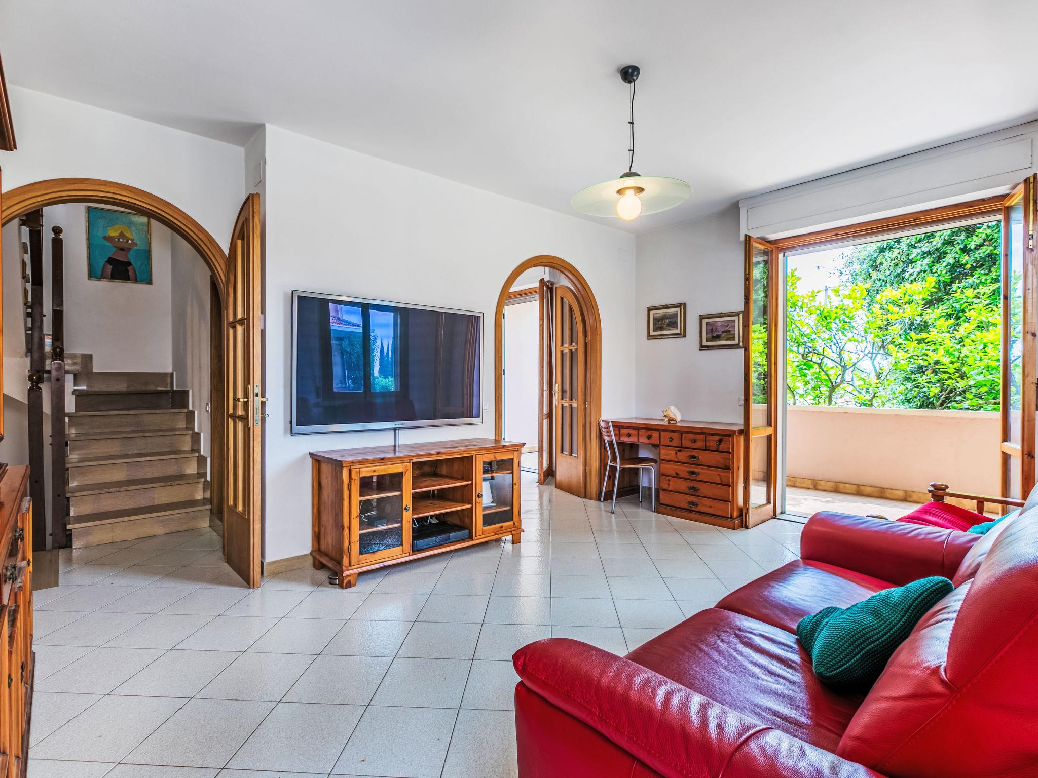 "Piccolo Leccio", 5-room maisonette 140 m2. Comfortable and cosy furnishings: living room with TV. Exit to the balcony. 1 room with 1 x 2 bunk beds. Exit to the balcony. Shower/WC. (on the lower ground floor: oven, dishwasher, 4 induction hot plates, toaster, kettle, microwave, electric coffee machine). Exit to the garden. Upper floor: 1 double bedroom with 1 double bed and air conditioning. Exit to the balcony. 1 double bedroom with 1 double bed and air conditioning. 1 room with 1 x 2 bunk beds. 2nd upper floor: shower/bidet/WC. Balcony, garden. Facilities: washing machine, dryer, mosquito net, children's high chair, baby cot. Internet (WiFi, free). Please note: maximum 1 pet/ dog allowed. Fire extinguisher. IT049007C2D865RPQQ