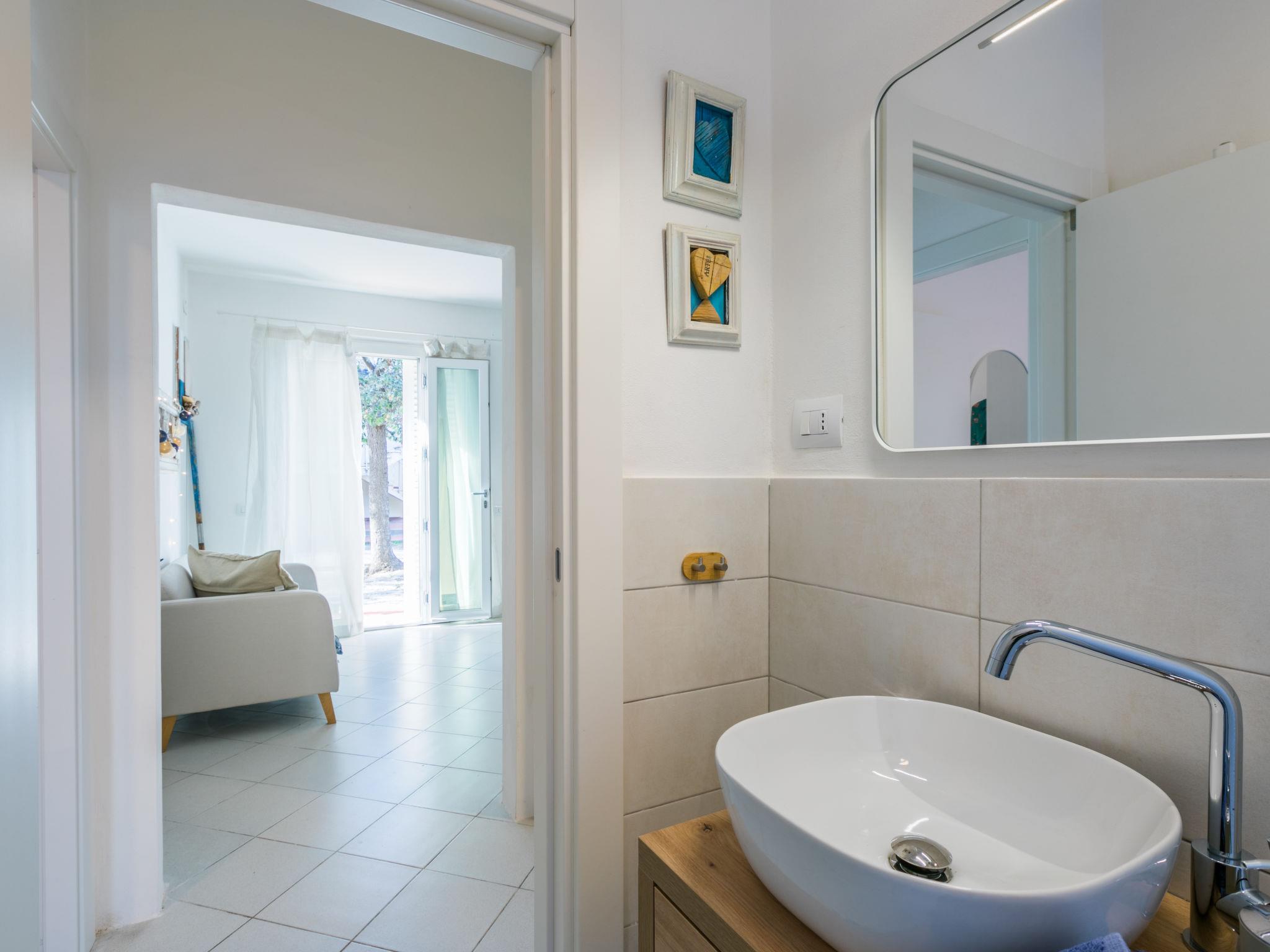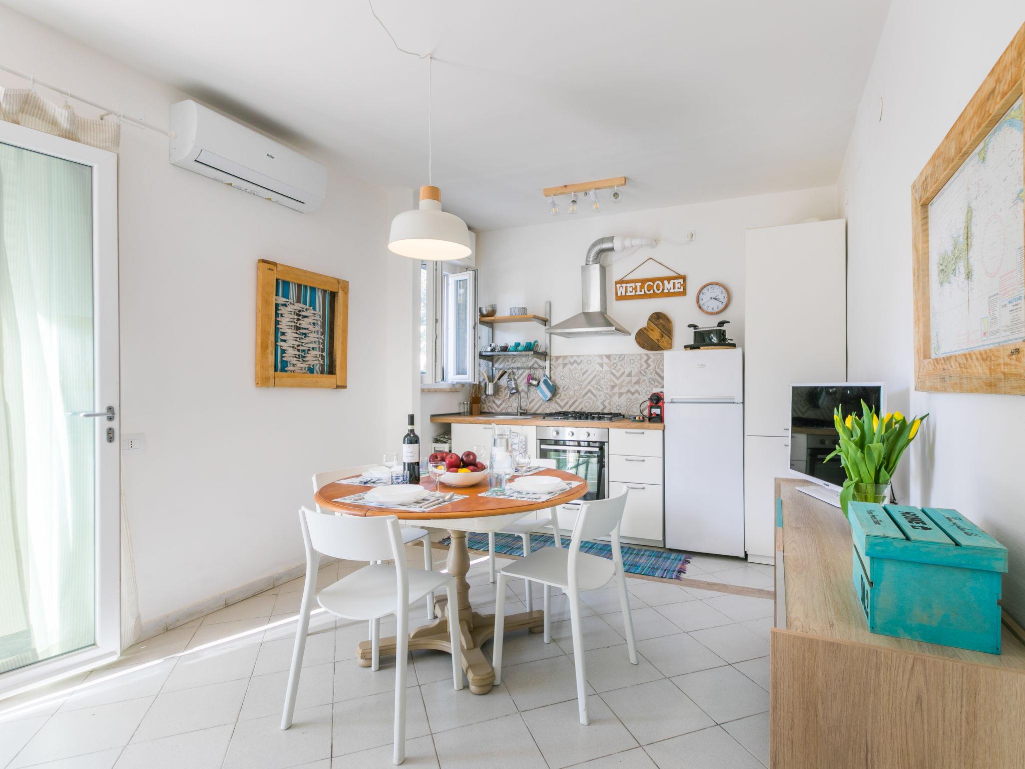 "Casa e mare", 3-room apartment 55 m2, on the ground floor. Beautiful and modern furnishings: living/dining room with dining table, digital TV, electric heating and air conditioning. Exit to the balcony. 1 double bedroom with 1 double bed. 1 room with 2 beds. Open kitchen (oven, Gas stove, 4 gas rings, toaster, kettle, electric coffee machine). Exit to the balcony. Shower/bidet/WC. Gas heating. Small balcony 8 m2. Balcony furniture, barbecue (portable). Facilities: washing machine, iron, baby cot for up to 2 year olds, hair dryer. Internet (WiFi, free). Please note: maximum 1 pet/ dog allowed. Private entrance. Bedlinen, towels, final cleaning and all energy costs are included. IT049007C2ZMZLIU85