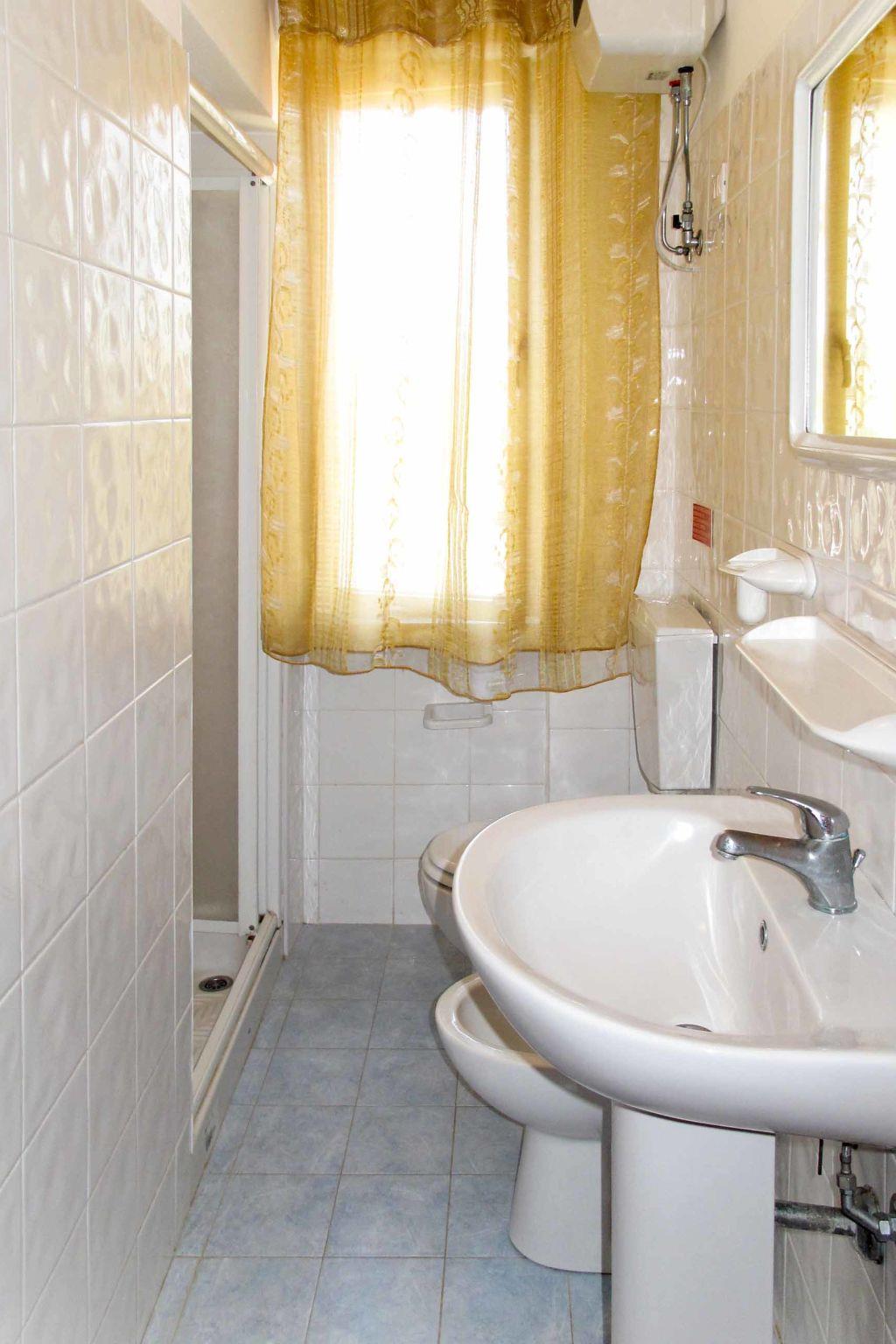 "Riviera 5", 3-room apartment 37 m2 on 1st floor. Practical furnishings: living/sleeping room with 1 double sofabed (160 cm), dining table, satellite TV and air conditioning. Exit to the balcony. 1 room with 1 french bed (160 cm, length 190 cm). 1 room with 1 x 2 bunk beds. Open kitchen (4 gas rings). Shower/WC. Gas heating (extra), air-conditioning. Balcony 15 m2. Balcony furniture. Facilities: baby cot. Internet (WiFi). Maximum 2 pets/ dogs allowed. IT049007B4QVS43RZC