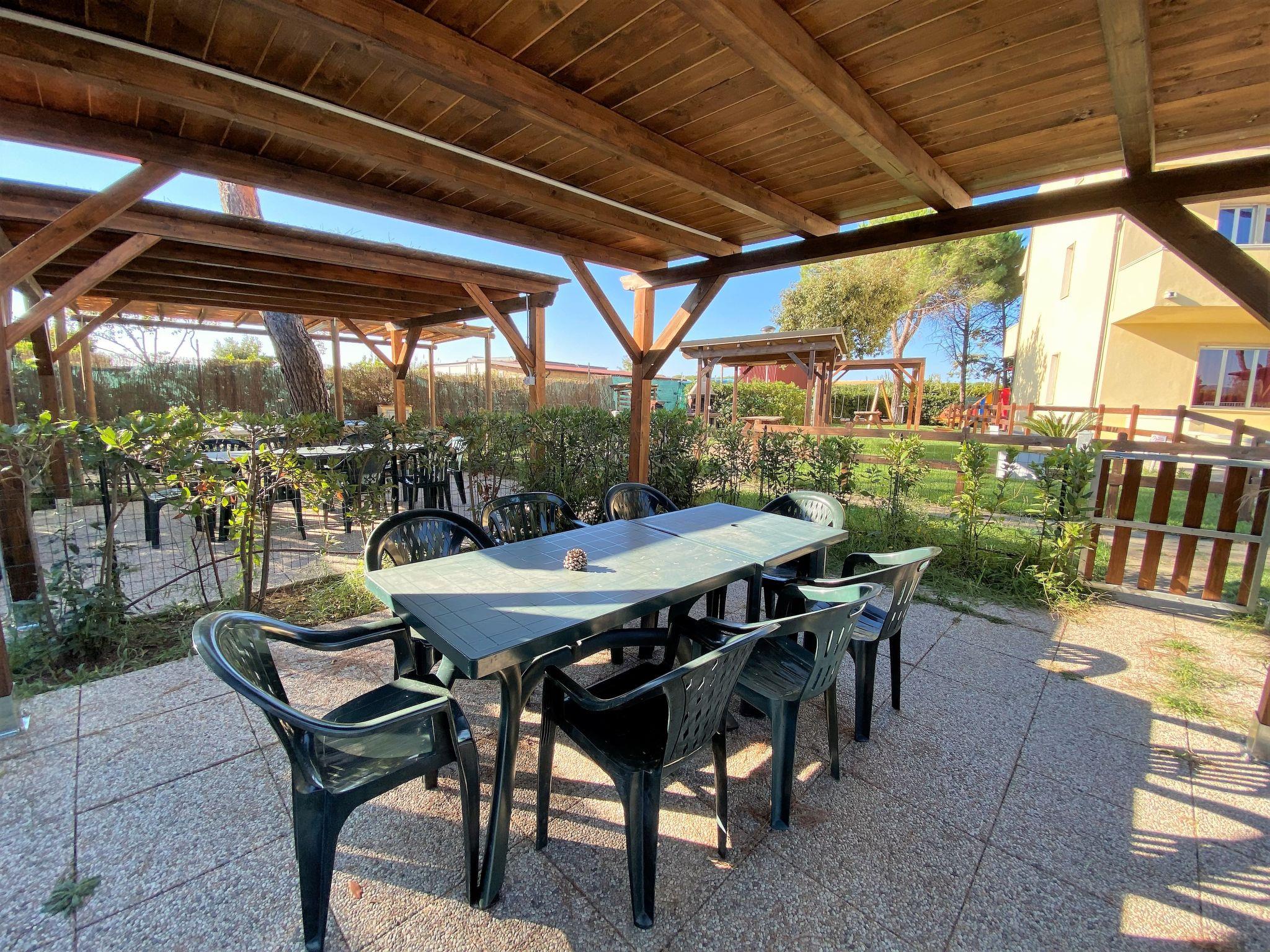 Small residence "Riviera", 3 storeys, surrounded by trees and meadows. 10 apartments in the residence. 600 m from the centre of Cecina Mare, on the outskirts, 650 m from the sea. For shared use: property 4'500 m2 (fenced), trees, swimming pool (12 x 5 m, seasonal availability: 23.May. - 30.Sep. pool opening hours: 09:30-19:00). Table tennis, arbour, garden furniture, barbecue, children's playground. In the house: bar, WiFi, washing machine (for shared use, extra). Linen change (suppl. charge extra). Towel change (suppl. charge extra). Parking on the premises. Shop 700 m, supermarket 2.7 km, restaurant 1 km, bus stop 1.2 km, sandy beach "Marina di Cecina" 650 m. Nearby attractions: Livorno 40 km, Pisa 60 km, Lucca 90 km, Firenze 120 km. Residence with electric gates.