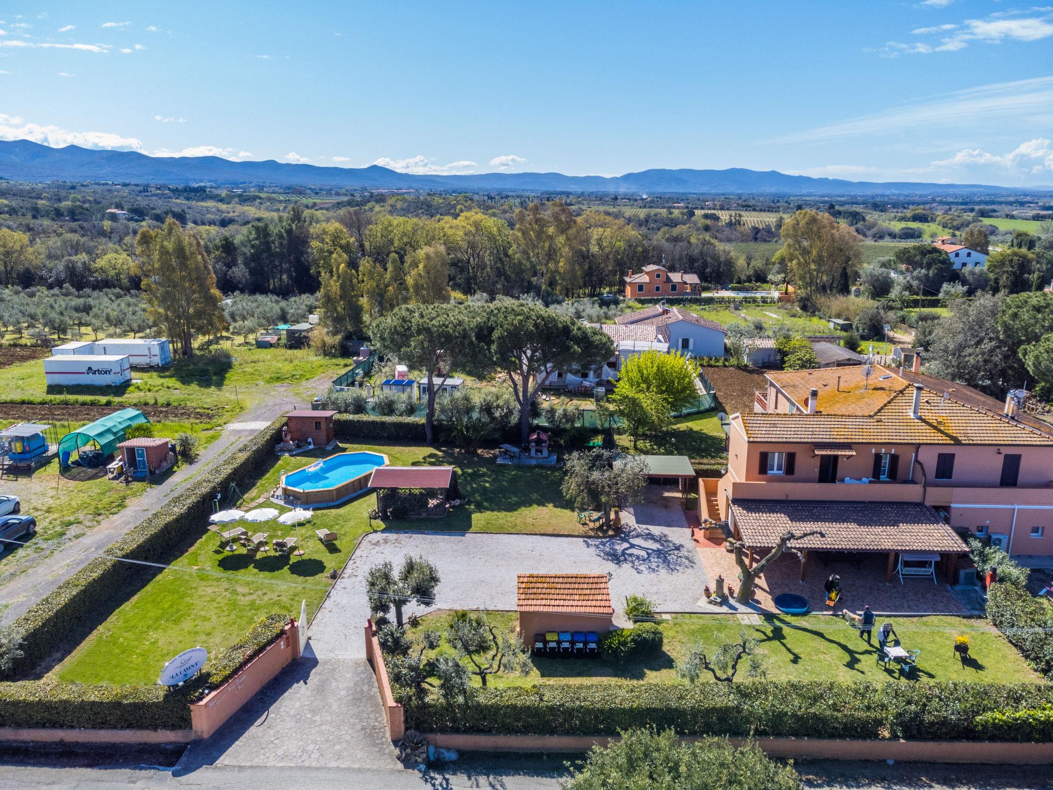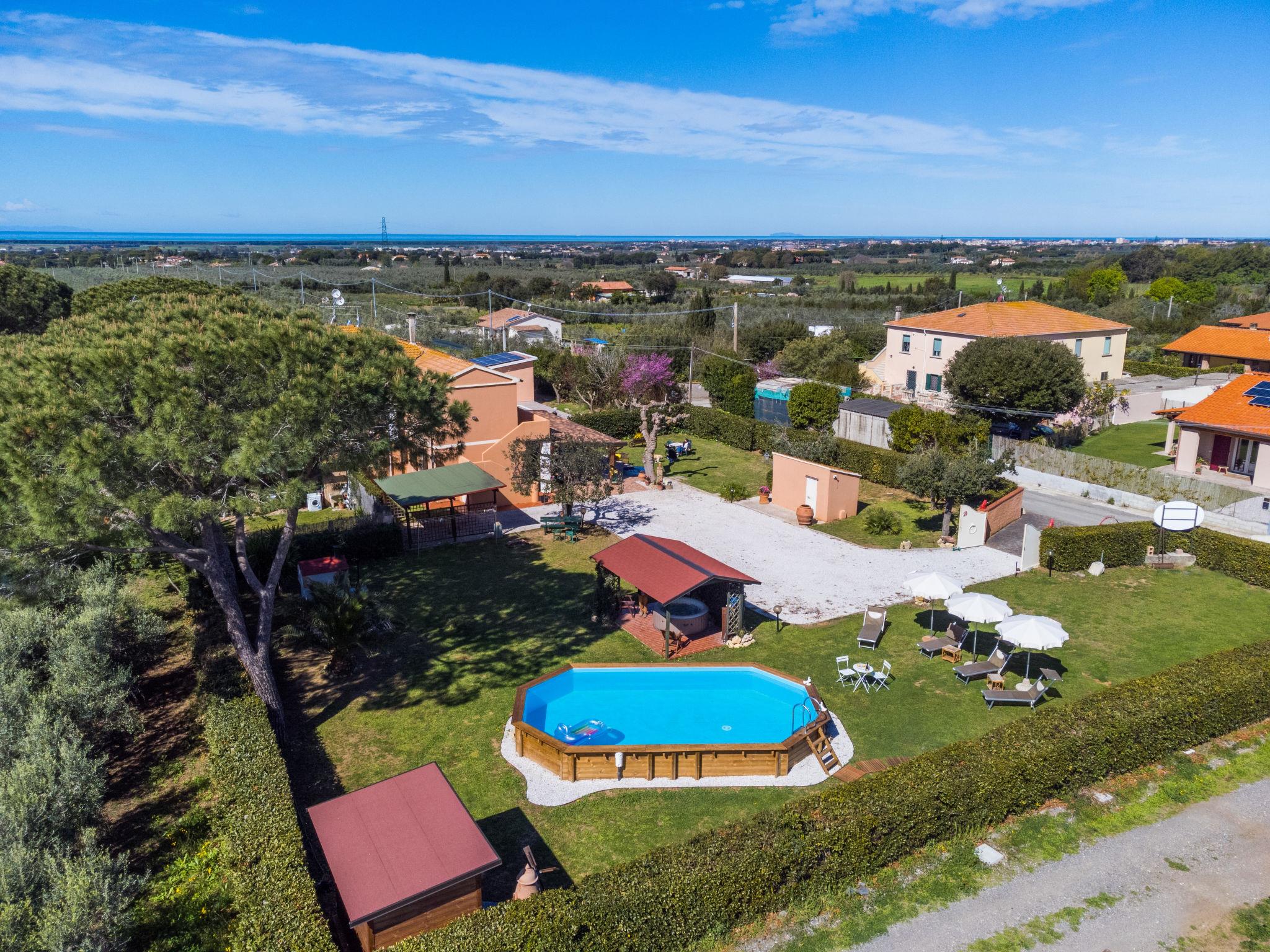 Cottage "La Casina", 2 storeys, semi-detached. 2 apartments in the property. 7 km from the centre of Cecina, 7 km from the centre of Bibbona, in a quiet, sunny position, 7 km from the sea. For shared use: property 700 m2 (fenced) with lawn and trees, swimming pool (above ground) (10 x 5 m, depth 140 - 140 cm, seasonal availability: 01.Apr. - 04.Nov.). Outdoor shower, hot tub. In the house: washing machine (extra). Parking (for 3 cars) on the premises. Shop 4 km, supermarket 5 km, restaurant 4 km, bus stop "V. Della Macchia, Aurelia" 3 km, sandy beach "Marina di Cecina" 7 km. Nearby attractions: Bolgheri 12 km, Livorno 45 km, Pisa 60 km, Lucca 80 km. Please note: car recommended. The owner does not accept any youth groups.