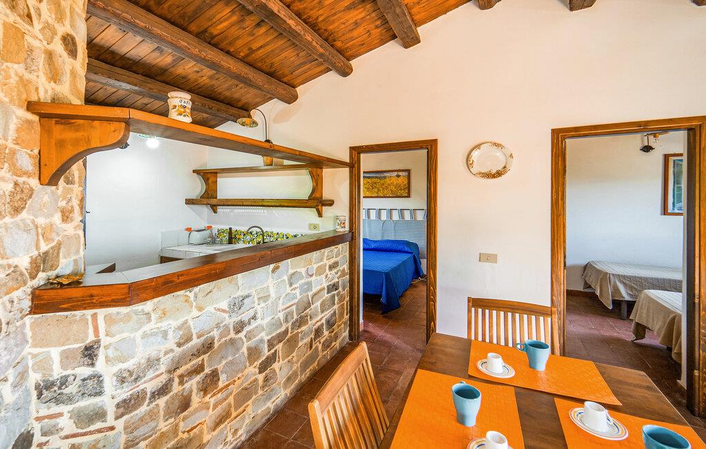 Denne velindrettede ferielejlighed kombinerer rustik charme med moderne komfort og lægger op til en hyggelig pause med varme træelementer og traditionelle møbler. Tilbered jeres måltider i det indbydende køkken på landet, og tag plads ved det rummelige træbord. Find jer godt til rette i den hyggelige stue og nyd selskabelige spilleaftener eller afslappede læsetimer med et glas vin.