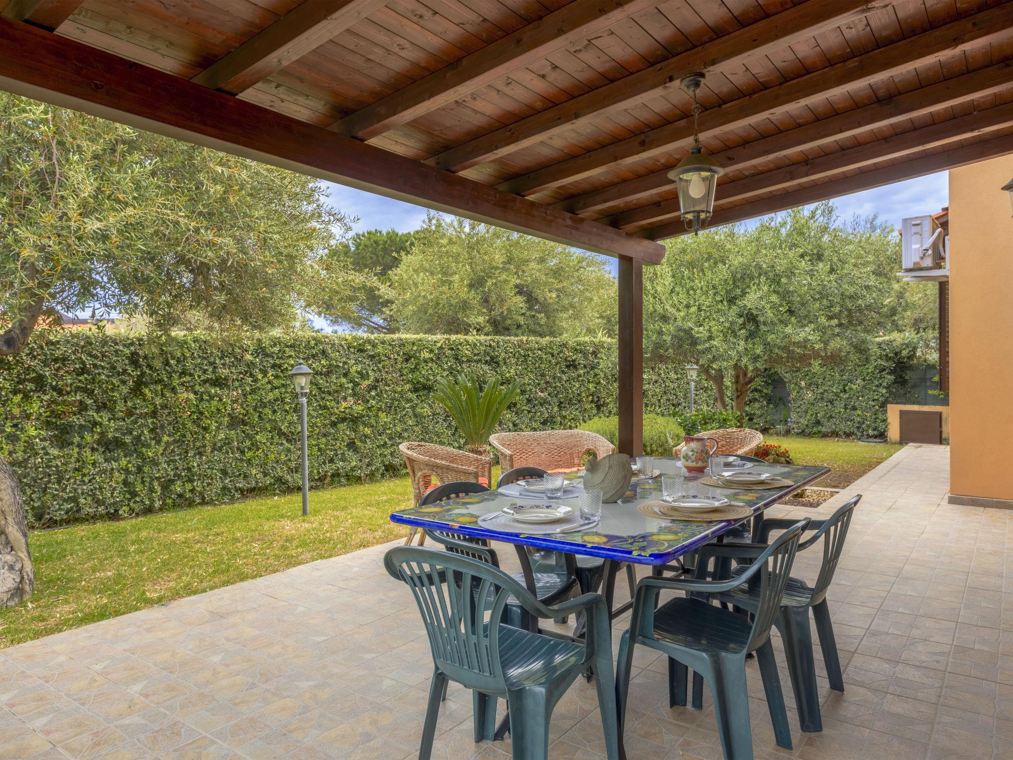 Villa "Olivella". 5 km from the centre of Cefalù, 350 m from the sea. Private: property 850 m2 (fenced), garden with lawn and trees, swimming pool (8 x 4 m, depth 150 cm, seasonal availability: 01.Apr. - 31.Oct.). Outdoor shower, garden furniture, barbecue, pool maintenance by the owner/gardener. Heating to be paid on the spot (01.Apr. - 30.Nov.), heating available only from 01.Dec. - 31.Mar.. Parking on the premises. Supermarket 2 km, restaurant 2 km, bar 2 km, bus stop "Bus navetta per Cefalù" 300 m, railway station "Lascari" 2 km, sandy beach "Capo Playa" 350 m. Nearby attractions: Porto Cefalù Aliscafi per Isole Eolie 10 km, Castelbuono 40 km, Parco Madonie 42 km, Palermo 60 km, Monreale 73 km, Piazza Armerina 124 km. Please note: car recommended. Residence with electric gates.