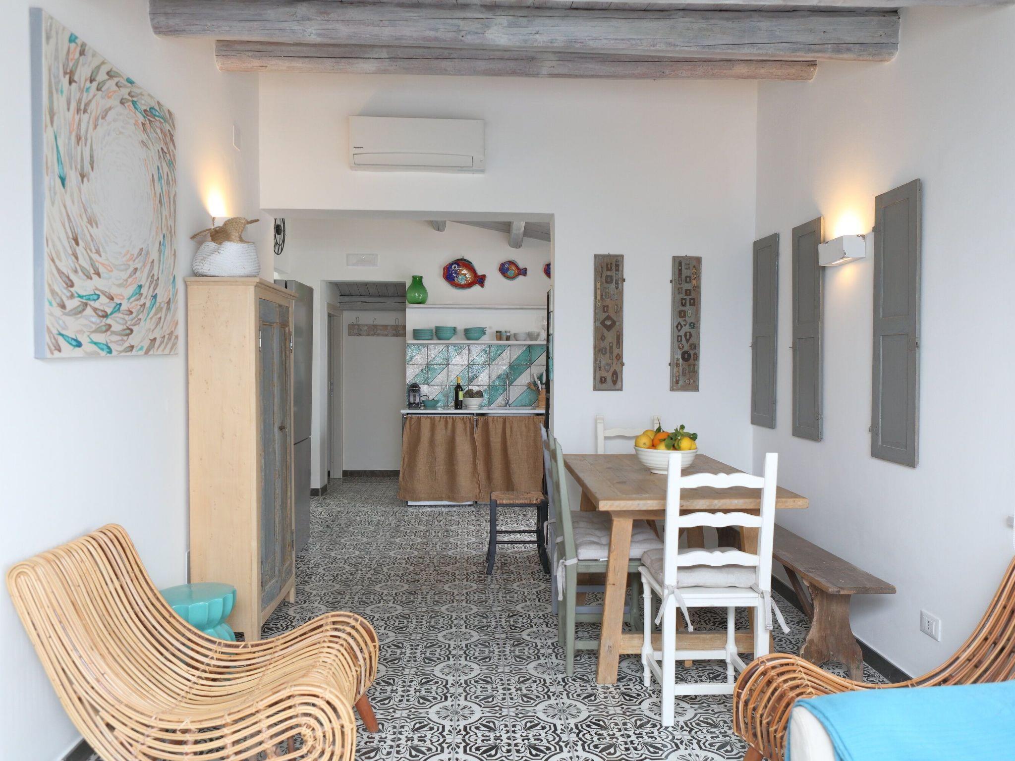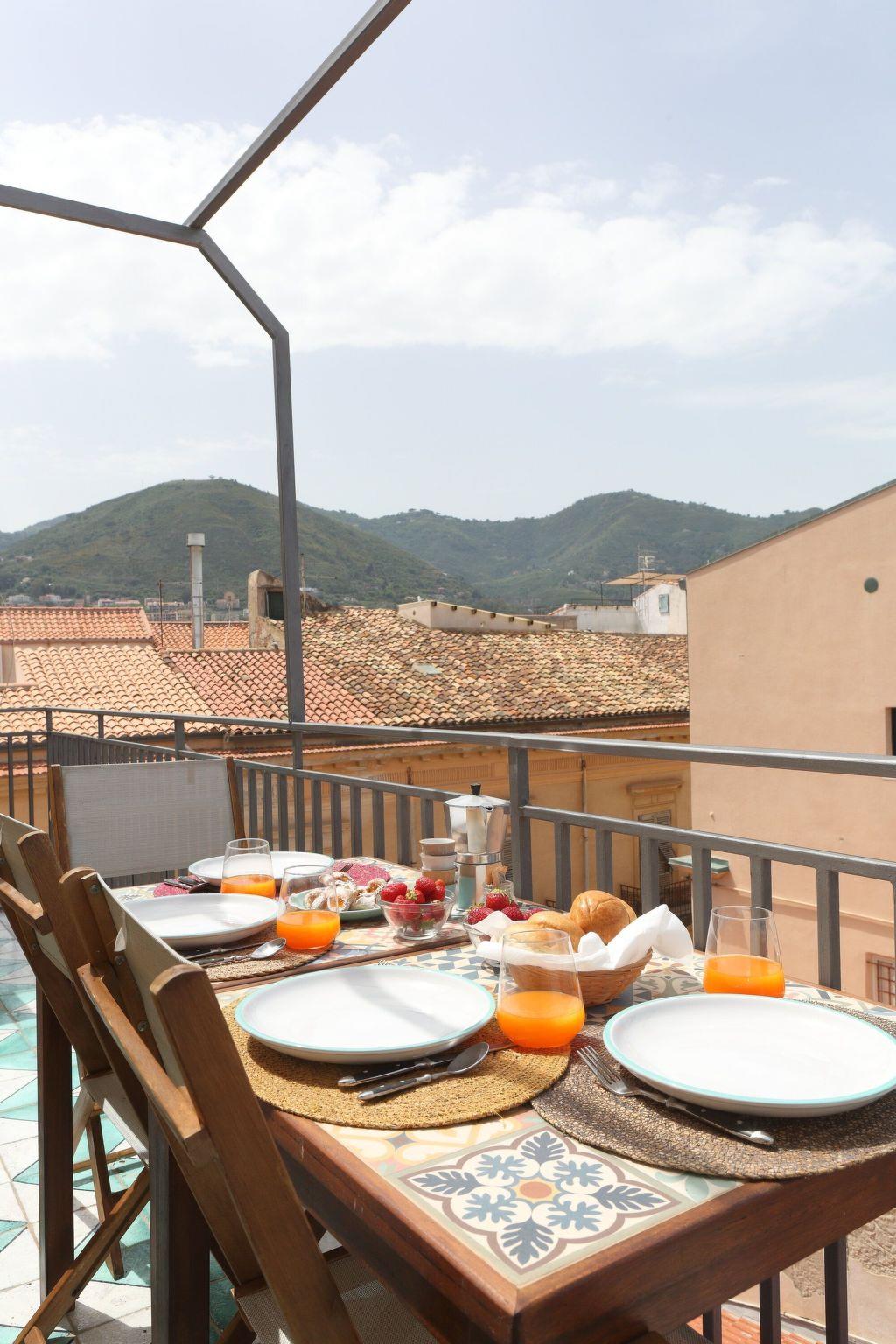 Right above the water in the heart of Cefalù’s historic center, Ondina is the perfect location for anyone wishing to get the very best out of Cefalù. With its seafront terrace and second cathedral facing roof terrace, Ondina offers unparalleled sea and rooftop views. Ondina is located on the top floor of a seafront house in the historic center of Cefalù. The apartment has recently been lovingly refurbished to a high level with features such as Sicilian ceramic hand painted tiles and locally sourced restored furniture. Several flights of stairs lead to the front door which opens onto the kitchen. A bathroom with shower is located on the immediate right. The apartment offers an airy and comfortably furnished open space living/dining room with French windows opening over the sea and the rocky coastline. Through a sliding door at the front of the room is located a double bedroom and en-suite bathroom. The bedroom boasts lovely sea views and the bath, a large shower.A glass door off of the small but well equipped kitchen leads one to the long suspended terrace with stunning views of the sea. It is furnished for relaxing and dining and provides the ideal place for al fresco dining and sunset aperitifs.The single and second double bedrooms are located at the back of the kitchen and have been created under the eaves of the sloping roof of the historic property. Both have access to a private terrace overlooking the cathedral and the characteristic tiled roofs of Cefalù’s historic center. One bedroom features two antique single beds and the other a double bed. Ondina is ideal for those who do not wish to hire a car, as everything you could possibly need is outside of your front door. Restaurants, bars, cafés, shops and the beach are all within easy walking distance.