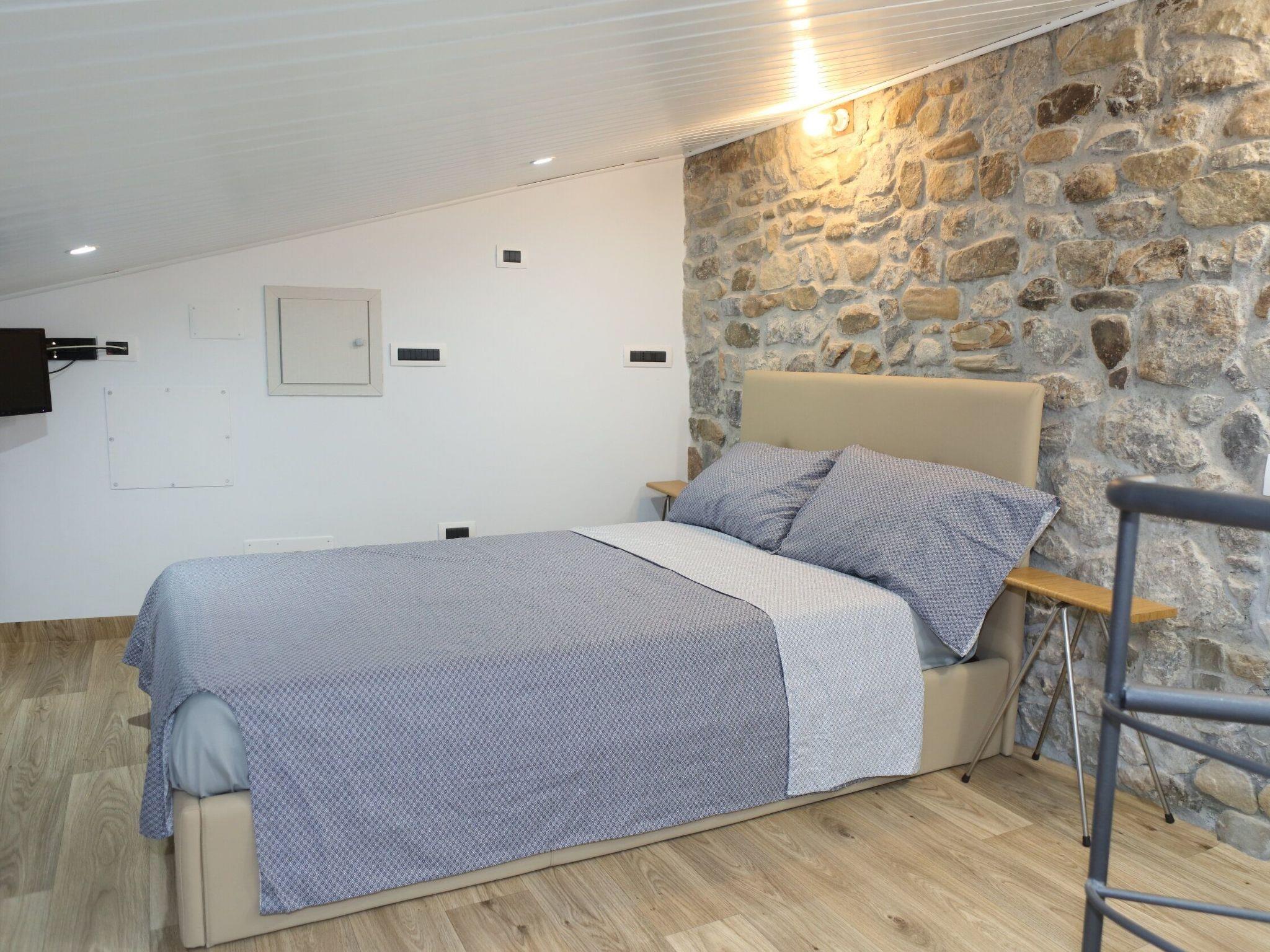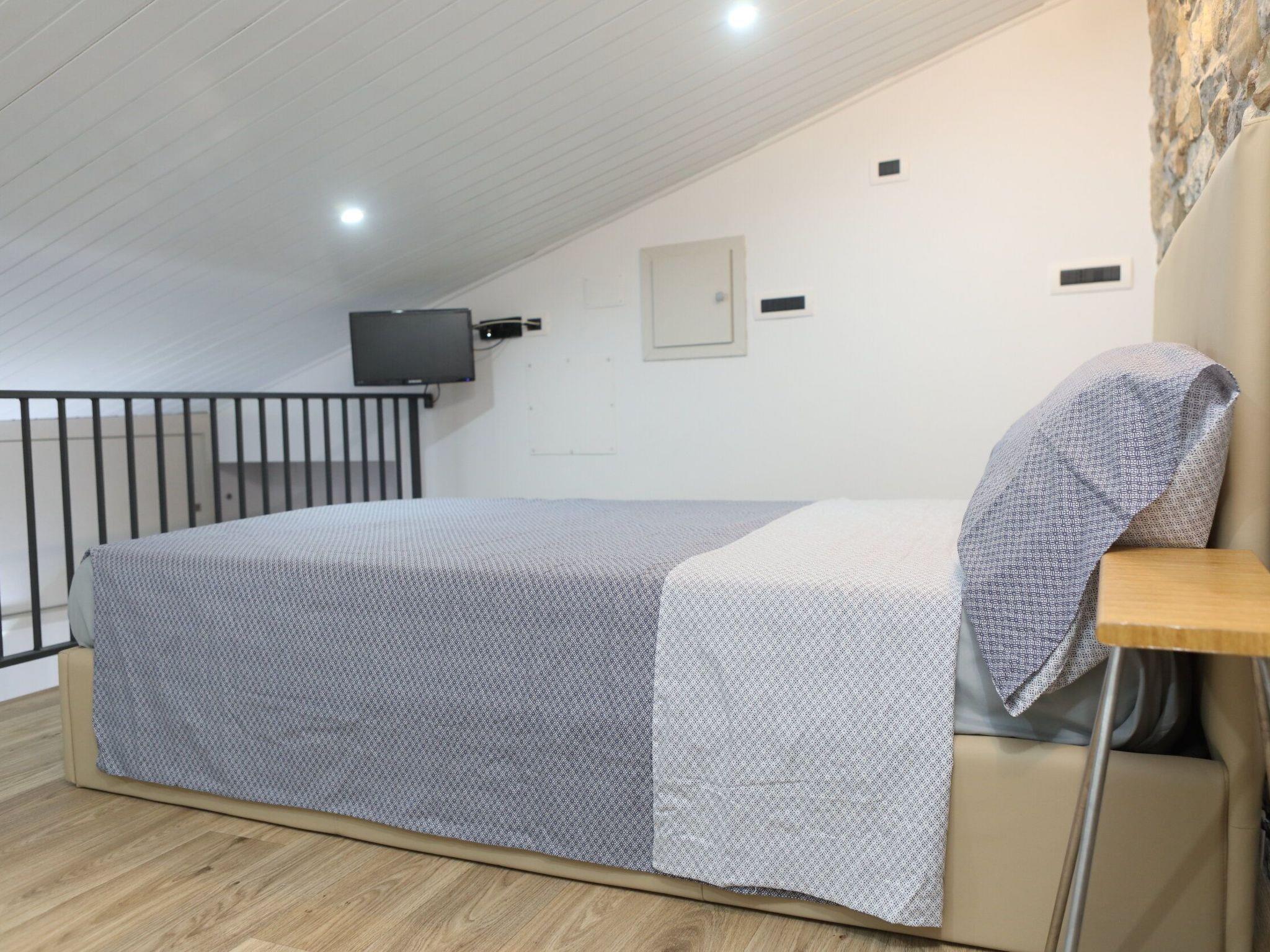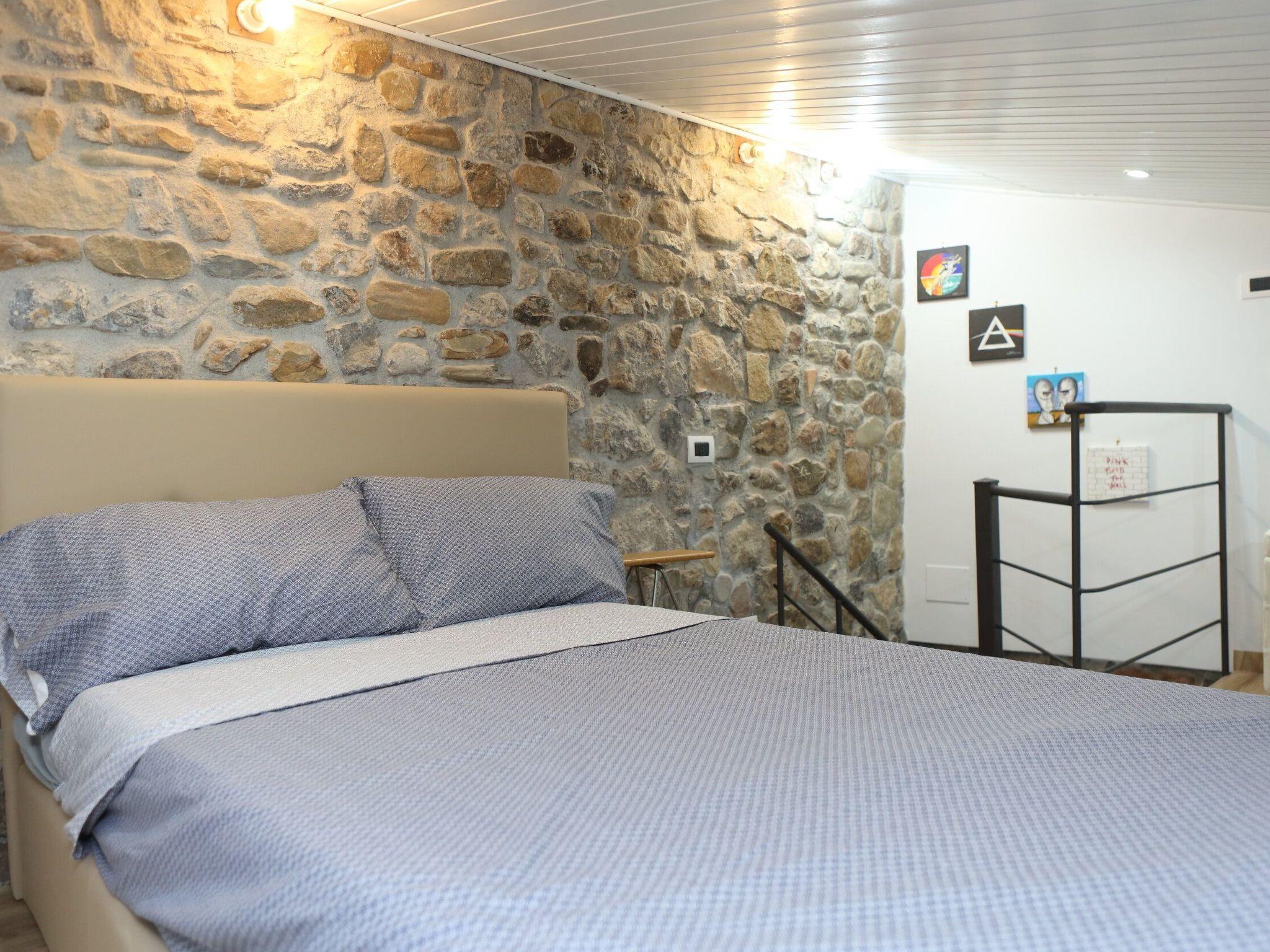 Internally, the flat is cleverly organised to maximise comfort and usability. Equipped with air conditioning to ensure coolness during the hot summer months, it features a living area harmoniously connected to the kitchenette, equipped with everything you need to prepare delicious meals: a gas cooker, electric coffee machine, coffee maker, and electric kettle. The bathroom has a shower, and a washing machine is available for guests' convenience. A cosy double bed sits next to a French bed on the mezzanine, reached via a spiral staircase, offering a restful and intimate solution.