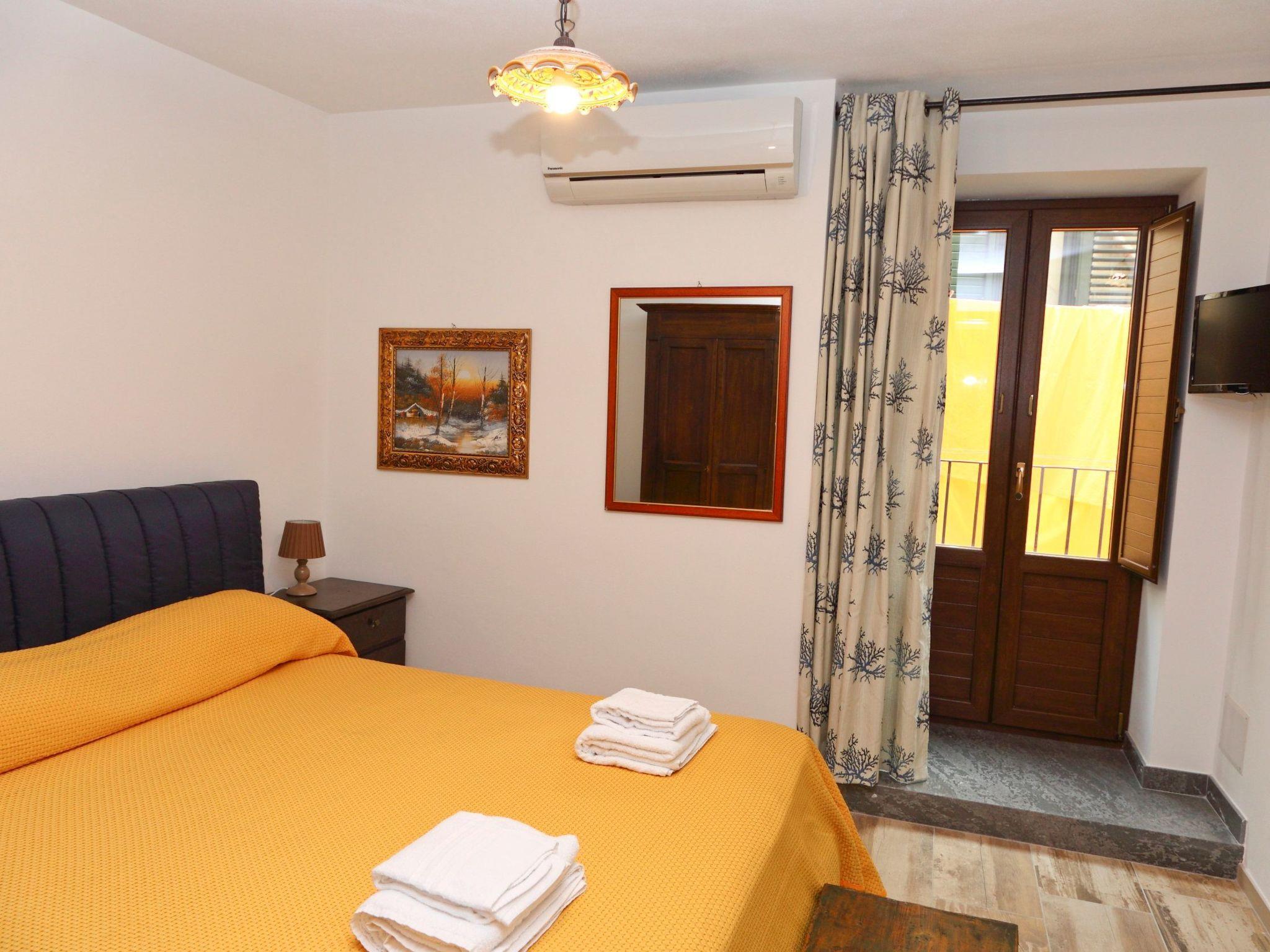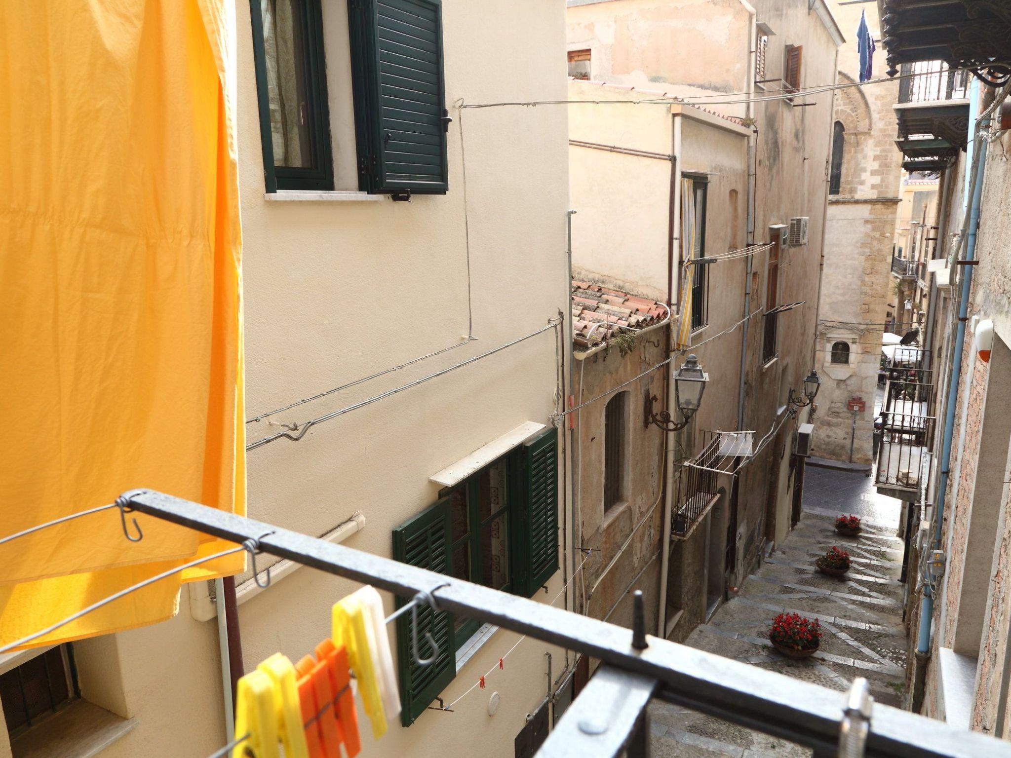 Outside, the upstairs balcony overlooks the bustling street below, offering a glimpse of Cefalu's daily life. This outdoor space is ideal for enjoying a relaxing moment in the afternoon or for starting the day with a cup of coffee while breathing in the fresh morning air.