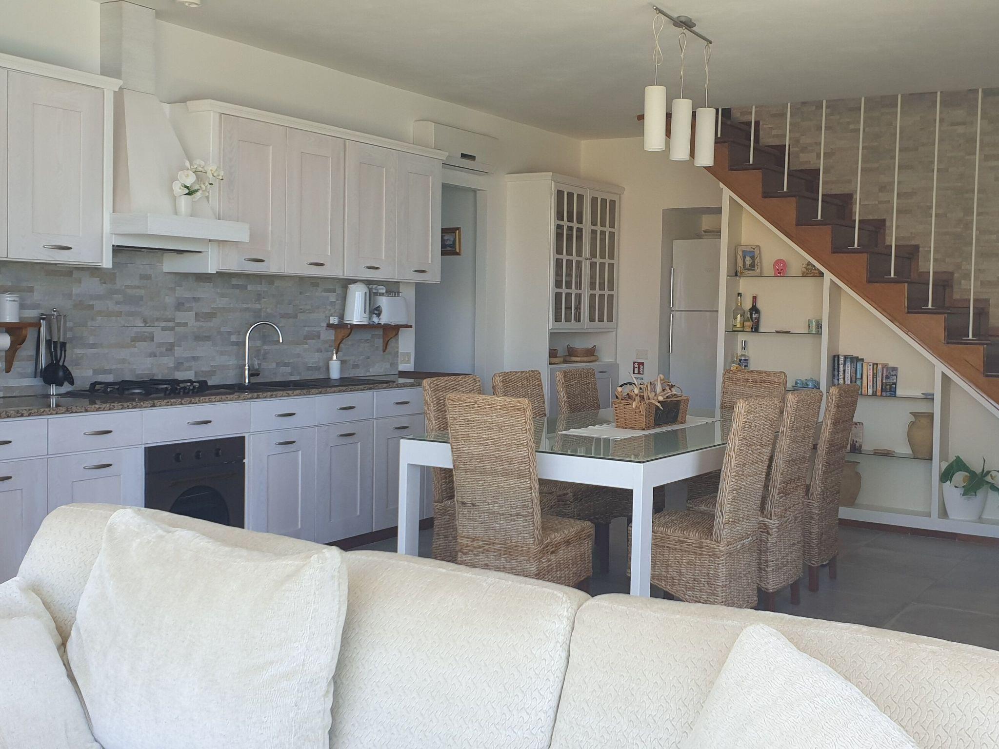 Villa la Vista is an independent villa recently renovated with a contemporary style where simplicity and functionality have been combined together perfectly. The name ( Villa "the View" ) it's inspired by the breathtaking view of which this location is gifted and that gives to all its guests the possibility to enjoy the beautiness of Cefalù from a unique position.Villa la Vista is split among two offset floors with large outdoor spaces all around, a nice solarium next to the wonderful overhang swimming pool, a barbecue area, a play area and a shaded parking space for two cars. The swimming pool is approximately 60 square meters wide and the access can be prevented using a little gate to ensure children's safety. Next to the pool a solarium is located with a shaded area featuring a barbecue and a dining table, where all the guests can have a meal together even during the warmest hours of the day.Inside, on the first floor, the villa is composed by a kitchen, a living area with a big Smart TV and a cozy sofa overlooking a large window with a stunning view of the sea and of Cefalù. Last but not least, two double bedrooms with air conditioning, a bathroom with shower and a washing machine.On the first floor you can find a wide panoramic terrace, three double bedrooms with air conditioning, two bathrooms with shower and an outdoor play area equipped with a basketball basket and table fotball.