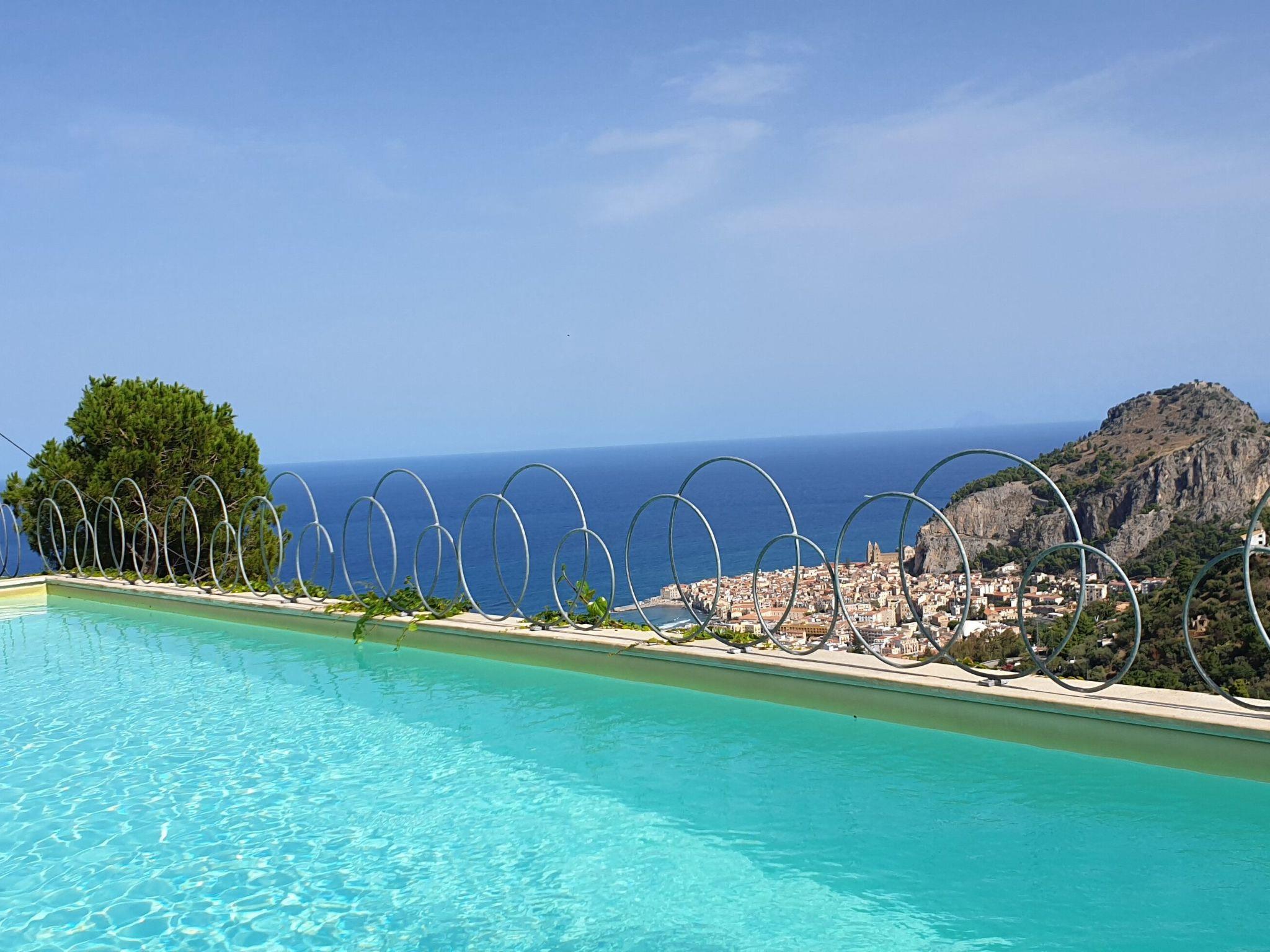 Villa la Vista is an independent villa recently renovated with a contemporary style where simplicity and functionality have been combined together perfectly. The name ( Villa "the View" ) it's inspired by the breathtaking view of which this location is gifted and that gives to all its guests the possibility to enjoy the beautiness of Cefalù from a unique position.Villa la Vista is split among two offset floors with large outdoor spaces all around, a nice solarium next to the wonderful overhang swimming pool, a barbecue area, a play area and a shaded parking space for two cars. The swimming pool is approximately 60 square meters wide and the access can be prevented using a little gate to ensure children's safety. Next to the pool a solarium is located with a shaded area featuring a barbecue and a dining table, where all the guests can have a meal together even during the warmest hours of the day.Inside, on the first floor, the villa is composed by a kitchen, a living area with a big Smart TV and a cozy sofa overlooking a large window with a stunning view of the sea and of Cefalù. Last but not least, two double bedrooms with air conditioning, a bathroom with shower and a washing machine.On the first floor you can find a wide panoramic terrace, three double bedrooms with air conditioning, two bathrooms with shower and an outdoor play area equipped with a basketball and table fotball.