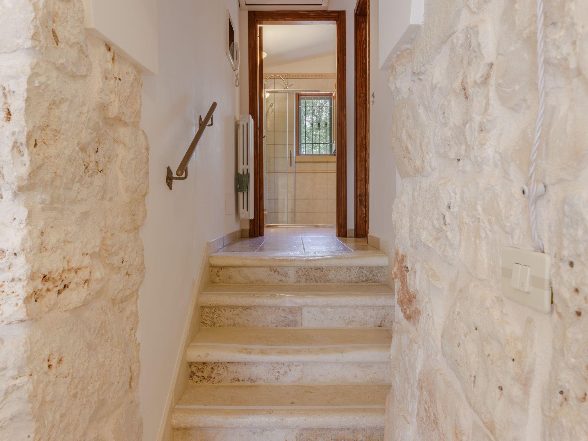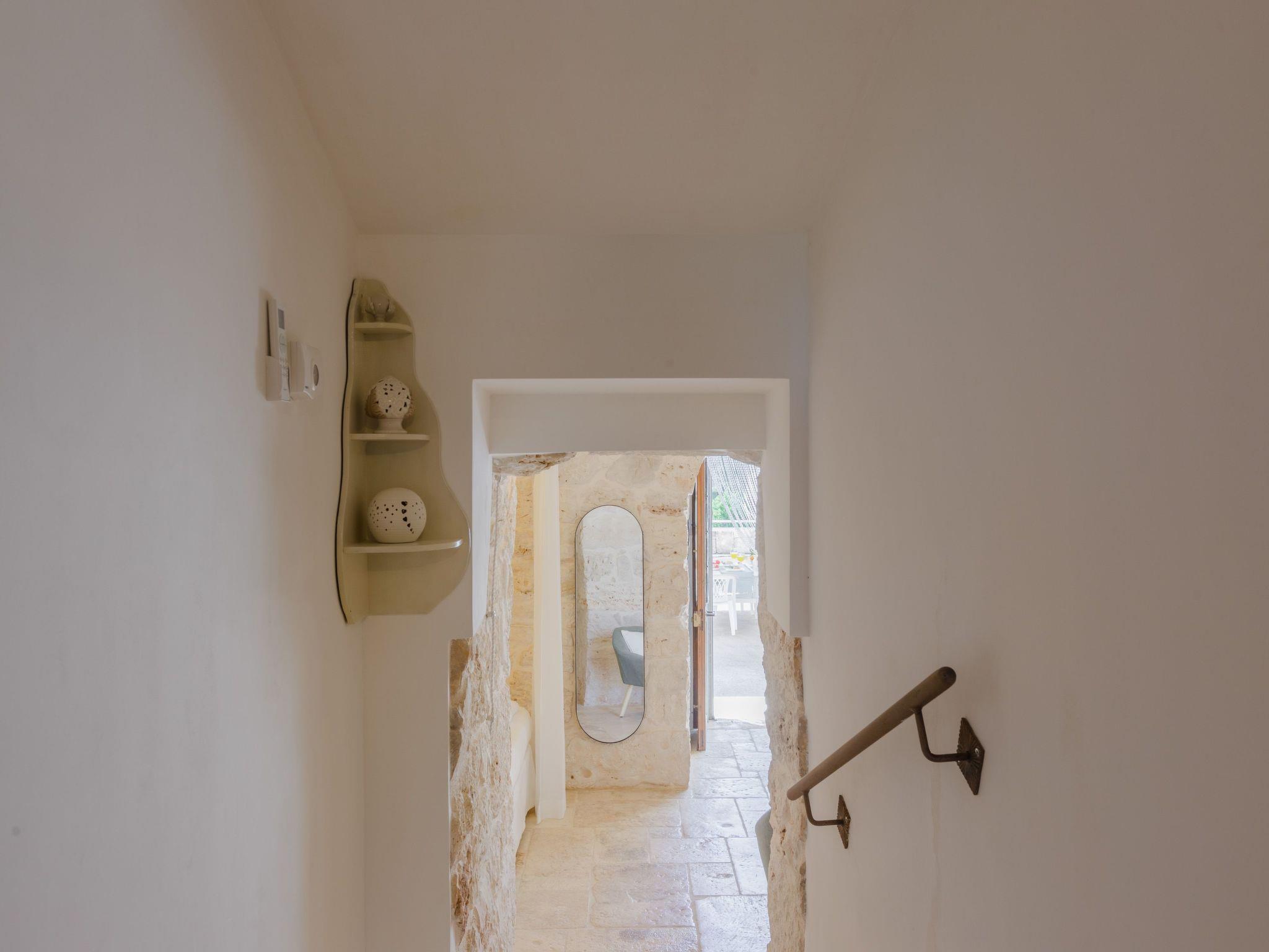 On the mezzanine floor, n.1 double bedroom with n.1 spacious wardrobe, n.1 bathroom with shower box, n.1 air conditioner in the hallway that cools the whole trullo.