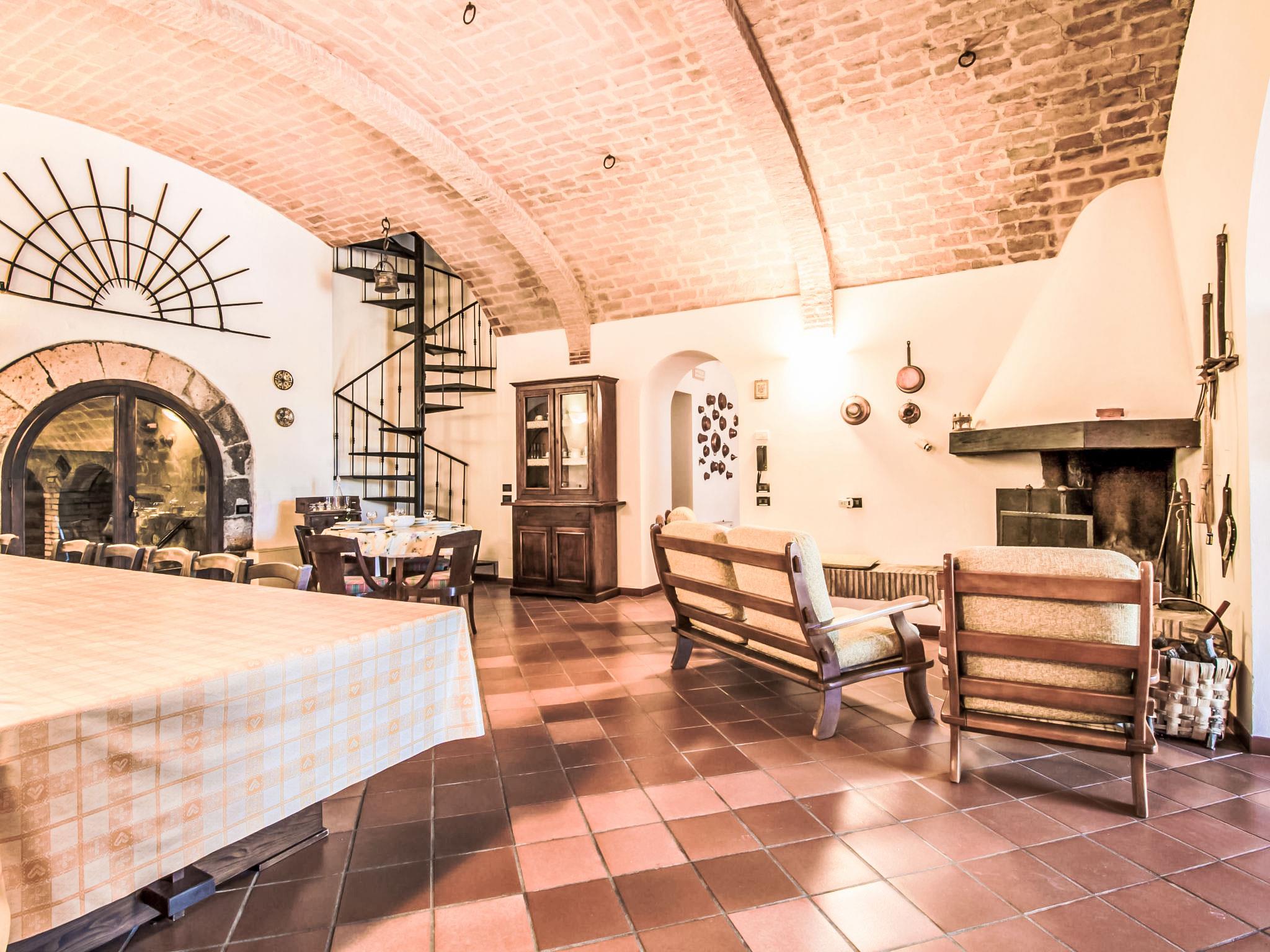 5-room house 160 m2 on 2 levels, on the ground floor. Comfortable and rustic furnishings: lounge with panoramic window. Living/dining room with open-hearth fireplace and satellite TV. Kitchen-/living room (4 hot plates, oven, dishwasher, microwave, freezer). Shower/bidet/WC. Upper floor: (spiral staircase), 1 double bedroom with air conditioning. (ladder), 1 room with 2 beds and air conditioning. Exit to the garden. (ladder), 1 double bedroom with air conditioning. Exit to the garden. Living room with panoramic window with heating stove. Exit to the garden. Shower/bidet/WC. Heating available only from 01.11. to 15.04, no heating option. Patio. Terrace furniture, barbecue. Facilities: washing machine. Maximum 1 small pet/ dog allowed. The top floor can also be reached from outside. IT056044C2532UEMI5
