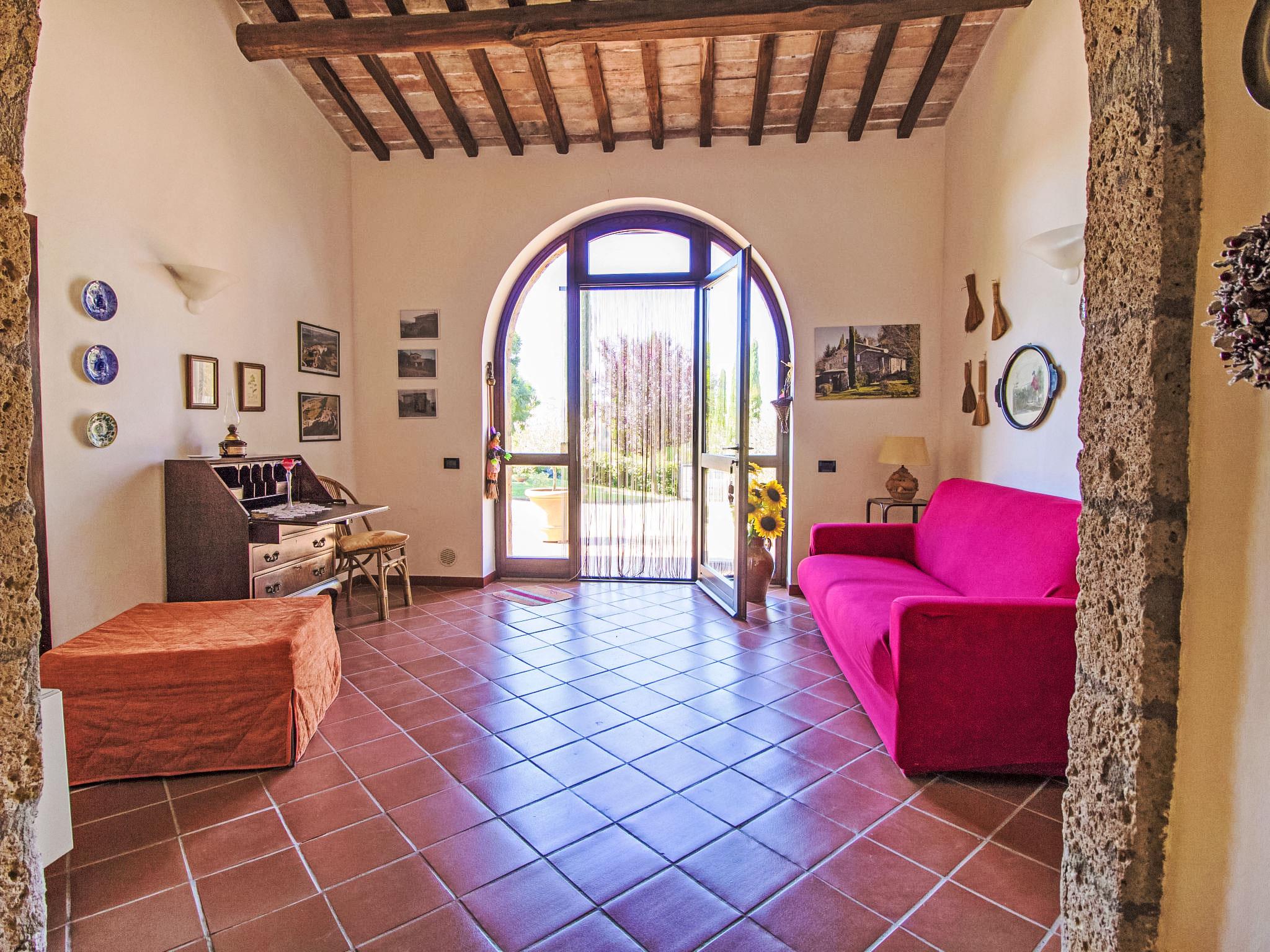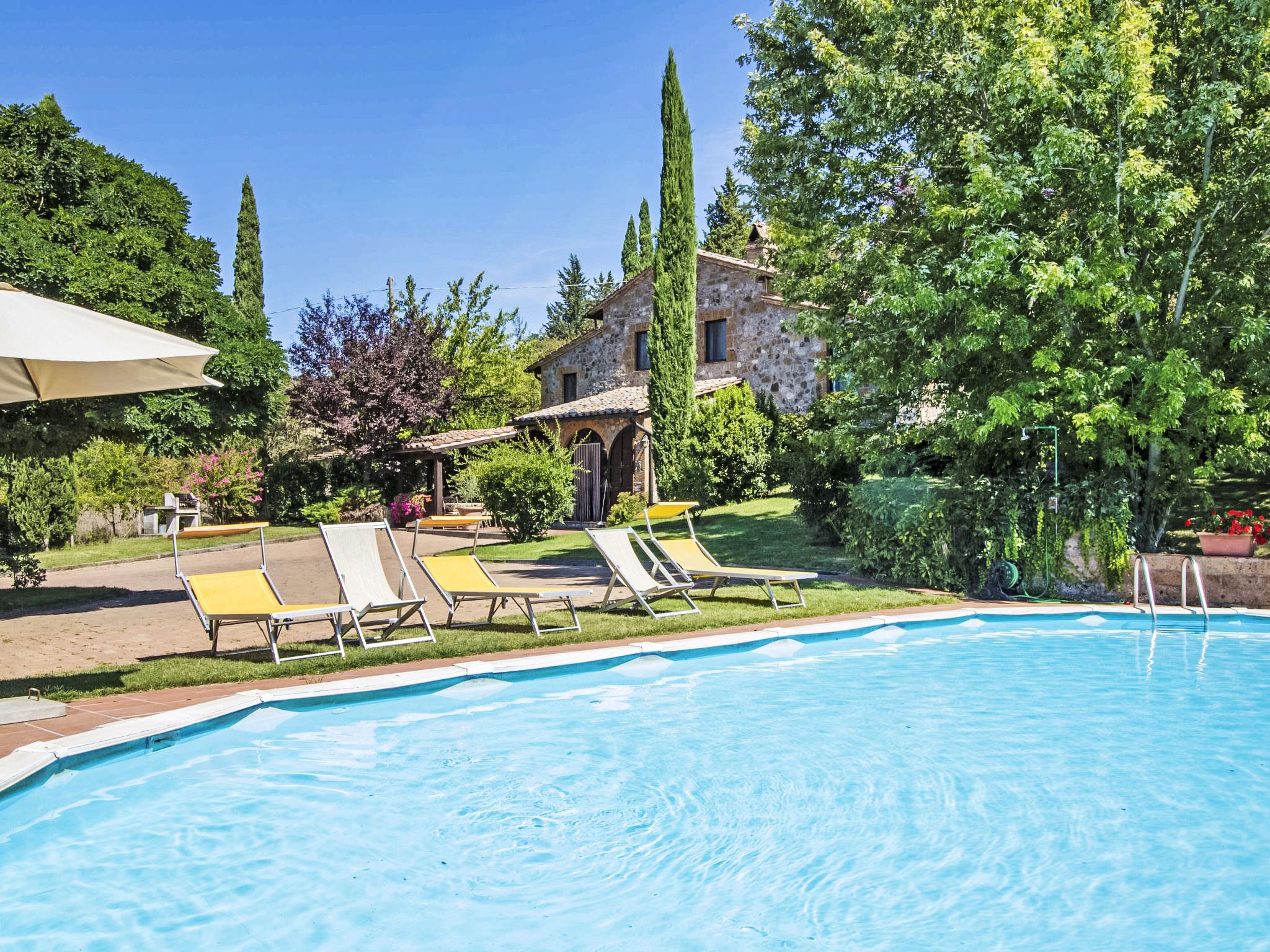 The small farm "Agnese" is located on the border between the borough of Siena and Viterbo, surrounded by gentle hills that still contain the secrets of the Etruscan people, near the spas of Chianciano, Saturnia and Bagni S. Filippo. Quiet position yet close to the Via Cassia, from which you can reach all the major art cities, Pienza 30 km, Siena 80 km, Florence and Rome about 130 km, Orvieto 20 km, an Etruscan city Sovana - Sorano - Pitigliano 25km, around many picturesque villages, Acquapendente (8 km), where you can find local products and healthy Tuscan cuisine, in addition to the old thermal baths of San Casciano dei Bagni (12 km) and Lake Bolsena is 15 km away. Please note: the maintenance of the garden and swimming pool during the week. Villa "Podere Agnese". Private: garden 1'500 m2 (fenced), swimming pool (6 x 12 m, seasonal availability: 30.Jun. - 15.Sep.). Barbecue. In the house: central heating system, air conditioning, heating to be paid on the spot (15.Oct. - 15.Apr.), heating available only from 15.Oct. - 15.Apr.. Parking. Shop 5 km, bus stop 100 m.