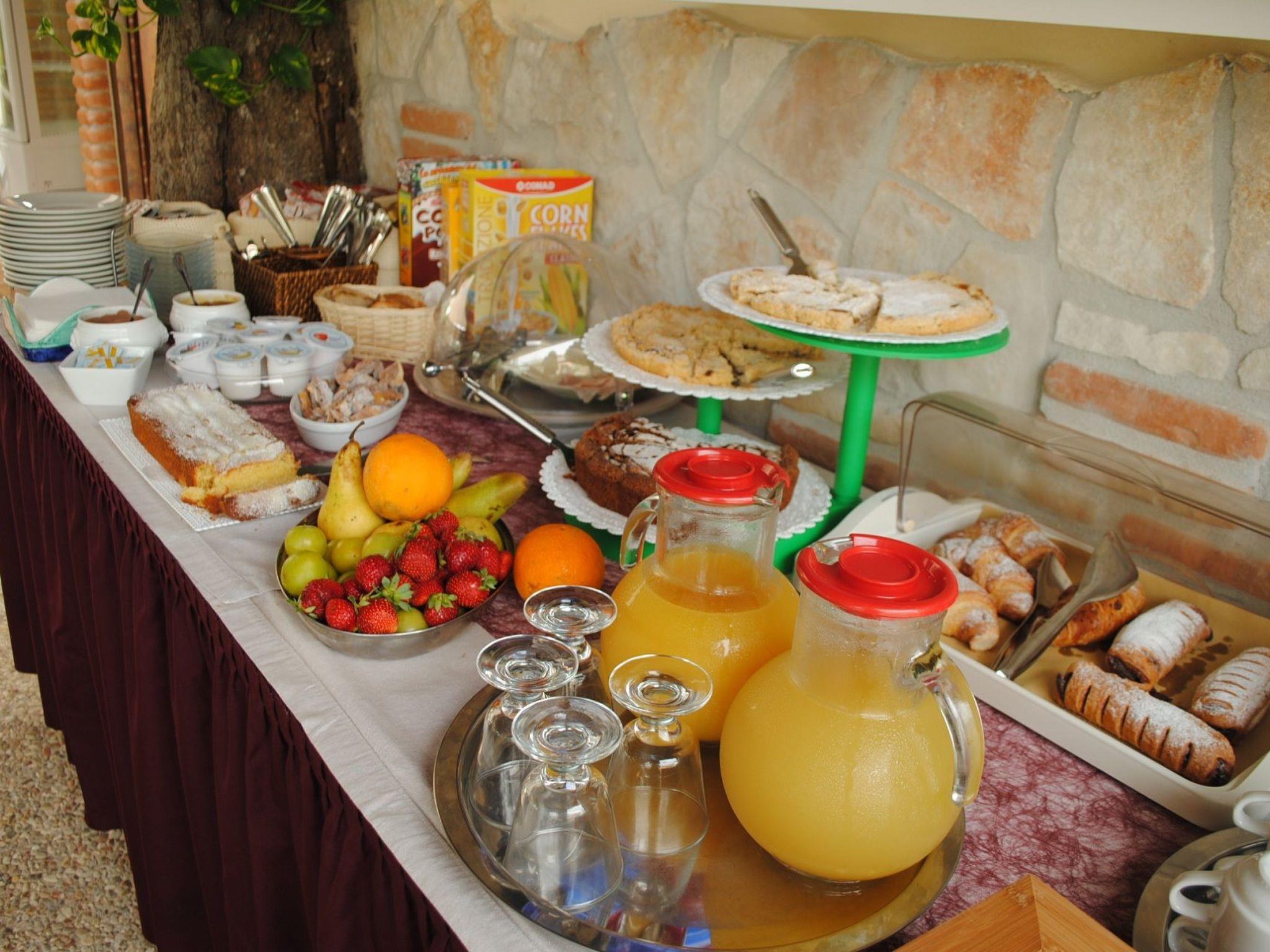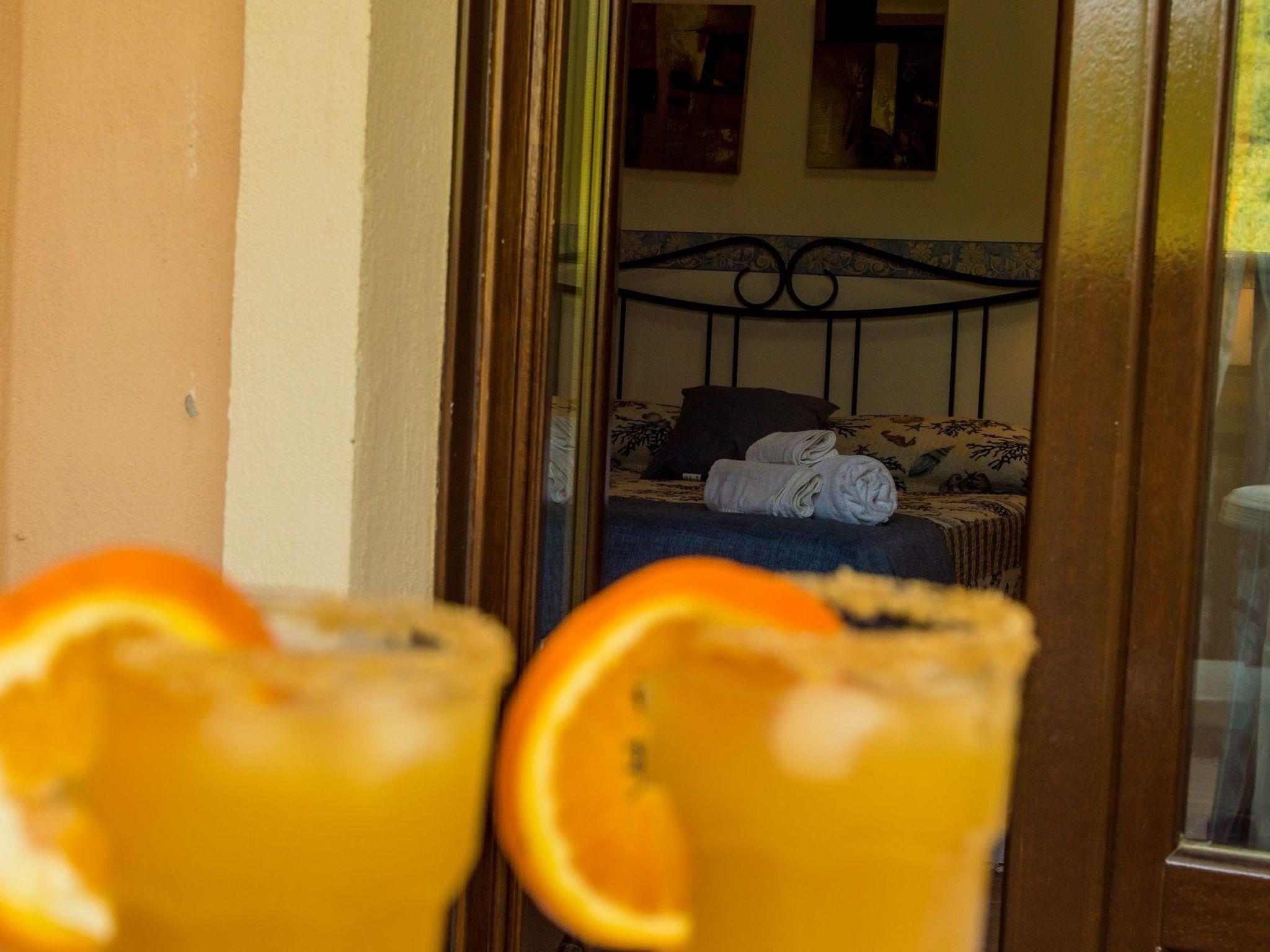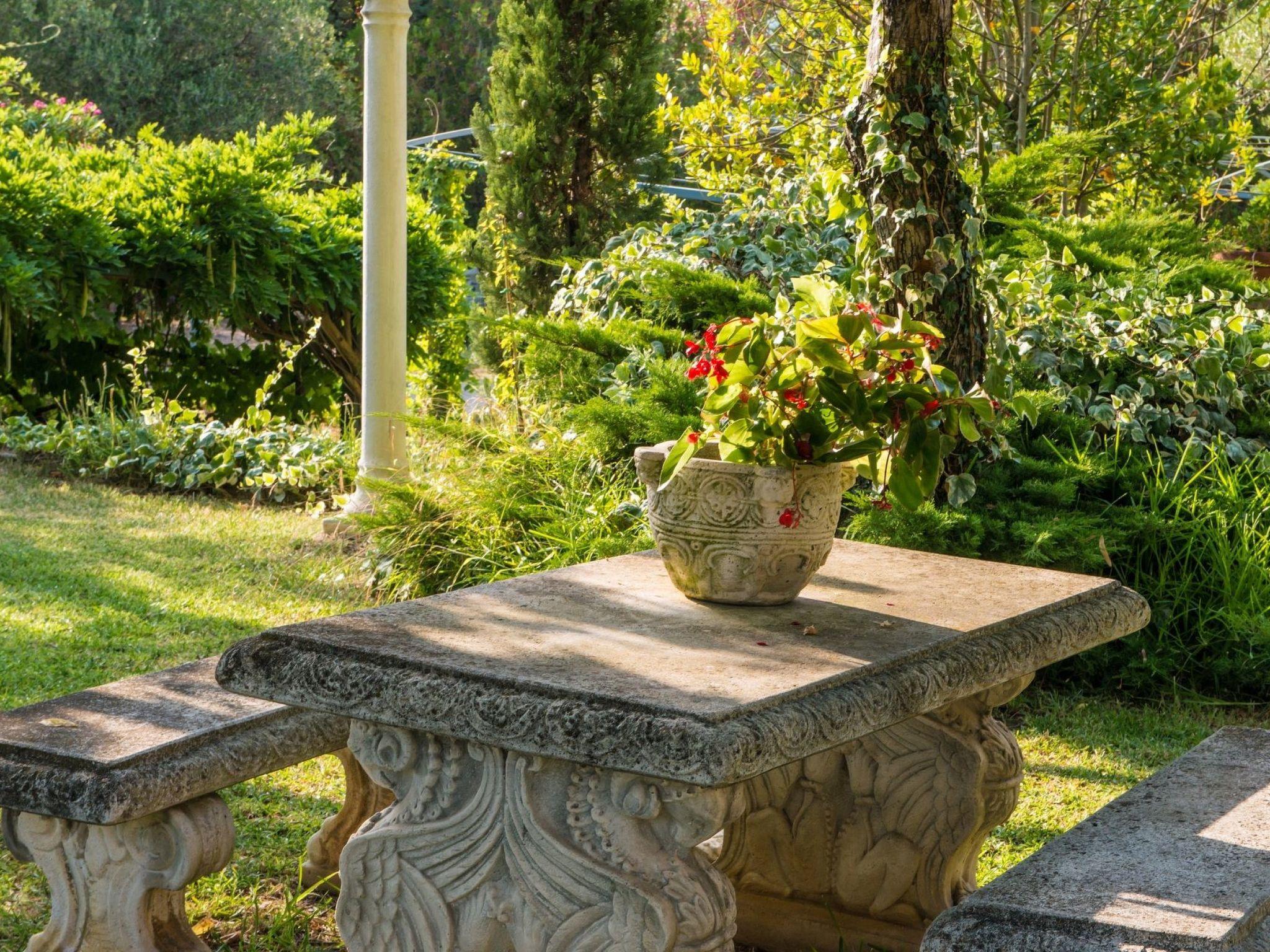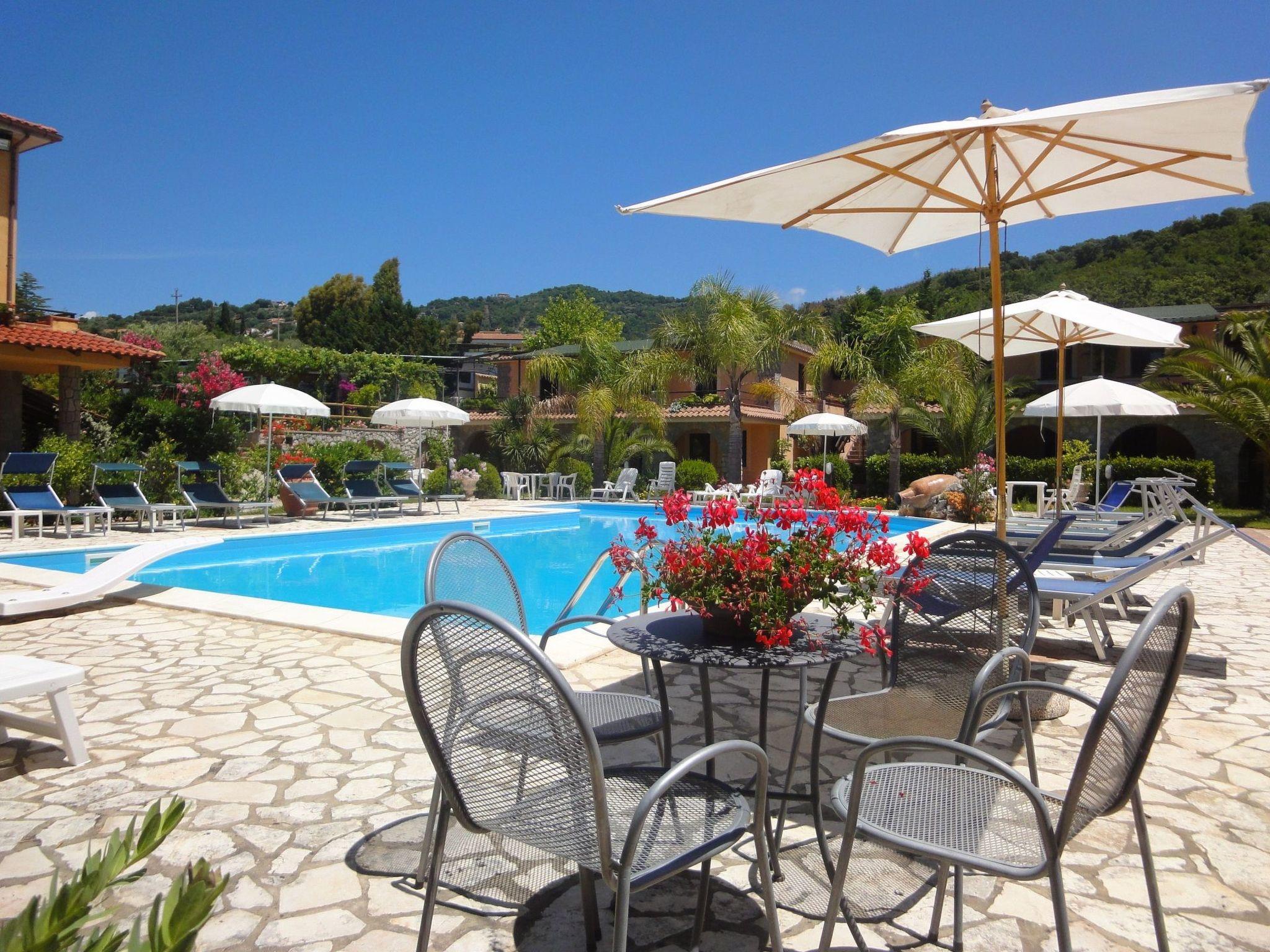 Outside, you are invited to fully experience the communal spaces. The swimming pool, which is shared with other guests, promises refreshing moments of fun and relaxation under the Kampanien sun, while the surrounding garden offers peaceful spots, ideal for soaking up a good book or simply enjoying the tranquillity of nature.