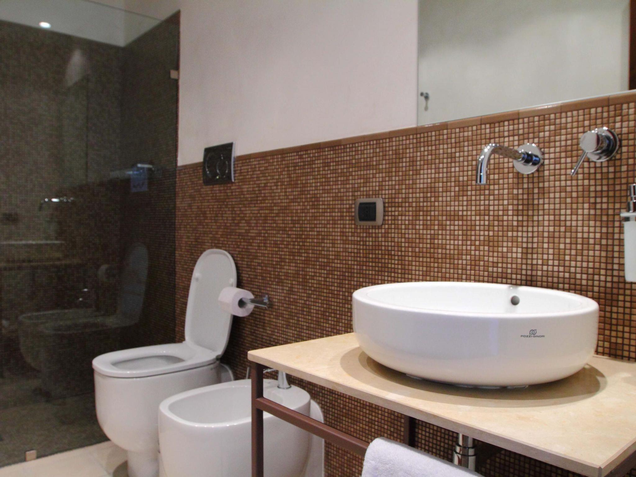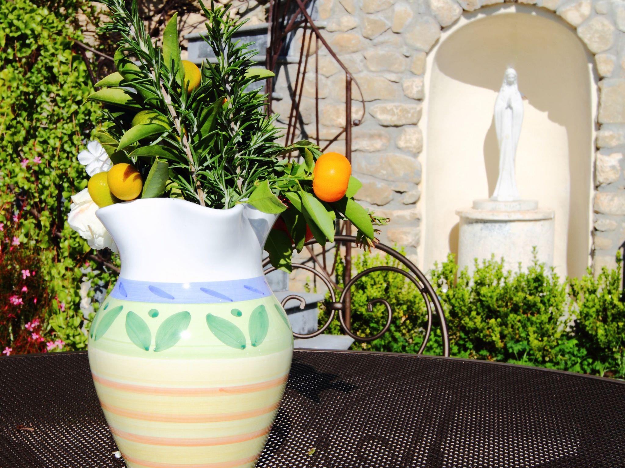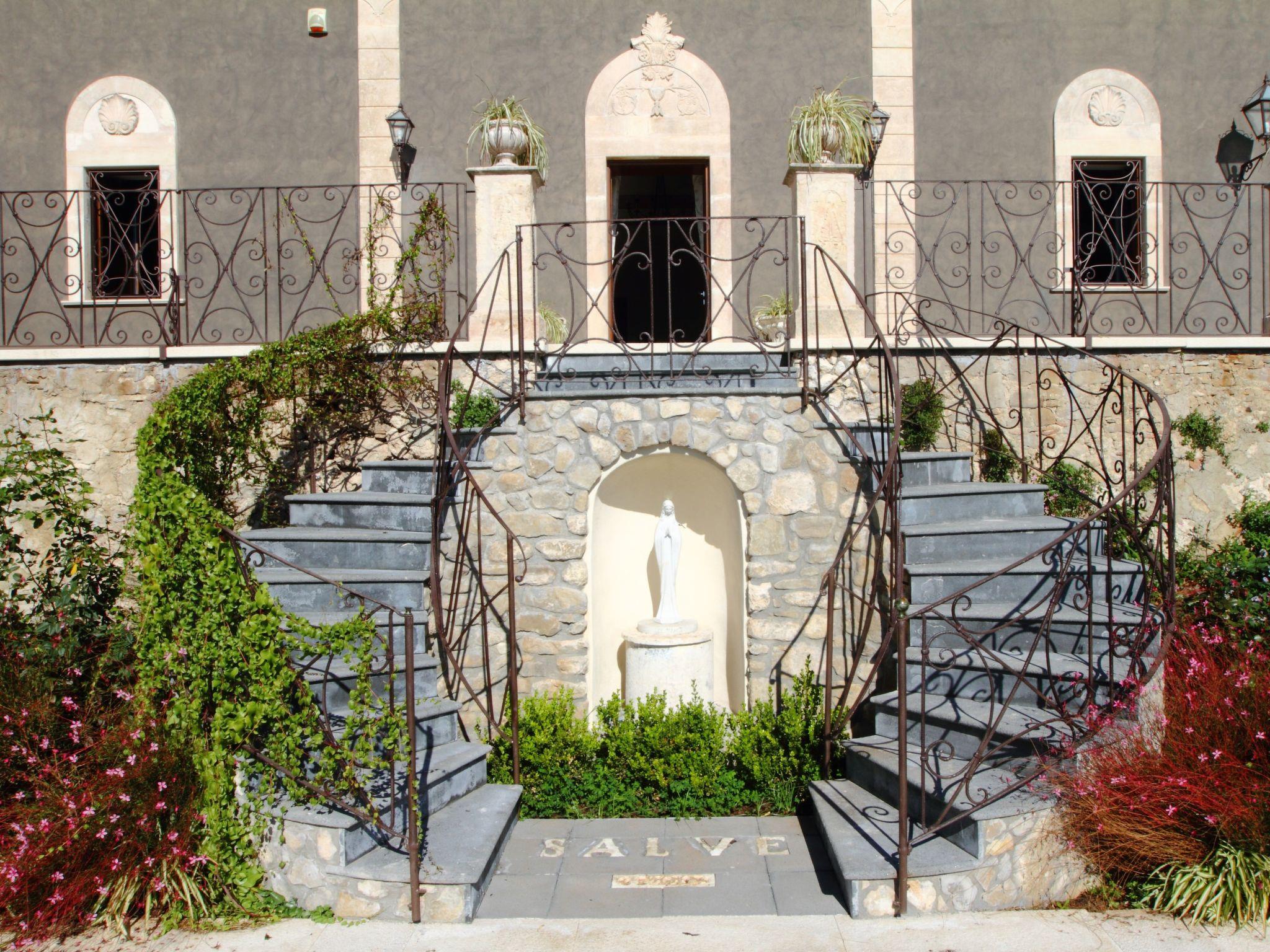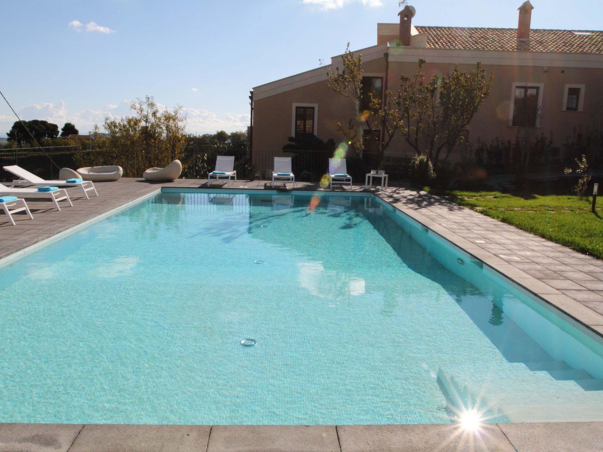 At the back of the house, surrounded by a well-kept garden with typical Mediterranean plants, you will find a lovely swimming pool decorated with mosaics and a lava stone paved area with sun loungers and an outdoor shower. The view is simply marvellous and stretches from Mount Etna to the beautiful town of Centuripe, on the slopes of a mountain, to the green valleys and hills of the surrounding area.