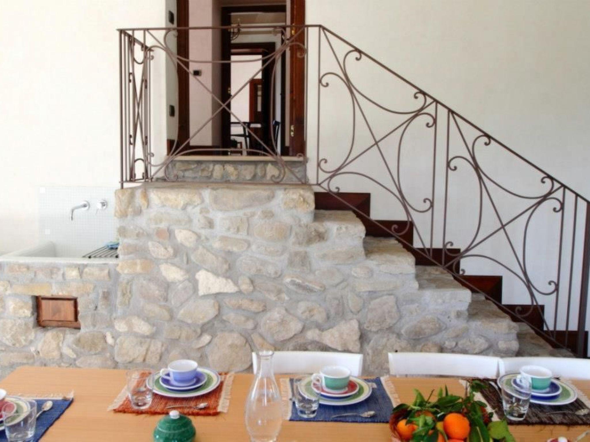 This exclusive holiday home is a former farmhouse located in the municipality of Centuripe. It is located in Contrada Minnè, a quiet district. The property is located on a hill with an exceptional panoramic view, immersed in the peaceful countryside of the province of Enna, with the imposing Mount Etna in the background. The typical Sicilian country house has been recently renovated, combining an authentic, rural atmosphere with elegant, refined furnishings. The beautiful façade recalls the splendour of the noble families that once owned the property. The recent renovation of the villa was carried out with the utmost care and the house was equipped with modern, high-quality furniture and furnishings. This creates the exclusive, refined and historical character of the property, ideal for travellers seeking peace and tranquillity without sacrificing comfort. Inside, the previous room layout has been carefully transformed into comfortable guest areas and rooms. The spacious kitchen has been moved to the former stables and is equipped with modern and exclusive furniture and appliances. The elegant dining room, located next to the kitchen, awaits you with beautifully decorated ceilings and antique furniture. There is also a cosy and bright living room with an antique fireplace and a comfortable reading room. The house can accommodate up to twelve people. There are five double rooms with 160 x 200 cm beds and two sofa beds in the living area. They are all tastefully furnished and equipped with air conditioning/heating. Four bathrooms with showers and a bathroom suitable for disabled persons complete the comfortable holiday home. Air conditioning is available in all rooms, the kitchen and the living room. Free Internet access is available.