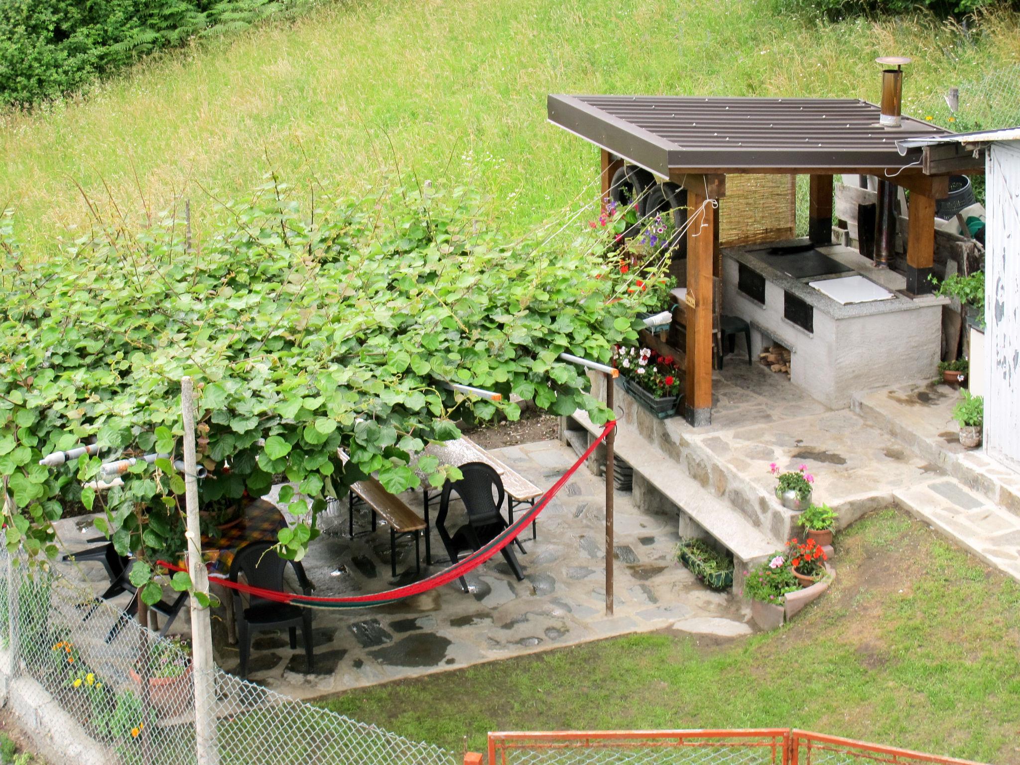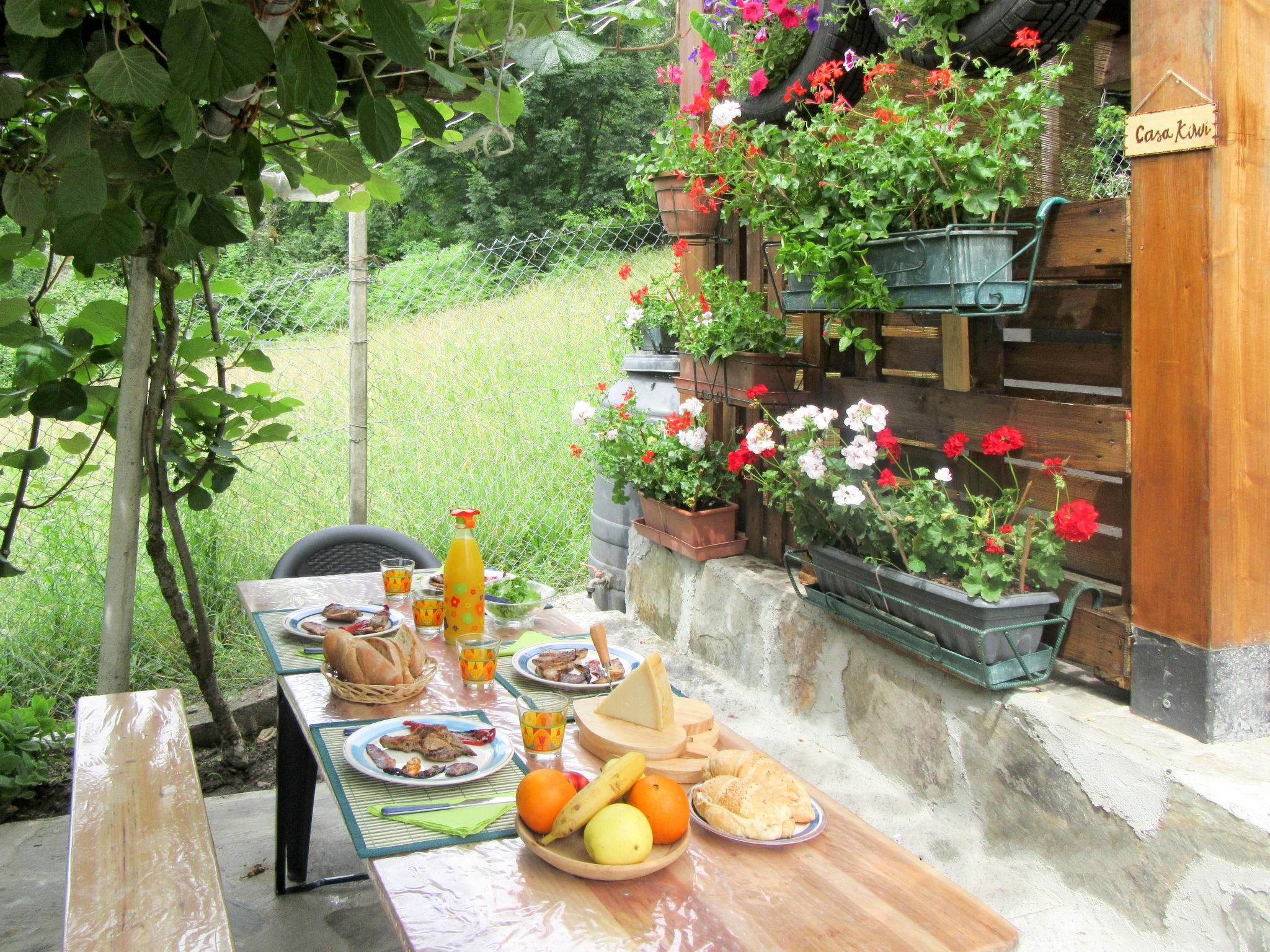 "Casa Kiwi", 2-room house 55 m2 on 2 levels on 1st floor. Comfortable and cosy furnishings: open living/sleeping room with 1 double bed, dining table, satellite TV, radio and heating stove. Exit to the balcony. Open kitchen (oven, dishwasher, toaster, kettle, microwave, freezer, electric coffee machine). Upper floor: 1 room with 1 x 2 bunk beds, 1 double bed (160 cm), air conditioning. Shower/bidet/WC. Gas heating. 4 small balconies. Balcony furniture, barbecue, deck chairs (4). Beautiful distant view of the mountains, the valley and the river. Facilities: washing machine, iron, children's high chair, baby cot for up to 2 year olds, hair dryer. Please note: non-smokers only. Maximum 2 pets/ dogs allowed. Private entrance. IT014017C2LI5QENC4