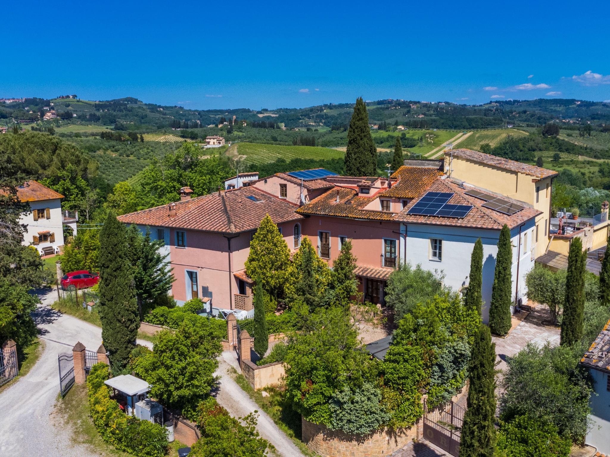 Agricultural estate "Cameli", 3 storeys, surrounded by fields and vineyards. 6 apartments in the residence. 5 km from the centre of Certaldo, 35 km from the centre of Firenze, 13 km from the centre of S. Gimignano, in a sunny position on a slope. For shared use: property 150'000 m2 with trees, orchard, pond, swimming pool (14 x 8 m, depth 110 - 250 cm, seasonal availability: 11.Apr. - 31.Oct.). Pergola, garden furniture, barbecue. In the house: restaurant, breakfast room. Breakfast possible (extra). 600 m long bumpy motor access. Parking on the premises. Supermarket 5 km, bus stop 600 m. Please note: baby equipment (included). Suitable for events. Local sale of farm products. The owner lives on the same property. All houses/apartments are individually designed/furnished. The restaurant is open to the public, events held here occasionally.