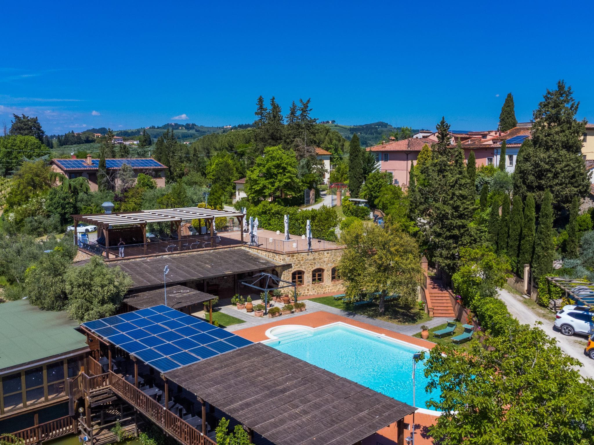 Agricultural estate "Cameli", 3 storeys, surrounded by fields and vineyards. 6 apartments in the residence. 5 km from the centre of Certaldo, 35 km from the centre of Firenze, 13 km from the centre of S. Gimignano, in a sunny position on a slope. For shared use: property 150'000 m2 with trees, orchard, pond, swimming pool (14 x 8 m, depth 110 - 250 cm, seasonal availability: 11.Apr. - 31.Oct.). Pergola, garden furniture, barbecue. In the house: restaurant, breakfast room. Breakfast possible (extra). 600 m long bumpy motor access. Parking on the premises. Supermarket 5 km, bus stop 600 m. Please note: baby equipment (included). Suitable for events. Local sale of farm products. The owner lives on the same property. All houses/apartments are individually designed/furnished. The restaurant is open to the public, events held here occasionally.