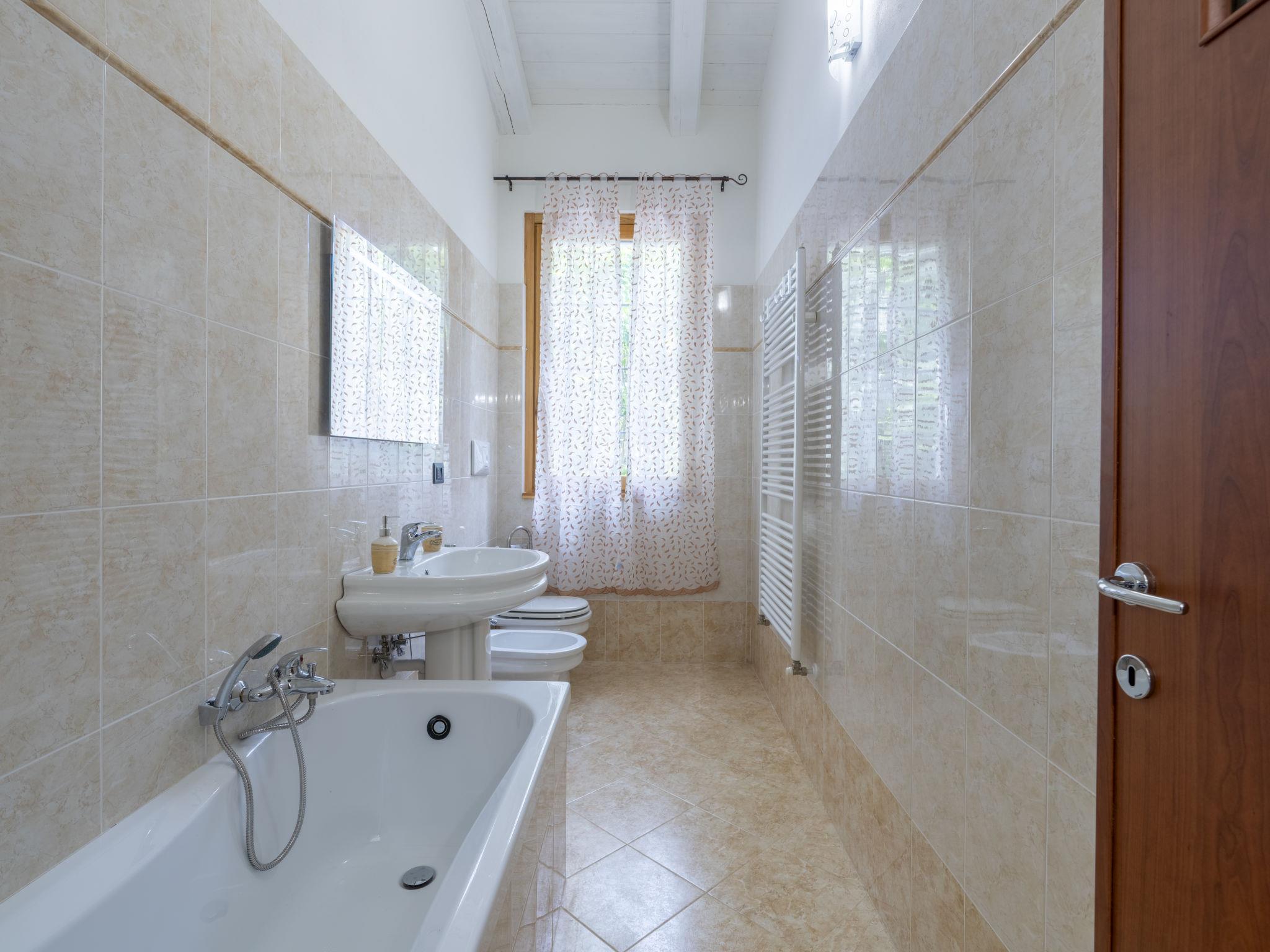 "Poderi Alugi", 4-room villa 120 m2. Bright, renovated in 2023, comfortable and modern furnishings: living/dining room with 1 double sofabed (160 cm, length 200 cm). Exit to the garden. 3 double bedrooms. Kitchen-/living room (oven, dishwasher, 4 gas rings, toaster, kettle). Exit to the garden. Bath/bidet/WC, shower/bidet/WC. Gas heating. Heating available only from 01.11. to 08.04. Beautiful view of the resort. Facilities: washing machine, baby cot for up to 2 year olds. Internet (WiFi, free). Please note: non-smoking house. Maximum 1 pet/ dog allowed. IT008017B4C9Q7M44P