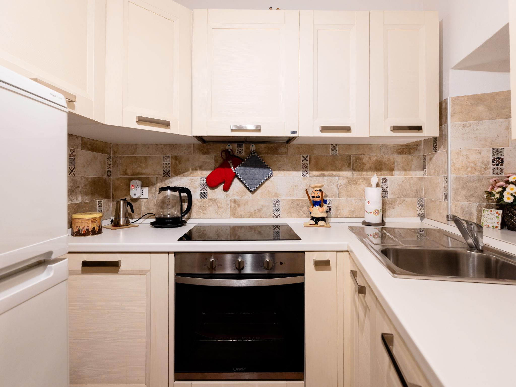 "S.Caterina", 2-room house 45 m2, on the ground floor. Tasteful and cosy furnishings: living/dining room with 1 double sofabed (140 cm, length 200 cm). 1 double bedroom. Kitchenette (oven, dishwasher, 4 ceramic glass hob hotplates, toaster, kettle, microwave, electric coffee machine). Shower/bidet/WC. Forced-air heating. Heating available only from 01.11. to 15.04. View of the resort. Facilities: washing machine, baby cot for up to 2 year olds, hair dryer. Internet (WiFi, free). Please note: non-smokers only. Private entrance. IT008017C2OWO86EOJ