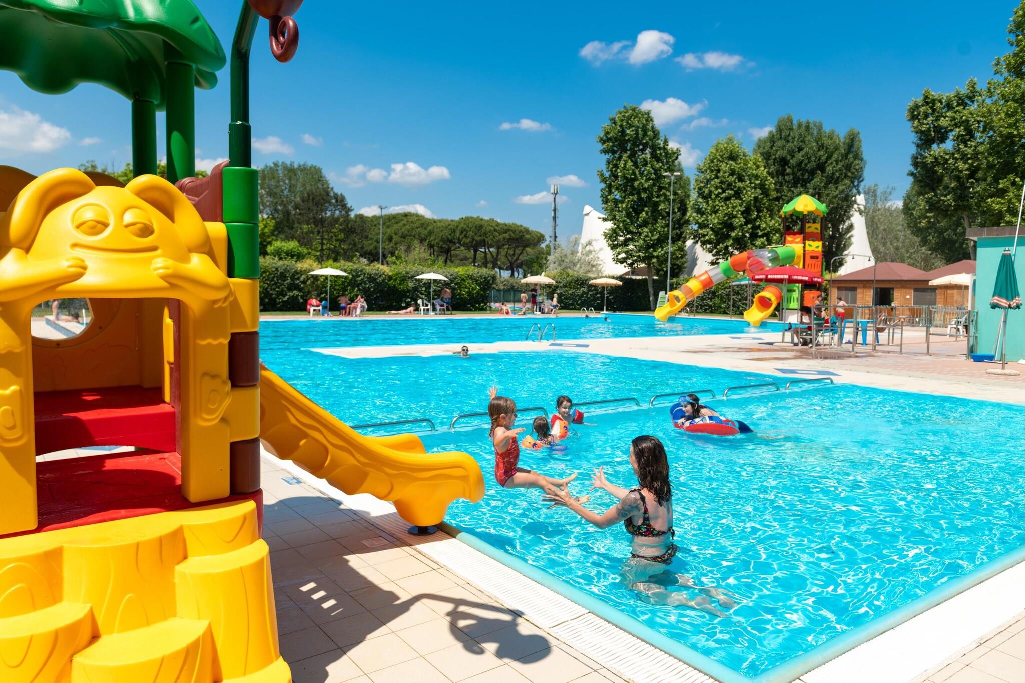 Solrigt familieferiested i naturen – Kæledyrsvenlig flugt nær stranden Beliggende i en frodig kystpark i Cesenatico tilbyder dette charmerende, fritliggende mobilhome den perfekte blanding af komfort, afslapning og kæledyrsvenligt eventyr. Med to hyggelige soveværelser, et moderne køkken, satellit-tv og en rummelig veranda til afslapning udendørs er dette hjem ideelt for familier eller par, der ønsker at slappe af. En privat parkeringsplads og havemøbler bidrager til din bekvemmelighed, og ja - din firbenede ven (op til 30 kg) er også velkommen, med forudgående varsel! Et paradis for familier og pelsede venner Denne livlige feriepark er et stykke paradis for både mennesker og kæledyr. Lad din hund nyde gåture under middelhavsfyrretræer eller tag til de nærliggende kæledyrsvenlige strande for at lege ved havet. Parken har tre glitrende pools, et spabad og en stor solterrasse. Børnene vil elske legepladsen, mens voksne kan deltage i dagtimerne, kreative workshops, temaaftener eller afslappende afslapning ved poolen. Parken er også vært for pizzafester og aftenshows - hvilket sikrer, at alle bliver underholdt. Udforsk, spis og nyd regionen Snup en bid mad fra stedets pizzeria, eller køb lokale råvarer i supermarkedet, som endda tilbyder onlinebestilling. Vil du udforske? Du er perfekt placeret til at besøge Venedigs kanaler, de historiske byer Ravenna og Ferrara, eller endda tage en tur ind i Republikken San Marino. Gåture gennem Comacchio eller middage med fisk og skaldyr ved solnedgang i Cesenatico skaber uforglemmelige minder med dit kæledyr ved din side. Dette er tilflugtsstedet, hvor natur, komfort og forbindelse mødes. Swimmingpoolen er åben fra 4. april til 27. september 2026. Derudover er poolen opvarmet i månederne april og maj, og igen fra midten af september og fremefter.