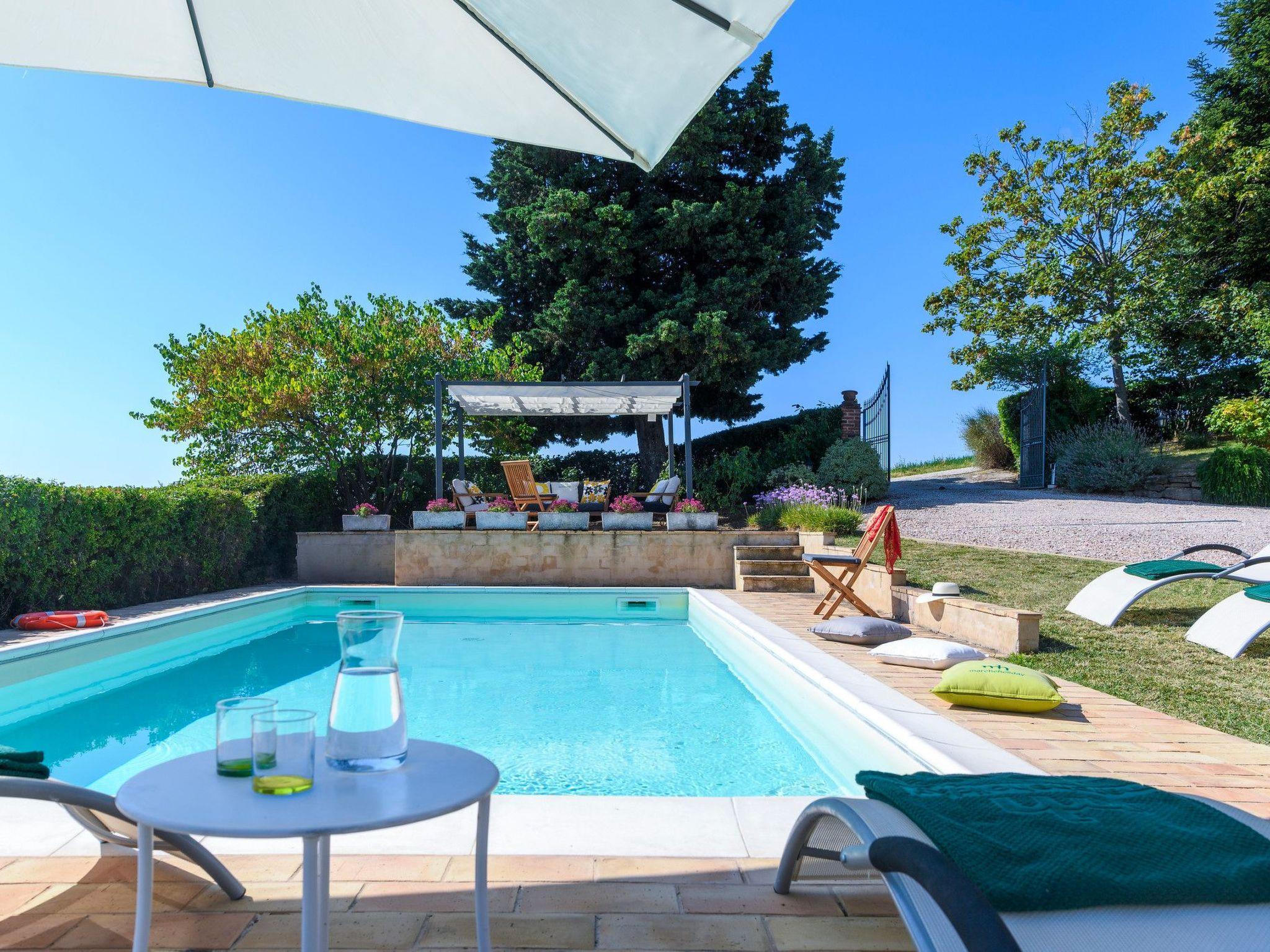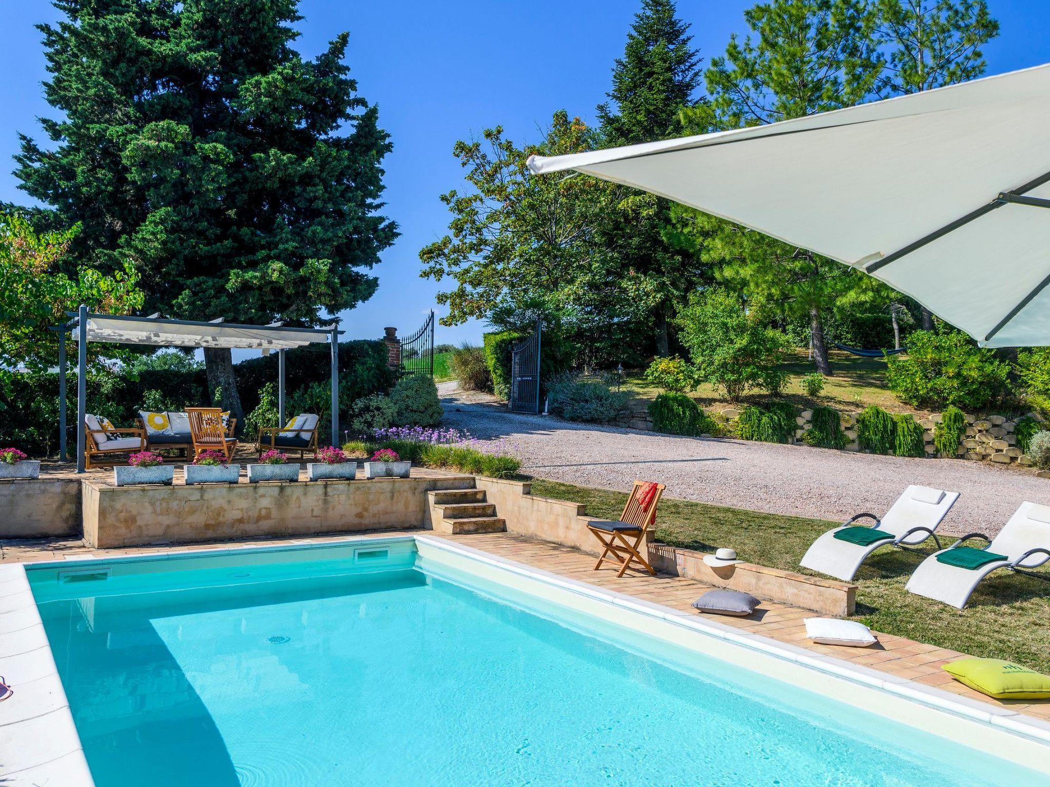 From the porch and swimming pool of Casa Felicità you can enjoy the beautiful view of the typical hills of the Marche countryside. The recently renovated house is just a few minutes from the small center of Ripe di San Ginesio of medieval origin, perched on the hill. Air conditioning is available in all rooms.