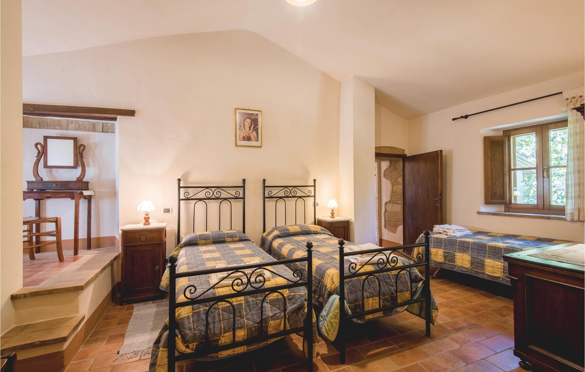 Karakteristiske lejligheder med komfortabel indretning i et typisk toskansk hus, som er blevet fuldstændigt renoveret og inddelt i skønne ferieboliger. Huset er roligt beliggende i de grønne bakker i det sydlige Toskana, 7 km fra Cetona. Med fire samlede lejligheder, tre med direkte forbindelse, er der god plads i huset. I renoveringen er der lagt særlig vægt på at bevare den originale struktur. Skøn vid udsigt over dalen og det omkringliggende landskab. Lejlighederne er fælles om et stort grønt område, pool og legeområde til børn. Indenfor er der en rummelig stue, hvor ejeren mod forespørgsel serverer en lækker aftensmad mod betaling på stedet, med vægt på hjemmelavede og regionale ingredienser. Oliesmagming og guidede ture til oliemøllen er gratis. Tilkørsel langs en 800 m lang, ikke-asfalteret vej, der ikke er egnet til lave og/eller sportslige biler. Barneseng mod forespørgsel. Udflugtsmål: 7 km til Cetona (tennis) og Sarteano (butikker), 9 km til kurbadene i San Casciano Bagni, 15 km til Chianciano Terme og Chiusi, 24 km til Montepulciano, 30 km til Lago Trasimeno.