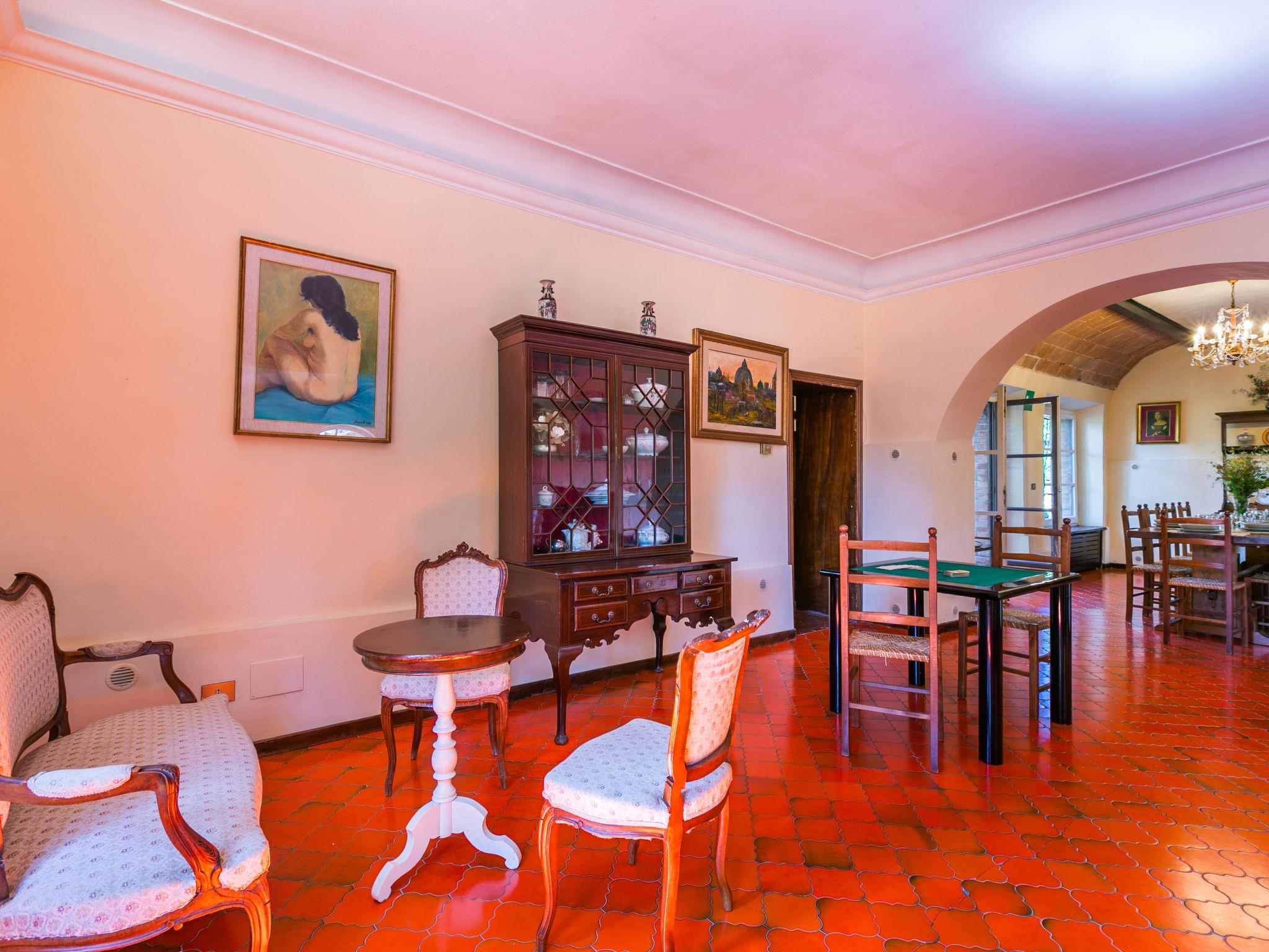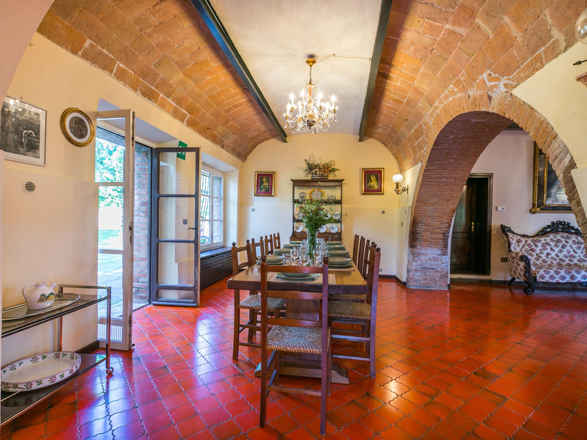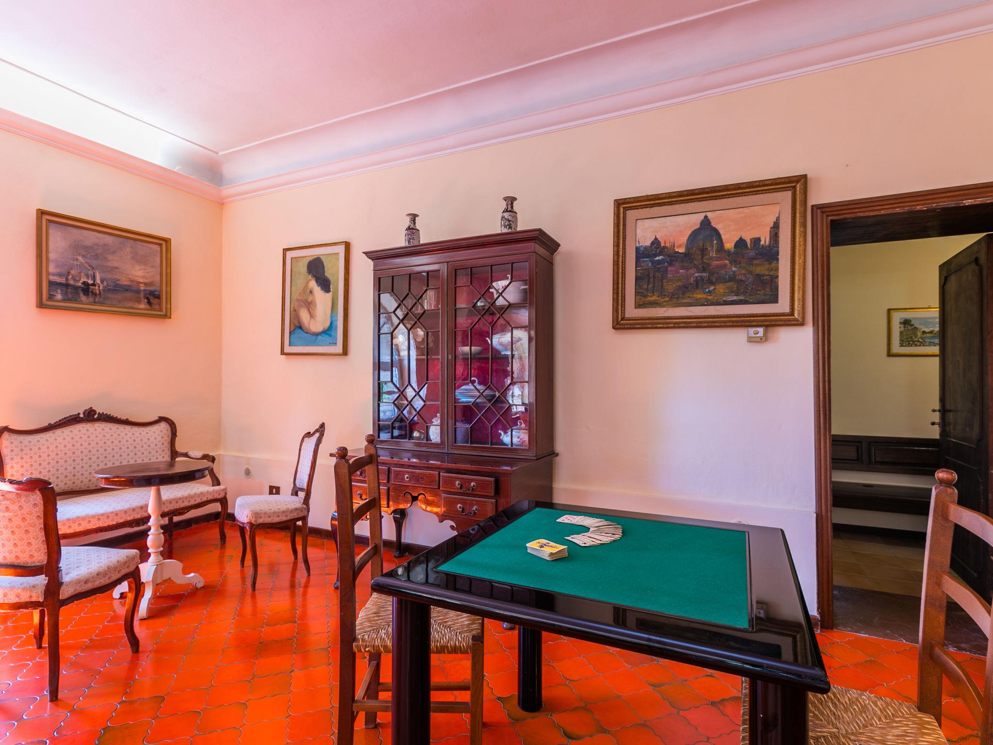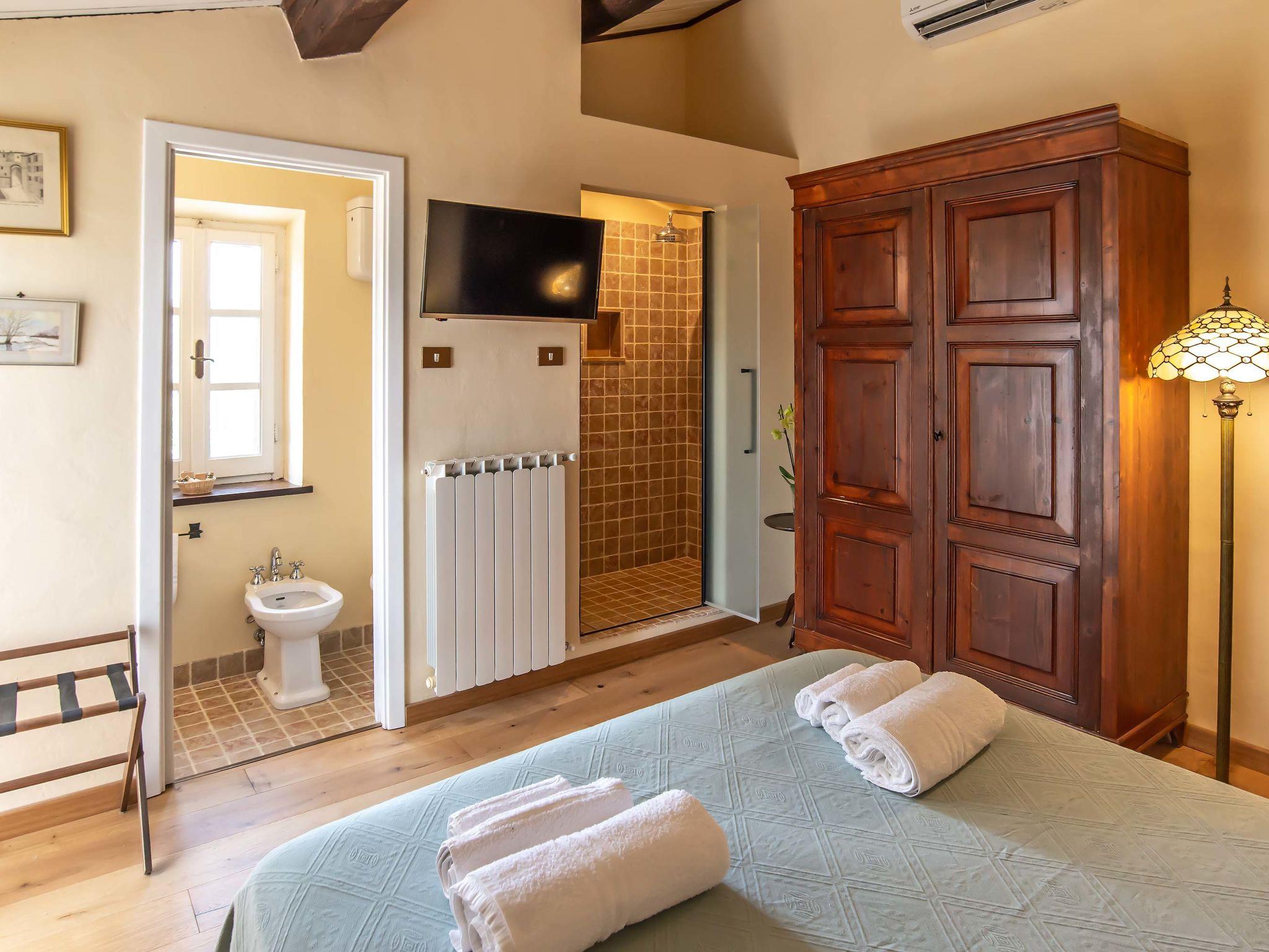 "Villa Alari", 9-room villa 400 m2 on 2 levels. Spacious, beautiful and antique furnishings: open large living room with open-hearth fireplace, TV and international TV channels (flat screen). Open living/dining room with dining table. Exit to the garden. Small dining room with dining table. Exit to the garden. Kitchen (oven, dishwasher, Gas stove, 5 gas rings, toaster, kettle, microwave, electric coffee machine, Capsules for coffee machine (Nespresso) extra). Shower/bidet/WC. Upper floor: living room with open-hearth fireplace. Exit to the garden. Large, 1 room with 2 beds (90 cm), 1 double bed, bath/bidet/WC and TV (flat screen), air conditioning. 1 room with 1 bed (90 cm), 1 double bed, shower/bidet/WC and TV (flat screen), air conditioning. 1 double bedroom with bath/bidet/WC, shower/bidet/WC and TV (flat screen), air conditioning. 1 room with 1 sofabed, 1 double bed and TV (flat screen), air conditioning. 1 double bedroom with shower/bidet/WC and TV (flat screen), air conditioning. Bath/shower/WC. Oil heating, air-conditioning. Natural stone floors. Comfortable furnishings in the country house style. Patio, porch. Terrace furniture, barbecue, deck chairs, box-room. View of the countryside. Facilities: washing machine, iron, children's high chair, baby cot for up to 2 year olds, hair dryer, logs (extra). Internet (WiFi, free). Parking at the house. Please note: non-smokers only. Maximum 2 pets/ dogs allowed. Private entrance, fire extinguisher. The pool mentioned in the description is for private use. IT052008B52IXHME98