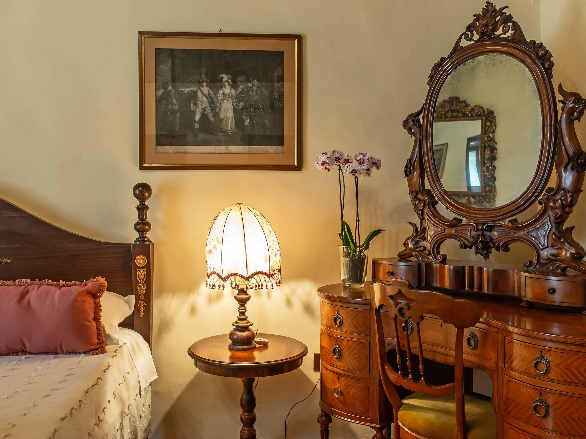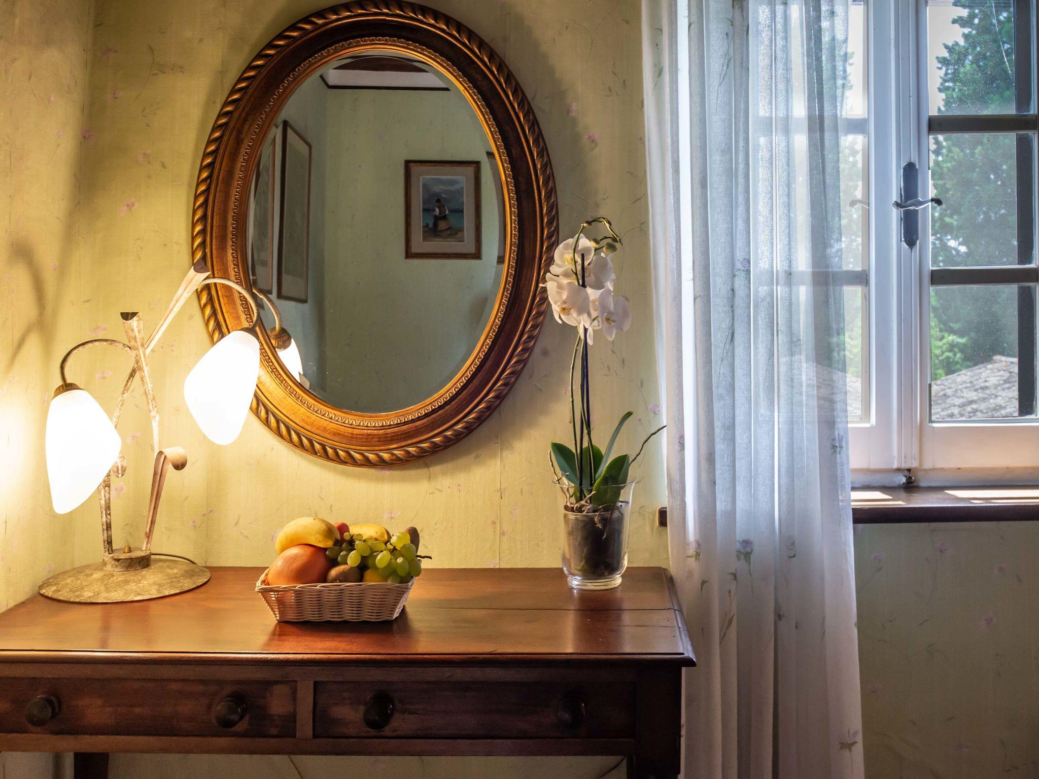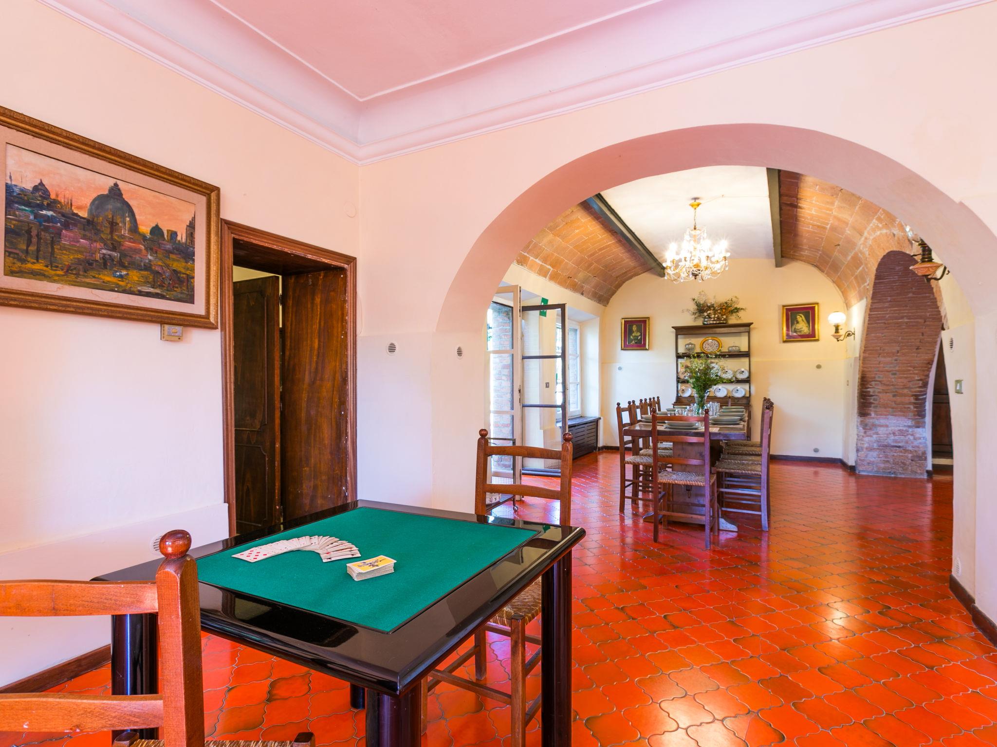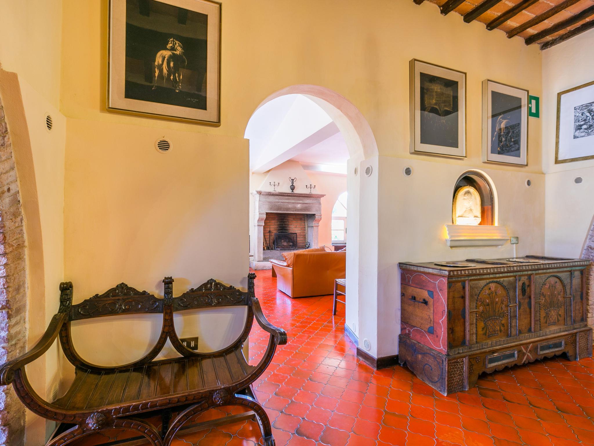 "Villa Alari", 9-room villa 400 m2 on 2 levels. Spacious, beautiful and antique furnishings: open large living room with open-hearth fireplace, TV and international TV channels (flat screen). Open living/dining room with dining table. Exit to the garden. Small dining room with dining table. Exit to the garden. Kitchen (oven, dishwasher, Gas stove, 5 gas rings, toaster, kettle, microwave, electric coffee machine, Capsules for coffee machine (Nespresso) extra). Shower/bidet/WC. Upper floor: living room with open-hearth fireplace. Exit to the garden. Large, 1 room with 2 beds (90 cm), 1 double bed, bath/bidet/WC and TV (flat screen), air conditioning. 1 room with 1 bed (90 cm), 1 double bed, shower/bidet/WC and TV (flat screen), air conditioning. 1 double bedroom with bath/bidet/WC, shower/bidet/WC and TV (flat screen), air conditioning. 1 room with 1 sofabed, 1 double bed and TV (flat screen), air conditioning. 1 double bedroom with shower/bidet/WC and TV (flat screen), air conditioning. Bath/shower/WC. Oil heating, air-conditioning. Natural stone floors. Comfortable furnishings in the country house style. Patio, porch. Terrace furniture, barbecue, deck chairs, box-room. View of the countryside. Facilities: washing machine, iron, children's high chair, baby cot for up to 2 year olds, hair dryer, logs (extra). Internet (WiFi, free). Parking at the house. Please note: non-smokers only. Maximum 2 pets/ dogs allowed. Private entrance, fire extinguisher. The pool mentioned in the description is for private use. IT052008B52IXHME98