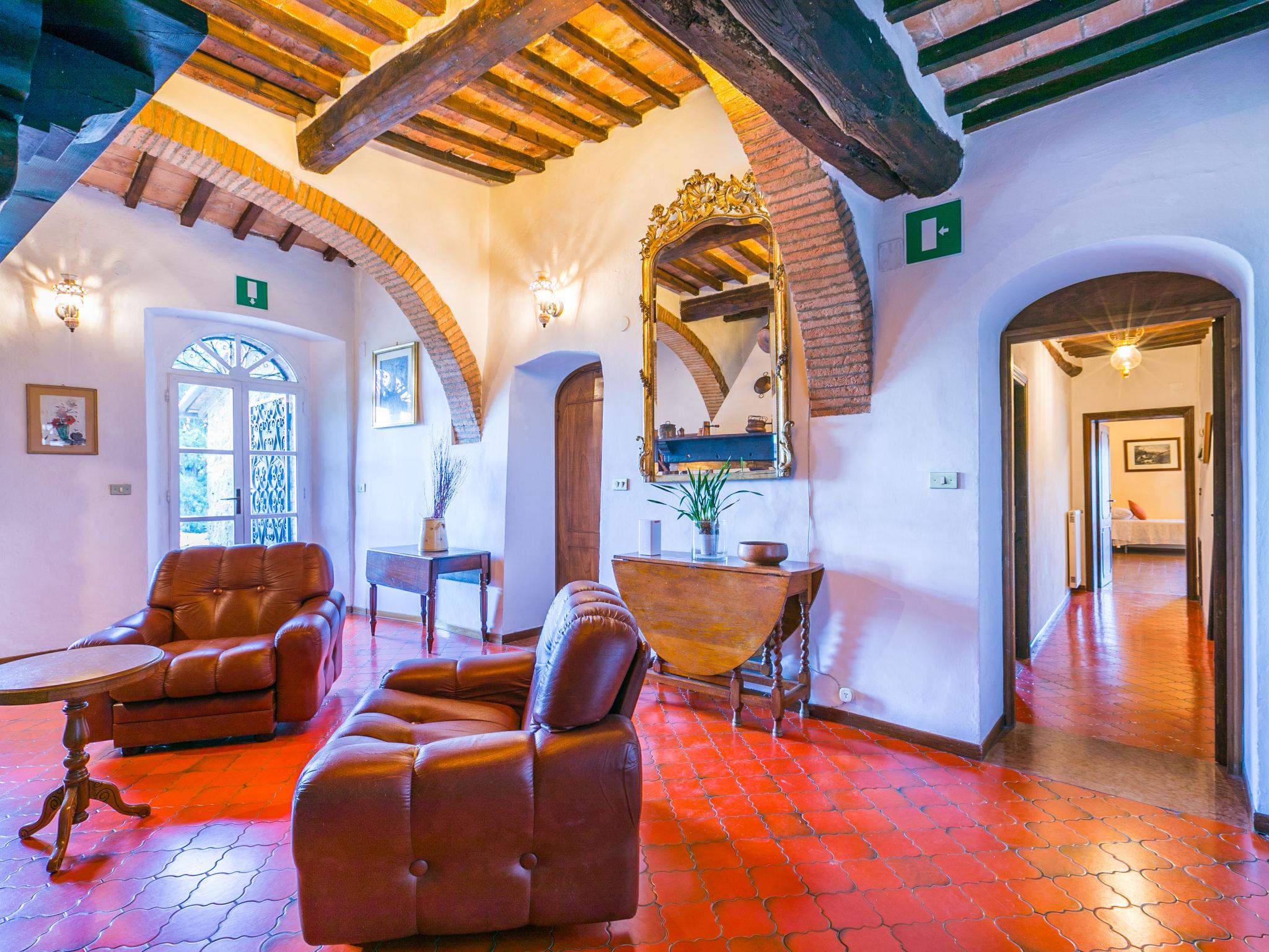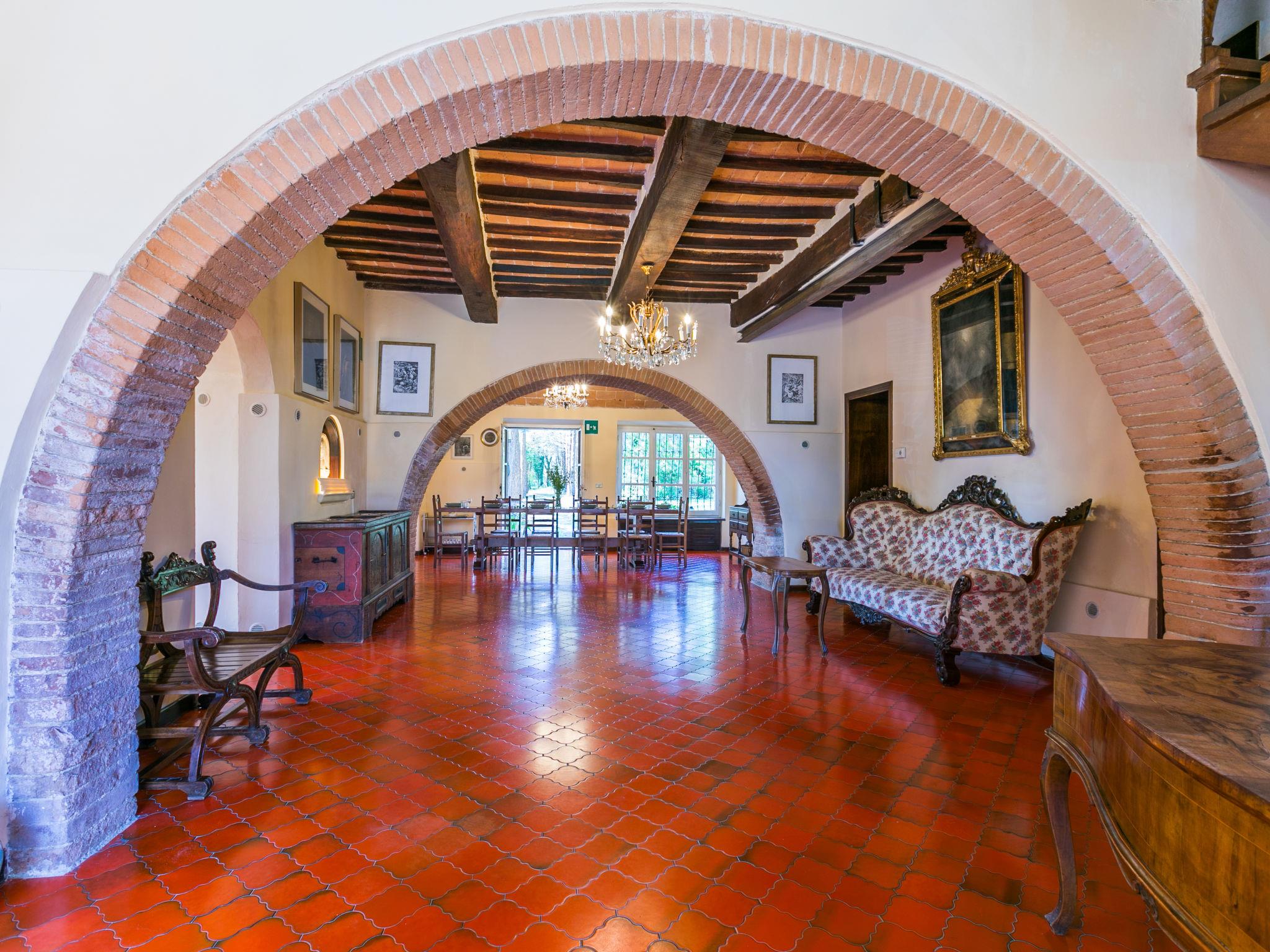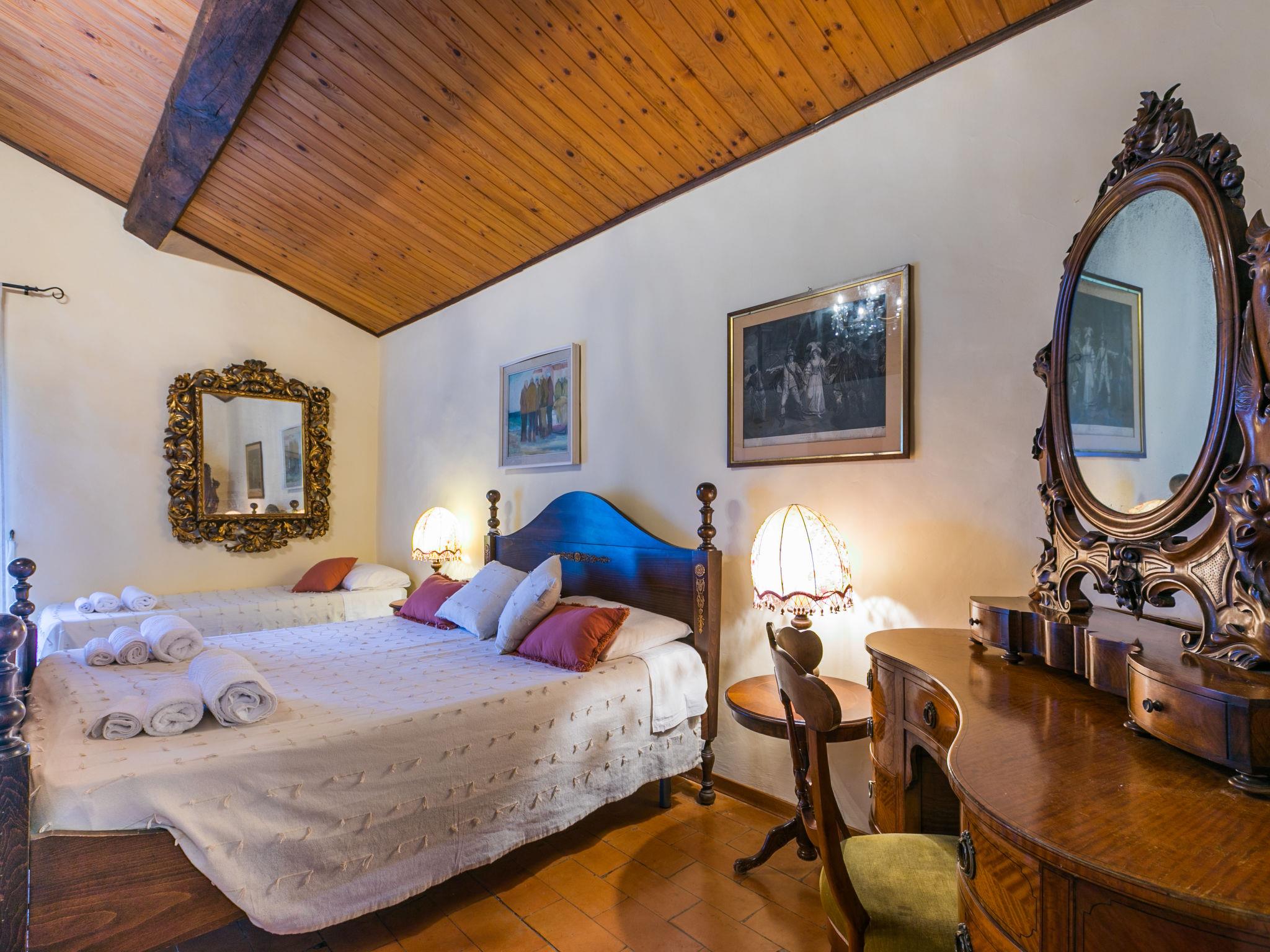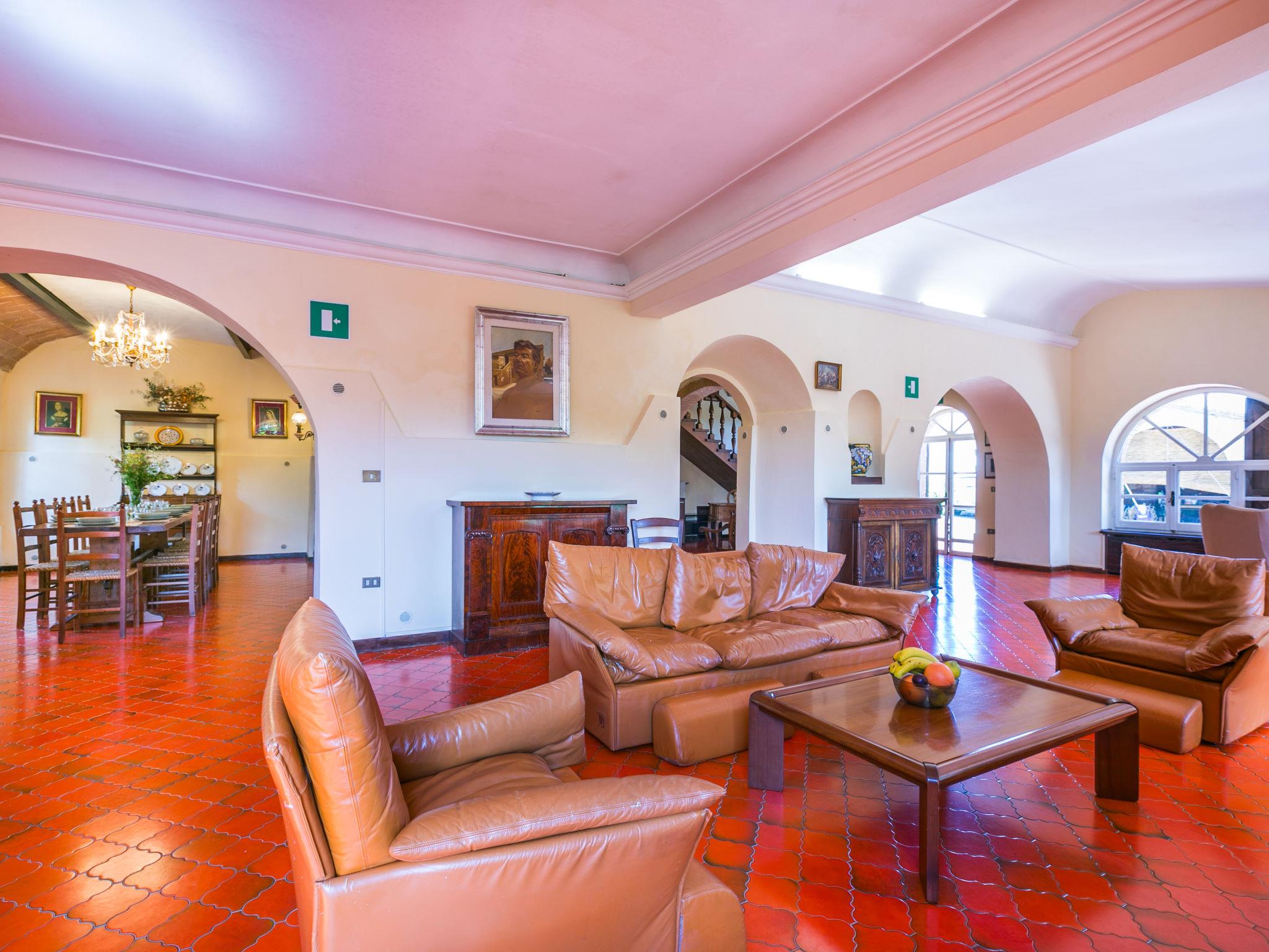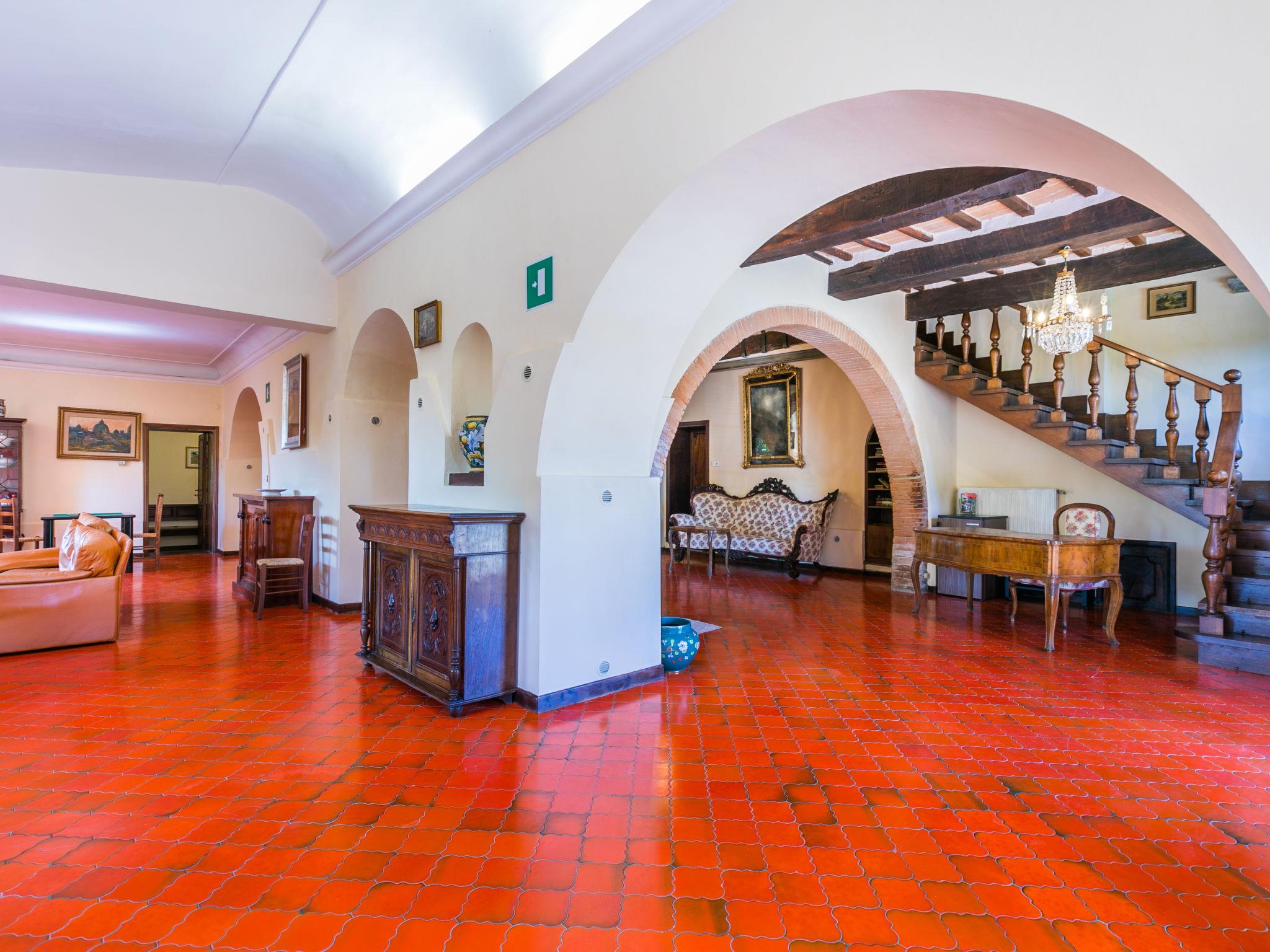 "Villa Alari", 9-room villa 400 m2 on 2 levels. Spacious, beautiful and antique furnishings: open large living room with open-hearth fireplace, TV and international TV channels (flat screen). Open living/dining room with dining table. Exit to the garden. Small dining room with dining table. Exit to the garden. Kitchen (oven, dishwasher, Gas stove, 5 gas rings, toaster, kettle, microwave, electric coffee machine, Capsules for coffee machine (Nespresso) extra). Shower/bidet/WC. Upper floor: living room with open-hearth fireplace. Exit to the garden. Large, 1 room with 2 beds (90 cm), 1 double bed, bath/bidet/WC and TV (flat screen), air conditioning. 1 room with 1 bed (90 cm), 1 double bed, shower/bidet/WC and TV (flat screen), air conditioning. 1 double bedroom with bath/bidet/WC, shower/bidet/WC and TV (flat screen), air conditioning. 1 room with 1 sofabed, 1 double bed and TV (flat screen), air conditioning. 1 double bedroom with shower/bidet/WC and TV (flat screen), air conditioning. Bath/shower/WC. Oil heating, air-conditioning. Natural stone floors. Comfortable furnishings in the country house style. Patio, porch. Terrace furniture, barbecue, deck chairs, box-room. View of the countryside. Facilities: washing machine, iron, children's high chair, baby cot for up to 2 year olds, hair dryer, logs (extra). Internet (WiFi, free). Parking at the house. Please note: non-smokers only. Maximum 2 pets/ dogs allowed. Private entrance, fire extinguisher. The pool mentioned in the description is for private use. IT052008B52IXHME98