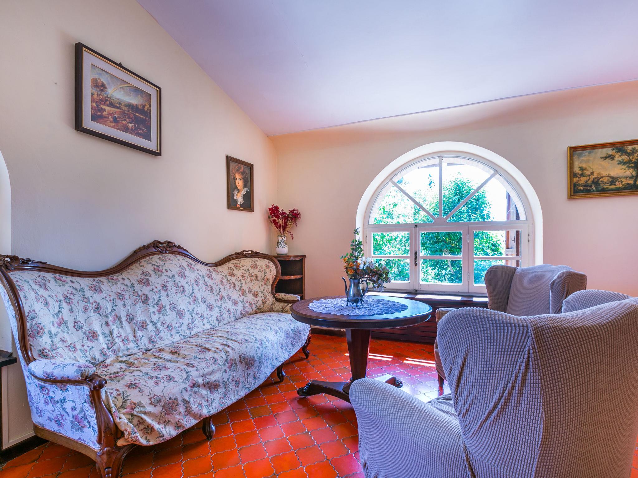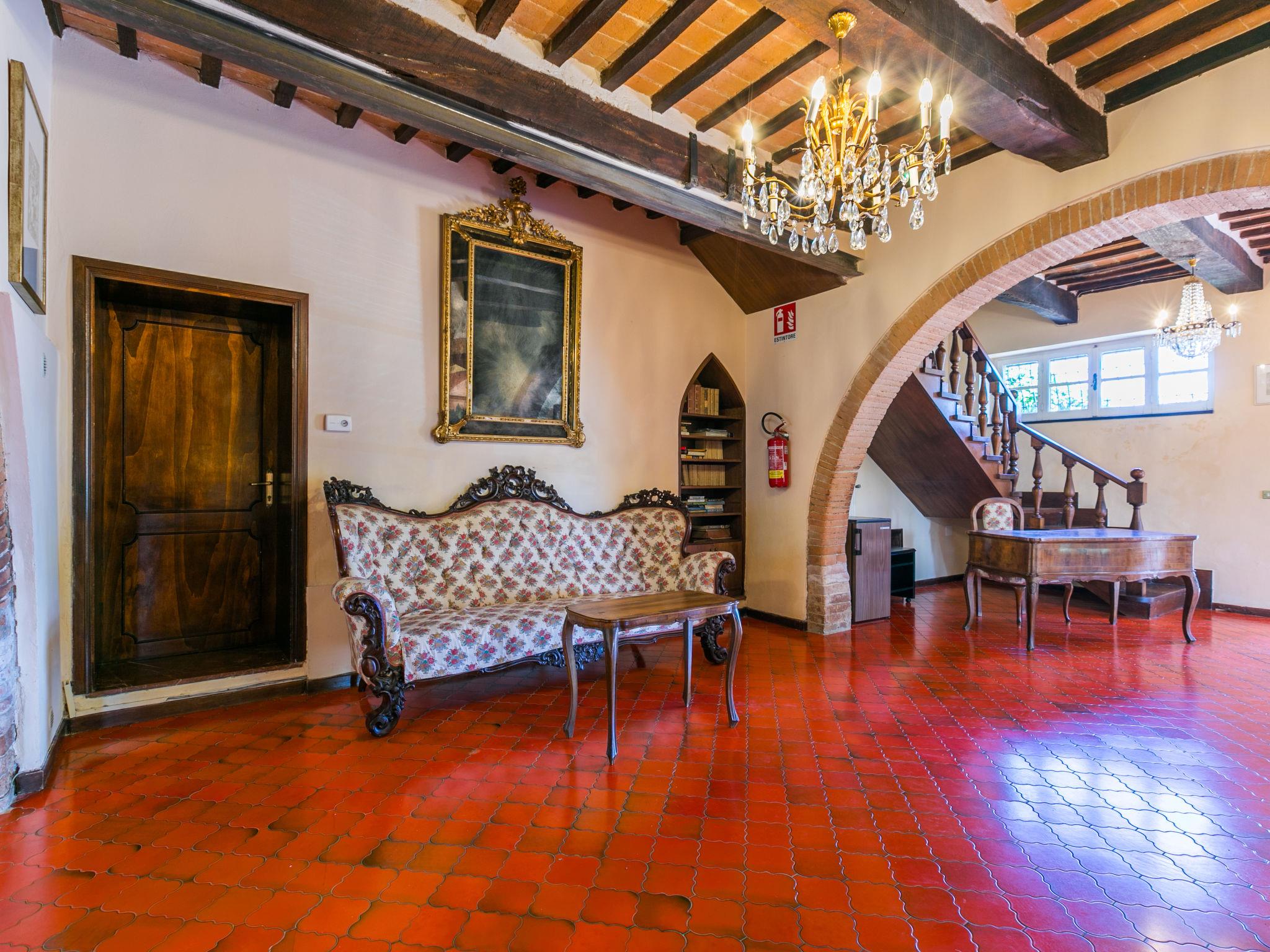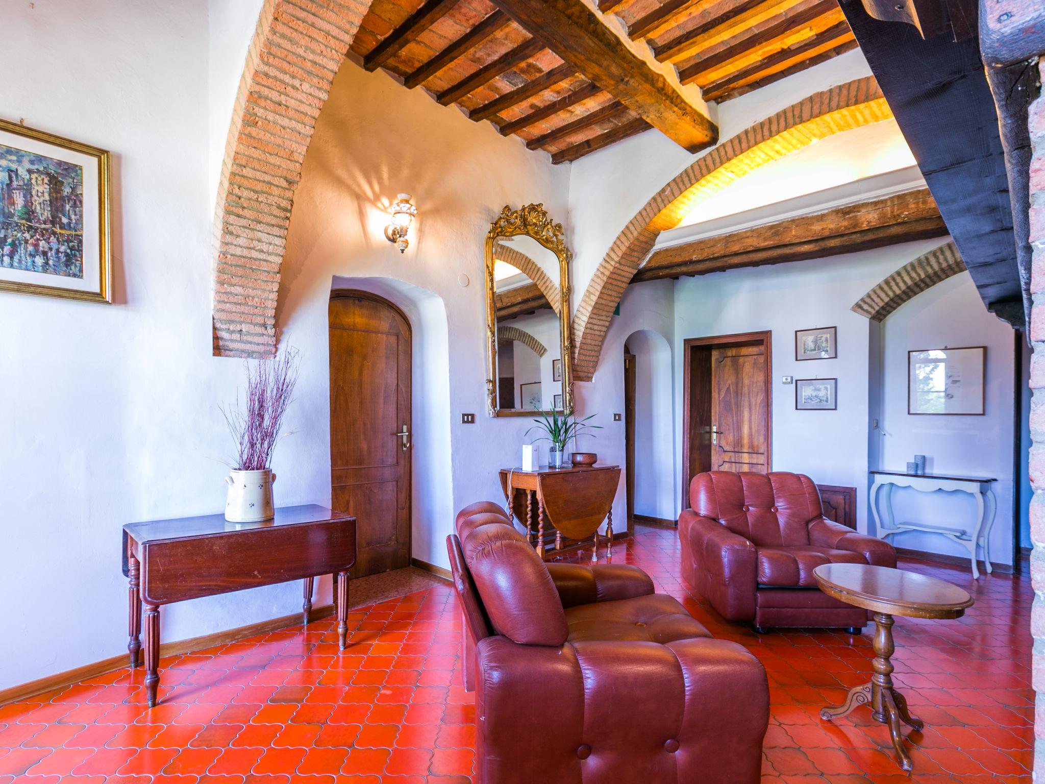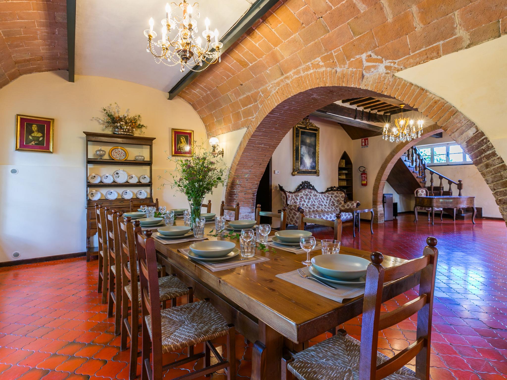 "Villa Alari", 9-room villa 400 m2 on 2 levels. Spacious, beautiful and antique furnishings: open large living room with open-hearth fireplace, TV and international TV channels (flat screen). Open living/dining room with dining table. Exit to the garden. Small dining room with dining table. Exit to the garden. Kitchen (oven, dishwasher, Gas stove, 5 gas rings, toaster, kettle, microwave, electric coffee machine, Capsules for coffee machine (Nespresso) extra). Shower/bidet/WC. Upper floor: living room with open-hearth fireplace. Exit to the garden. Large, 1 room with 2 beds (90 cm), 1 double bed, bath/bidet/WC and TV (flat screen), air conditioning. 1 room with 1 bed (90 cm), 1 double bed, shower/bidet/WC and TV (flat screen), air conditioning. 1 double bedroom with bath/bidet/WC, shower/bidet/WC and TV (flat screen), air conditioning. 1 room with 1 sofabed, 1 double bed and TV (flat screen), air conditioning. 1 double bedroom with shower/bidet/WC and TV (flat screen), air conditioning. Bath/shower/WC. Oil heating, air-conditioning. Natural stone floors. Comfortable furnishings in the country house style. Patio, porch. Terrace furniture, barbecue, deck chairs, box-room. View of the countryside. Facilities: washing machine, iron, children's high chair, baby cot for up to 2 year olds, hair dryer, logs (extra). Internet (WiFi, free). Parking at the house. Please note: non-smokers only. Maximum 2 pets/ dogs allowed. Private entrance, fire extinguisher. The pool mentioned in the description is for private use. IT052008B52IXHME98
