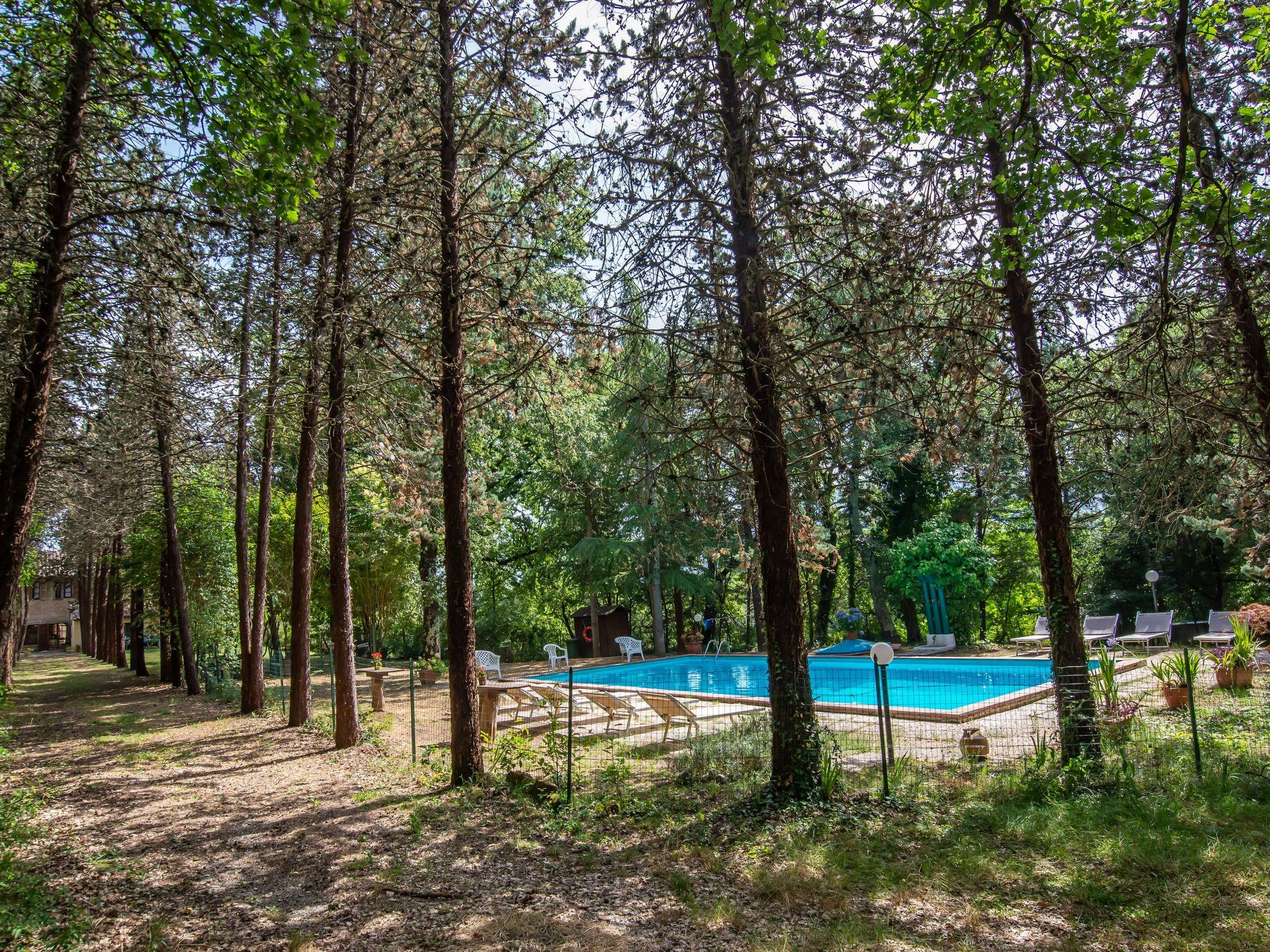 Cetona: Agriturismo "Il Pornelleto" from the 18th century, surrounded by trees and meadows. 5 apartments in the residence. In a secluded, elevated position, in the countryside. For shared use: natural state property 5'000 m2. Private: natural state property, swimming pool fenced (6 x 10 m, seasonal availability: 10.May. - 01.Oct.). Outdoor shower, garden furniture, barbecue, pool maintenance by the owner/gardener. In the complex: reception, restaurant, hot tub (extra). Table football. Linen change (suppl. charge extra). Towel change (suppl. charge extra). Cook on request (extra). Breakfast and half board possible on request (extra). 300 m long bumpy motor access to the house. Parking at the house on the premises. Nearby attractions: Chiusi, Chianciano Terme, Perugia, Siena, Orvieto. Well-known lakes can easily be reached: Trasimeno. Please note: car recommended. Baby equipment (included). Groups of teenagers on request only. Local sale of farm products. The owner lives on the same property. Owner lives in separate semi-detached house. Motorway close by.