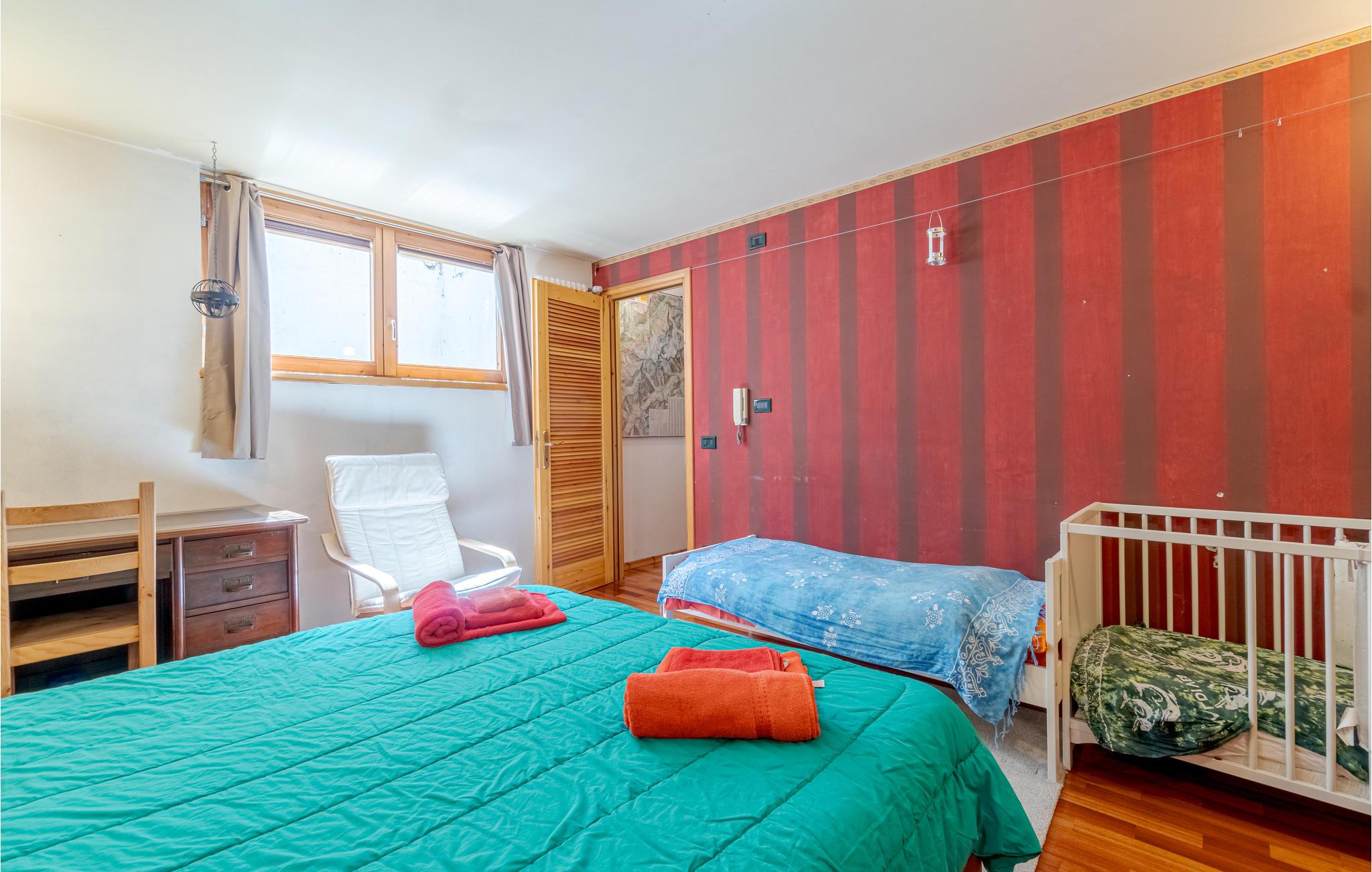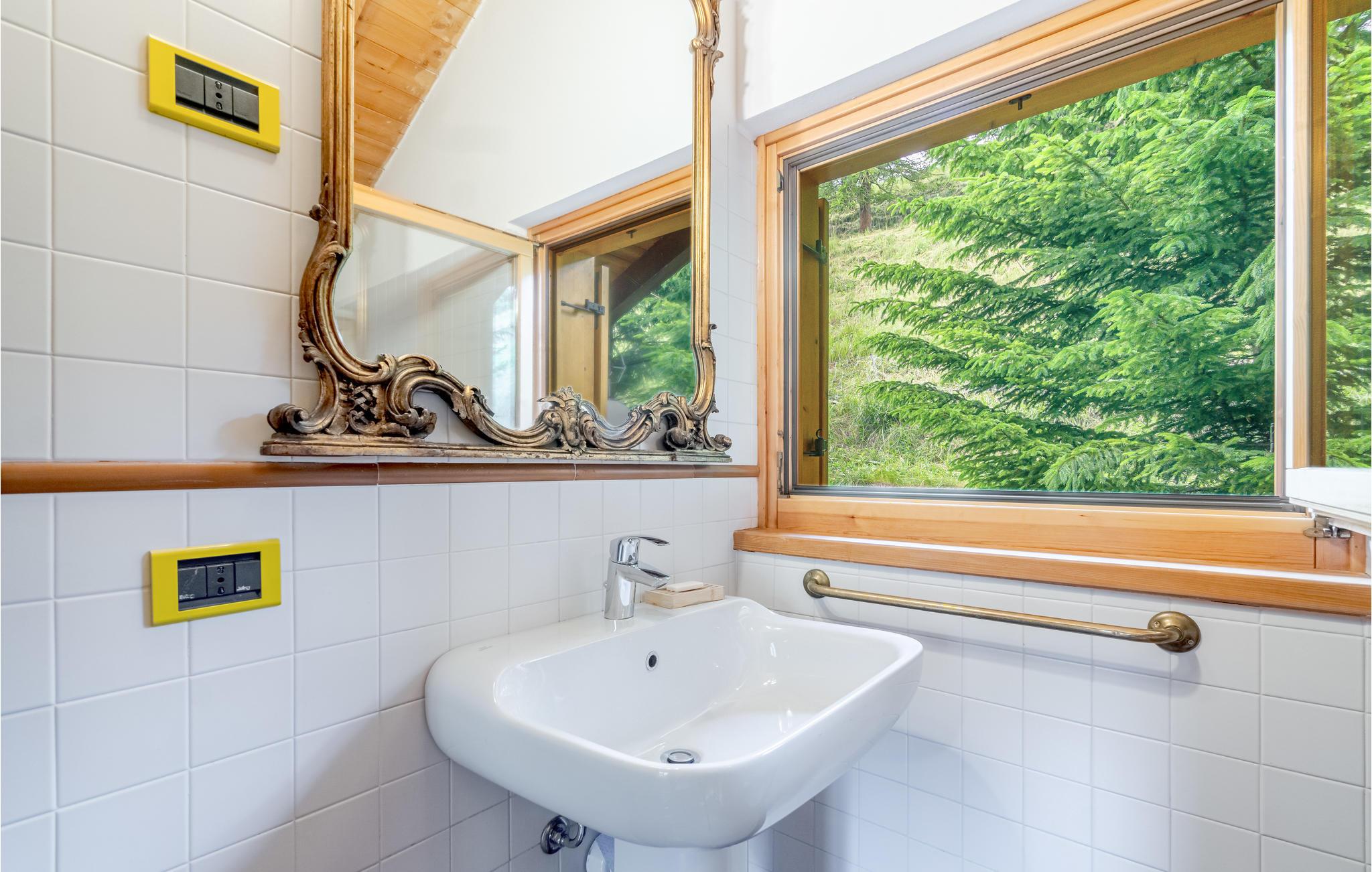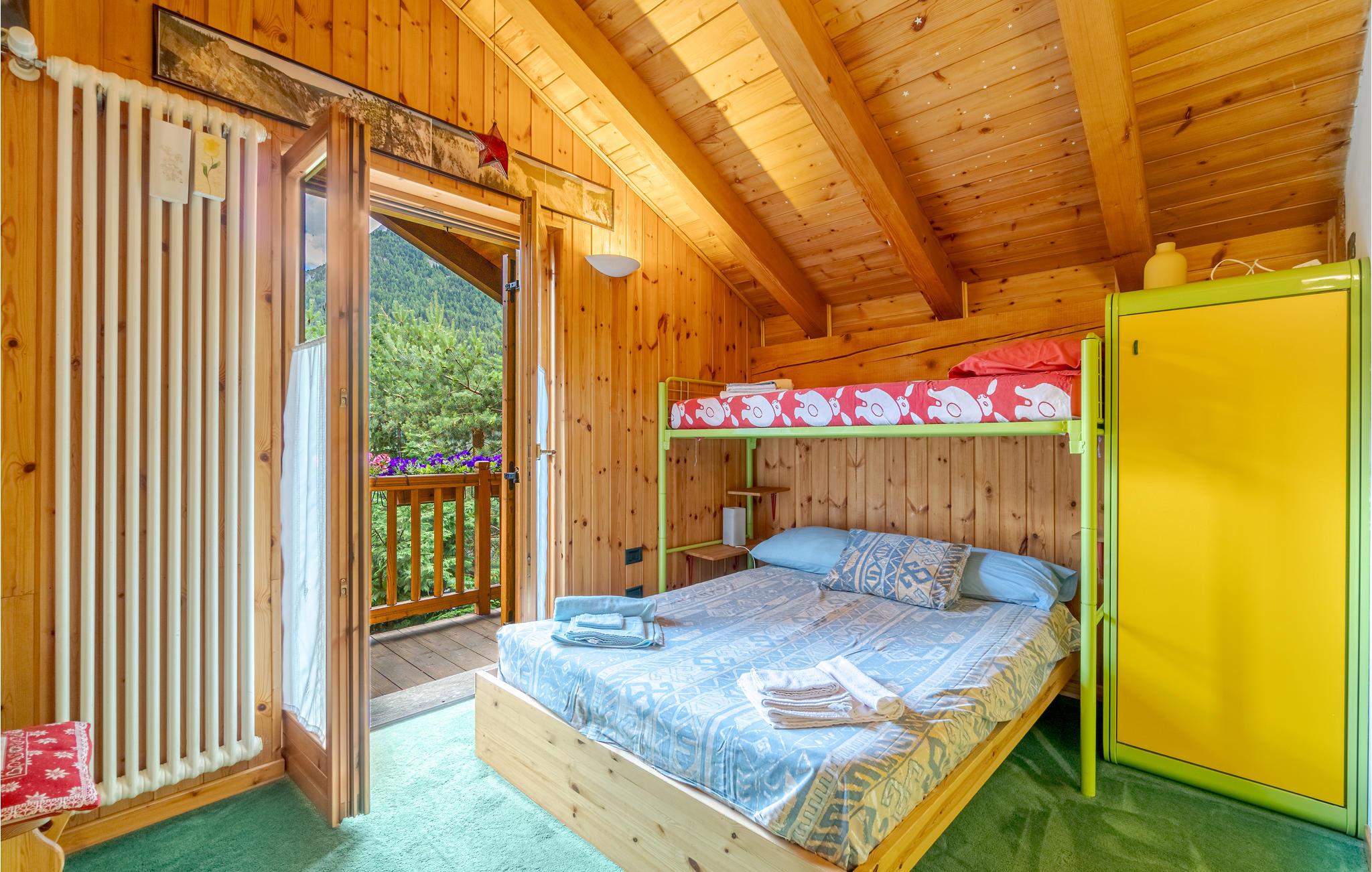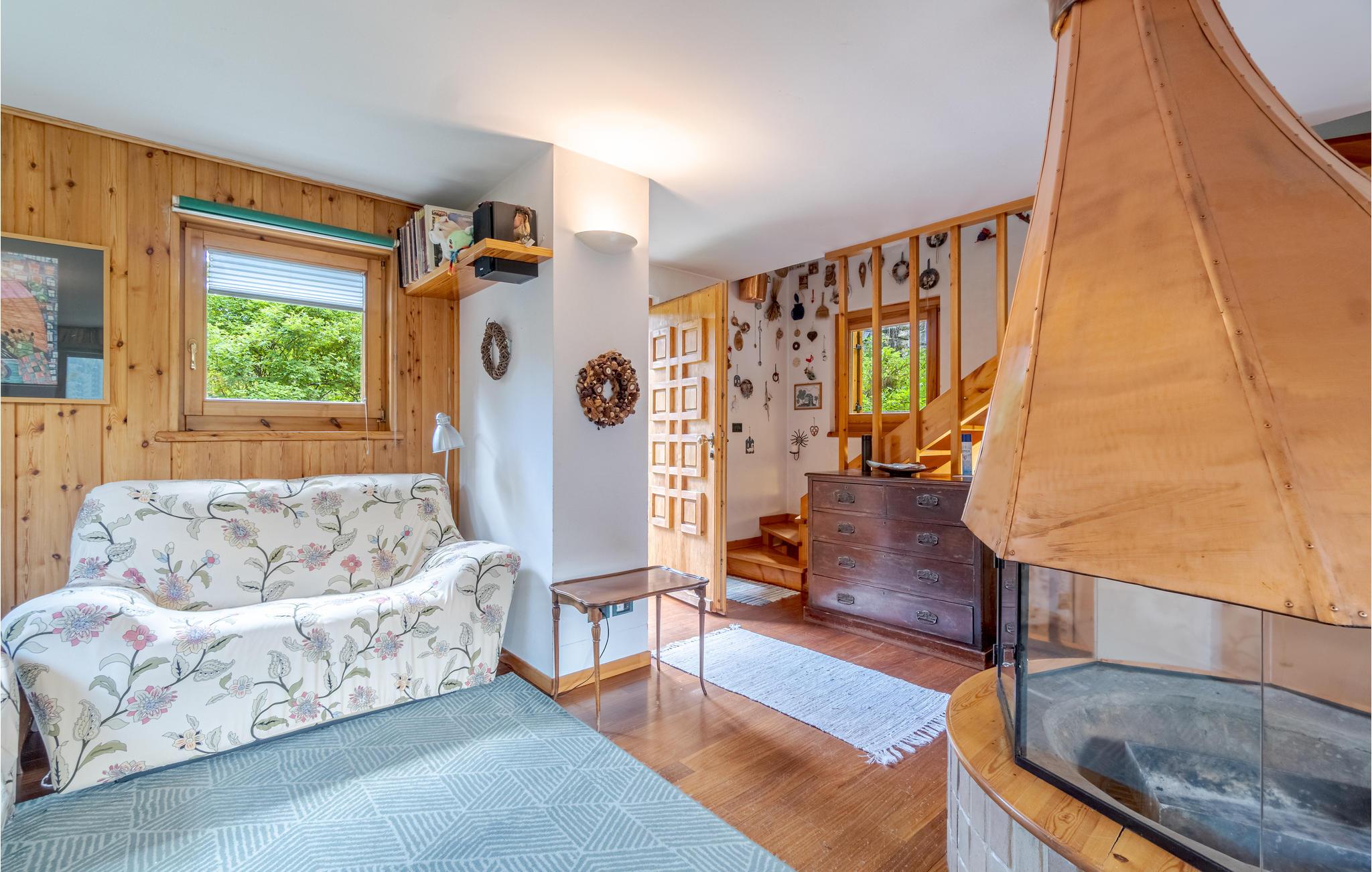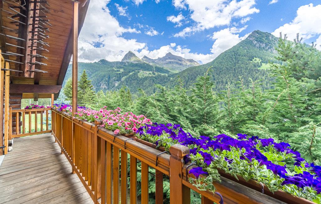 Dette feriehus på flere plan ligger ikke langt fra centrum i Champoluc, med skøn udsigt over de omliggende bjerge. I haven er det skønt at slappe af i det grønne. Her er også sauna til 2-3 personer i souterrain hvor der også er soveværelse med dobbeltseng og et badeværelse. Champoluc (1565 moh) er en region i Valle d'Ayas med kun 1,2 km til Monte Rosa Skys skilifte. Ud over de berømte pister på 180 km, kan I dyrke freeride, Heliski, lære at klatre, bestige bjerge og løbe på ski om sommeren. Andre berømte skisportsområder er Gressoney (66 km), Cervinia (67 km) og La Thuile (85 km). Her er også skønne stier til trekking gennem dalen. Valle d'Aosta er fuld af kunst og kultur. I Aosta (57 km) er der mange romerske monumenter. Talrige borge, fx Fenis (41 km), Issogne (18 km) og Verres (16 km). Mange specialiteter fx kostbare DOP-produter, fx Lardo di Arnad og Fontinaost. Der er 22 km til St. Vincent med de berømte kurbade. Der er 95 km til Torino, som var Italiens første hovedstad, med et stort udvalg af monumenter og museer, især det berømte Egyptiske museum og det kongelige palads Venaria Reale (96 km). Husets kamin er kun til pynt, den kan ikke benyttes.