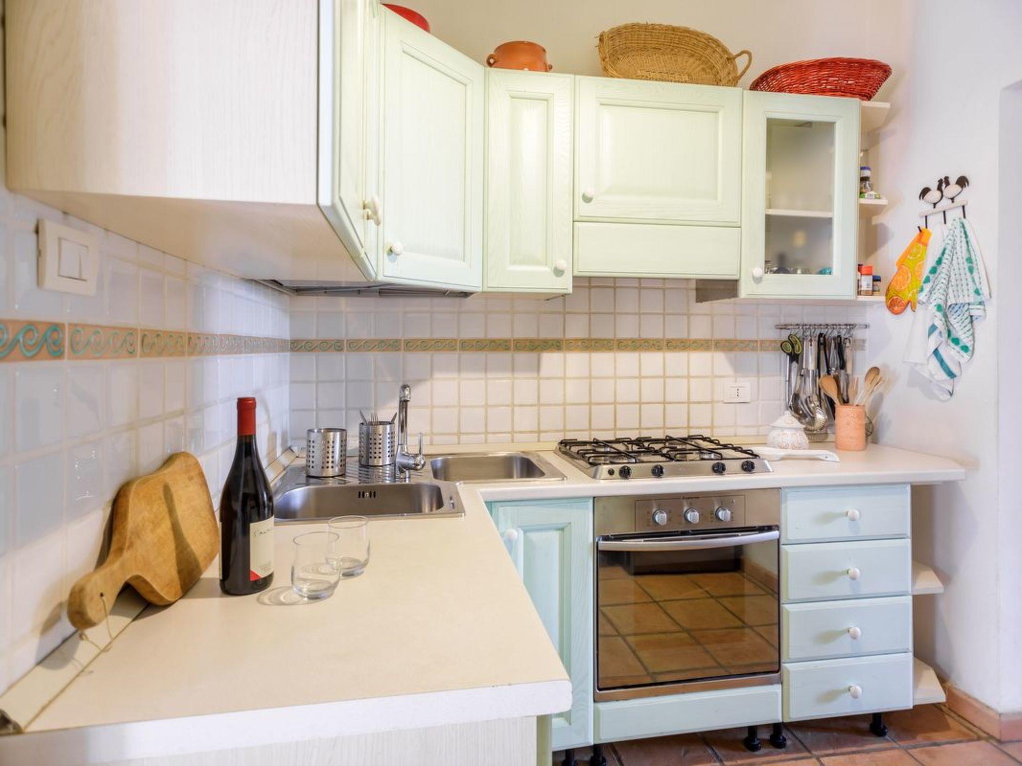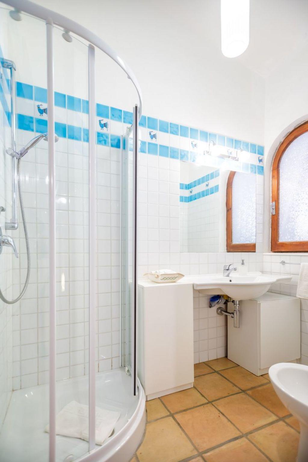 The interior of the villa is equally charming and designed to offer maximum comfort. Spread over a single floor, it has 5 bedrooms that can accommodate up to 9 adults, providing adequate space for sleeping. Of these, 2 rooms are equipped with a double bed, 2 offer two single beds each, and one is equipped with a single bed. The living room is spacious and contains an area with a fireplace, sofa and TV, as well as a dining area, perfect for sharing meals and moments together.