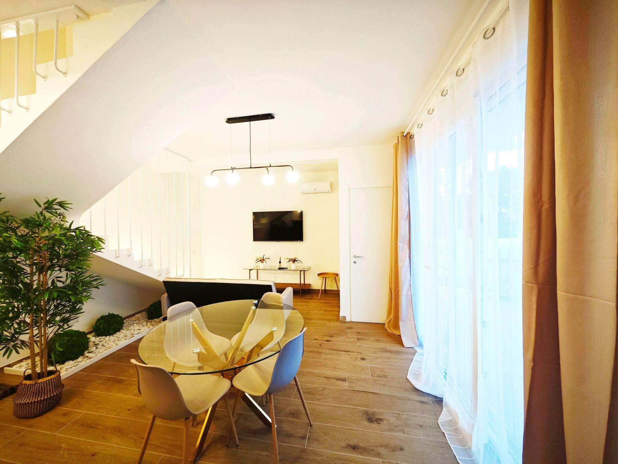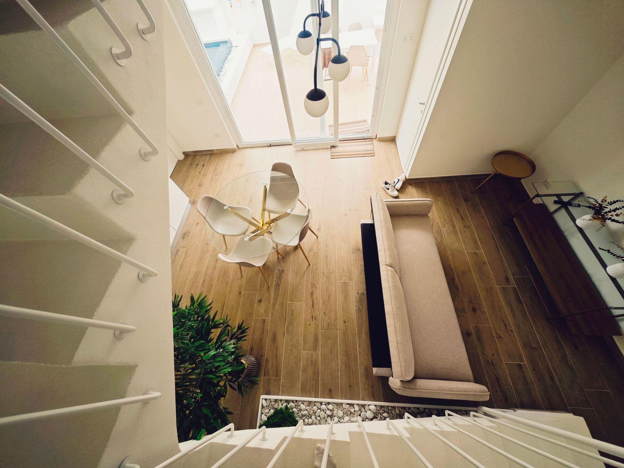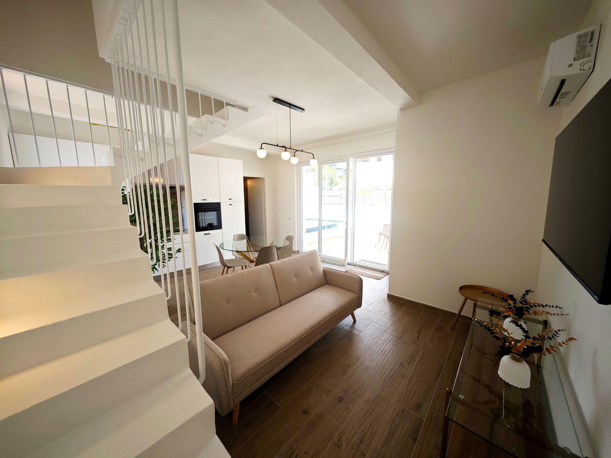 The interior of the property is carefully designed to offer maximum comfort during your stay. Every detail has been thought out to create a cosy and functional environment: from the fully equipped induction kitchen, ideal for preparing delicious meals on your own, to the air conditioning systems in every room to ensure an ideal climate at all times. The cottage is on two levels, comprising a spacious living area on the ground floor and two bedrooms with en-suite bathrooms on the upper floor, ensuring privacy and comfort for all guests.