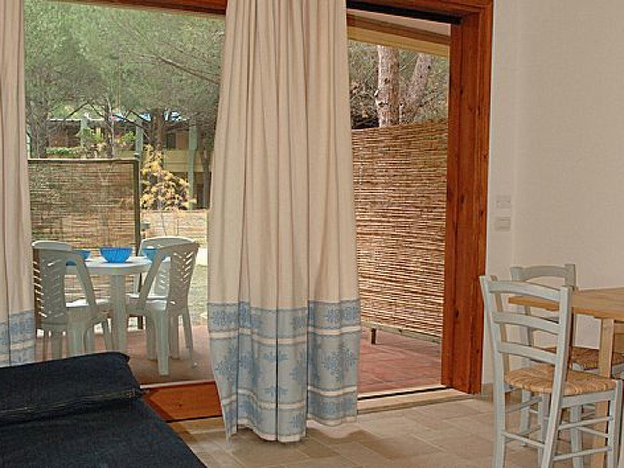 The one-bedroom apartment is on a single level and is accessed from the residence's internal square: a stone path will lead you to the covered outdoor veranda equipped with table and chairs, a sliding glass door will lead you to the living room complete with kitchenette (4 gas rings, pots and pans and crockery, refrigerator with freezer compartment, satellite lcd tv), internal table and double sofa bed; a small ante-bathroom separates the living area from the bathroom with crystal shower box and from the double bedroom (bed can be doubled into 2 singles on request) complete with chest of drawers and capacious wardrobe. The bedroom window is fitted with a mosquito net.Everything has been recently renovated and finished with functional furniture and small Sardinian textile handicrafts.