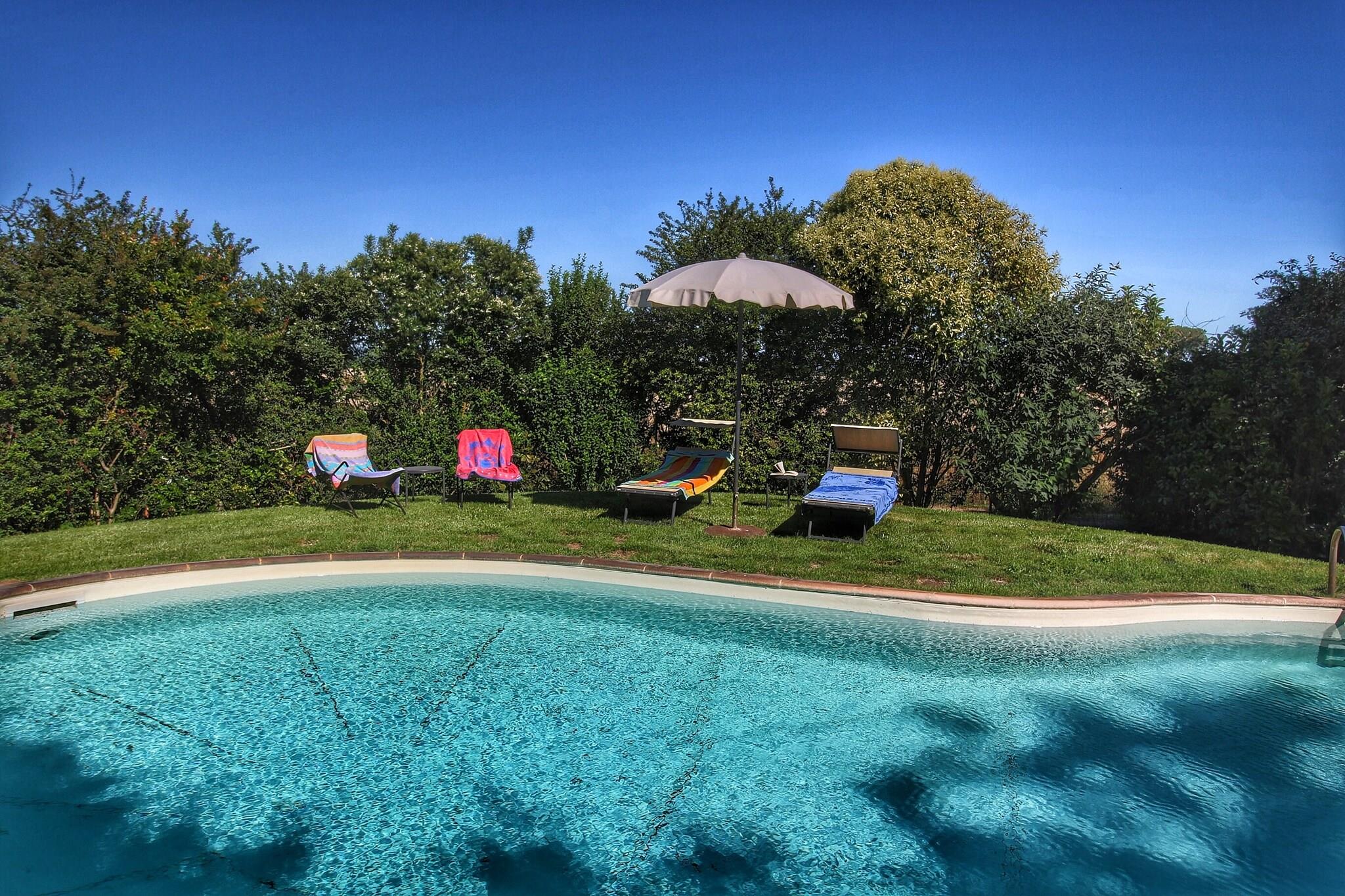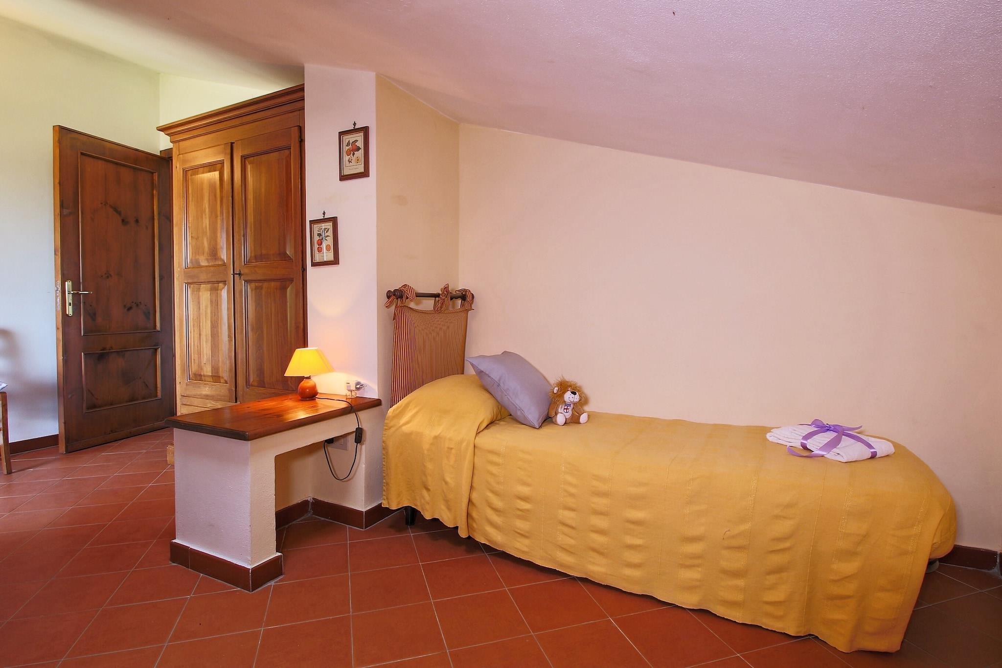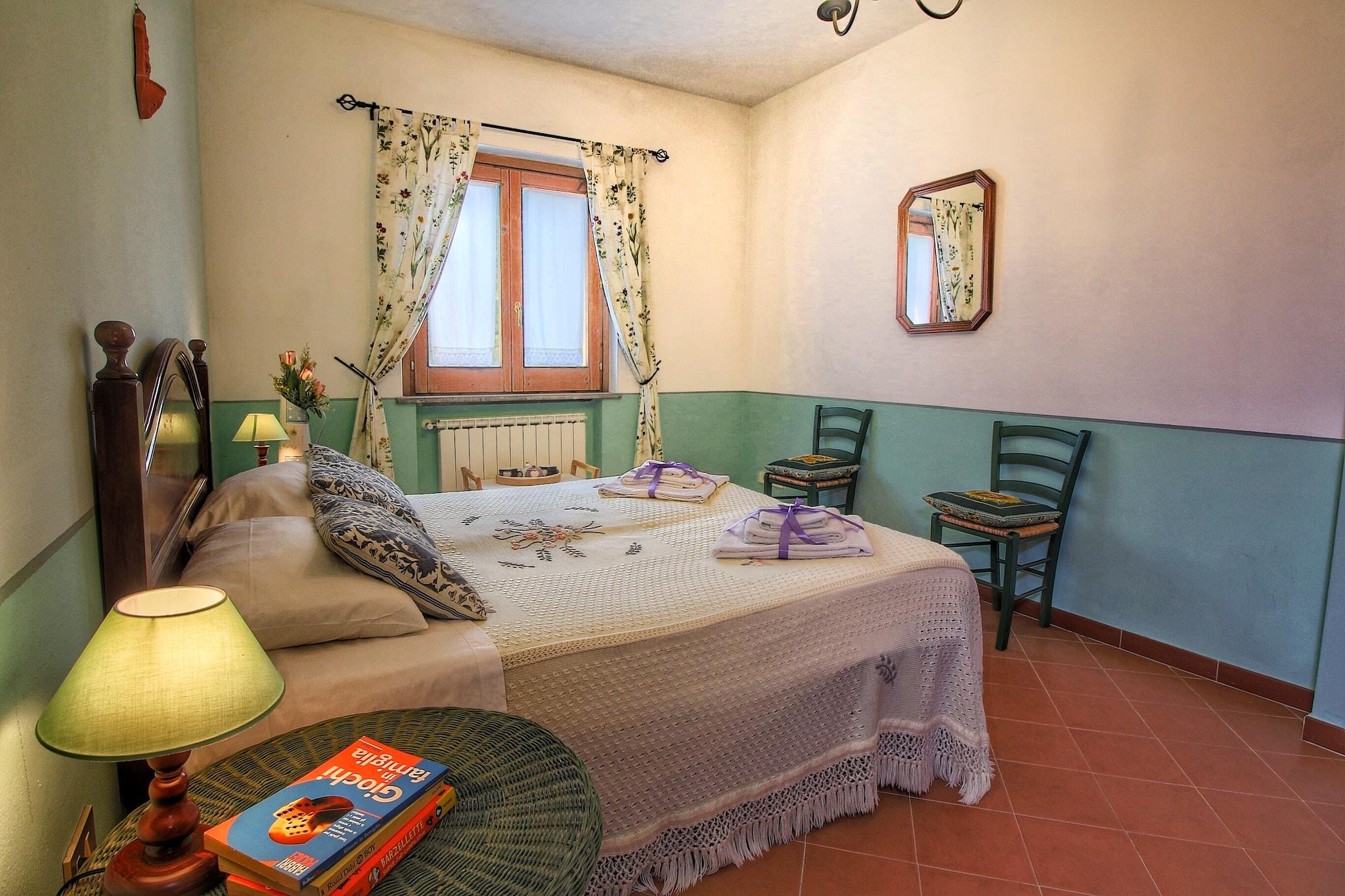 Denne 3-værelses feriebolig kan sove 8 personer. Ideel for familier og grupper har overnatningsstedet en fælles swimmingpool, hvor du kan slappe af efter en aktiv dag. Under dit ophold her kan du planlægge udflugter til Trasimeno Lake Regional Park, Villa Bramasole og det arkæologiske museum. Farneta Abbey, Uffizi-galleriet og Santa Maria del Fiore-katedralen er andre attraktioner i regionen. Prøv det kulturelle køkken i restauranterne, der ligger 3 km væk. Få fat i det nødvendige i butikker, der ligger 7 km væk.Denne ferielejlighed har en have og terrasse, der er ideelle til grillmad. Ejendommens stue har pejs og satellit-tv. Der er en vaskemaskine, en kaffemaskine og en ovn til din komfort. Her er maks 1 kæledyr tilladt, og den nærmeste lufthavn ligger kun 60 km væk.