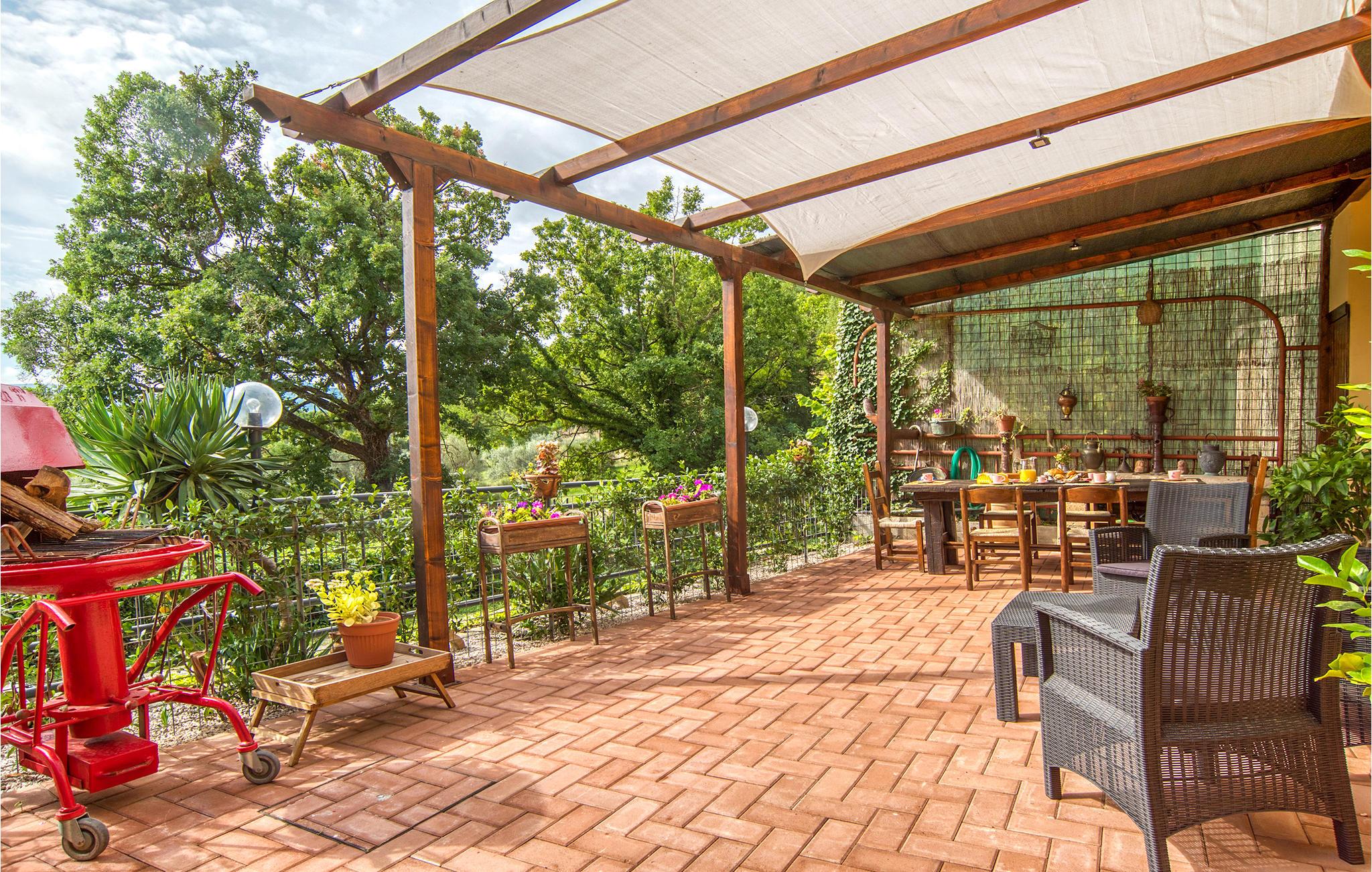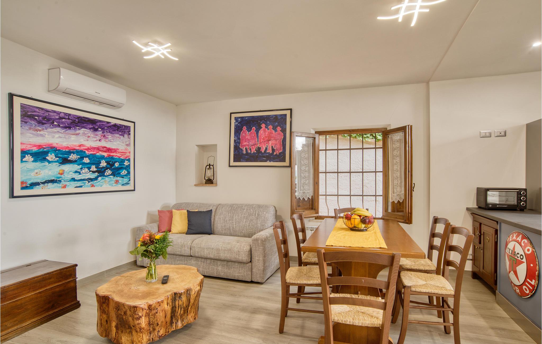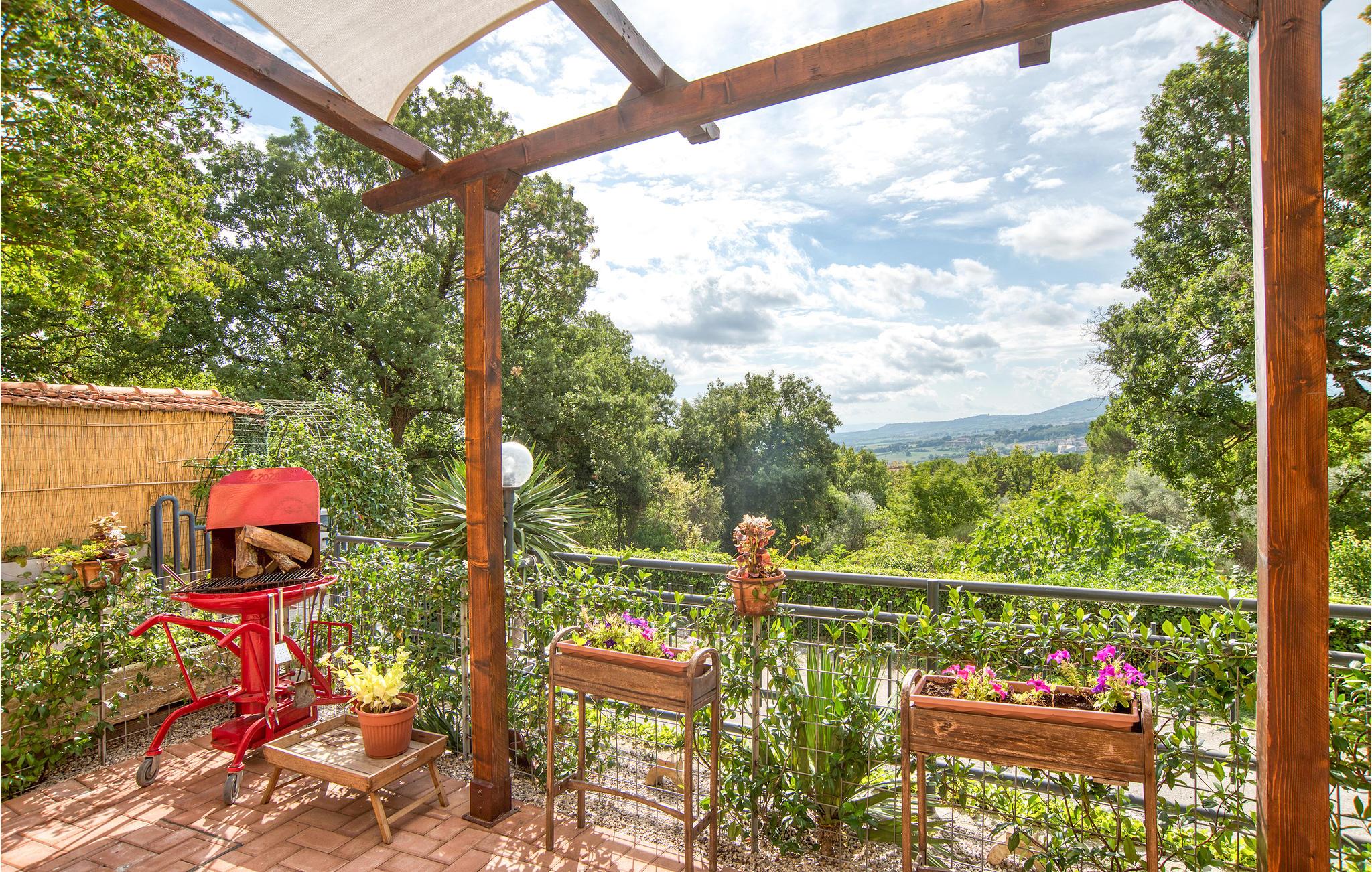 Denne fuldstændig restaurerede lejlighed er et godt udgangspunkt for at besøge Val d'Orcia. Den overdækkede terrasse med pergola giver jer den smukkeste udsigt over store dele af det store italienske landskab. Trælofterne, synlige bjælker og lille pejs i stuen fremtryller en hyggelig og afslappet atmosfære.