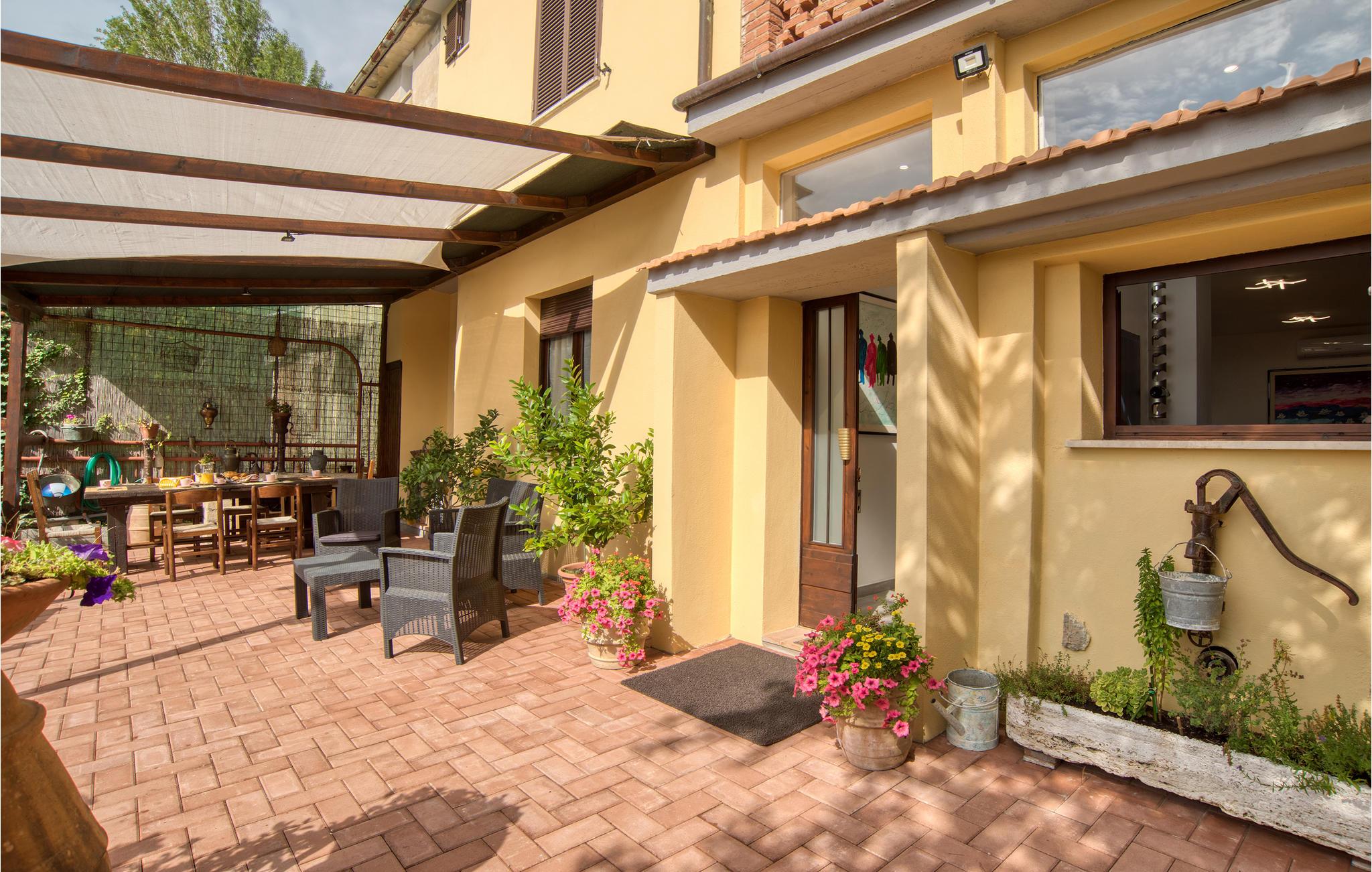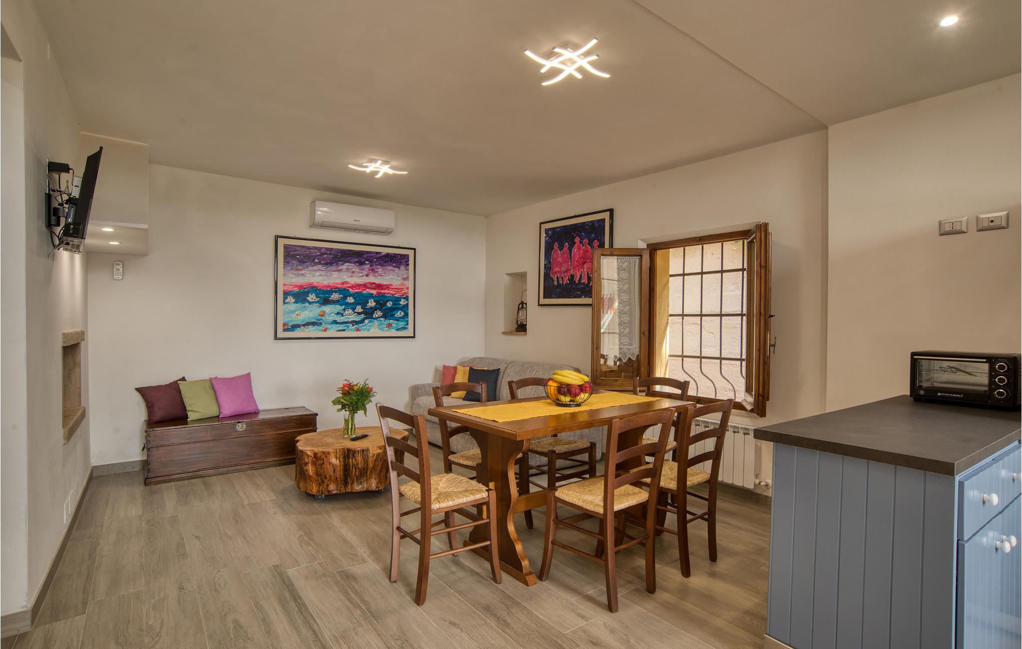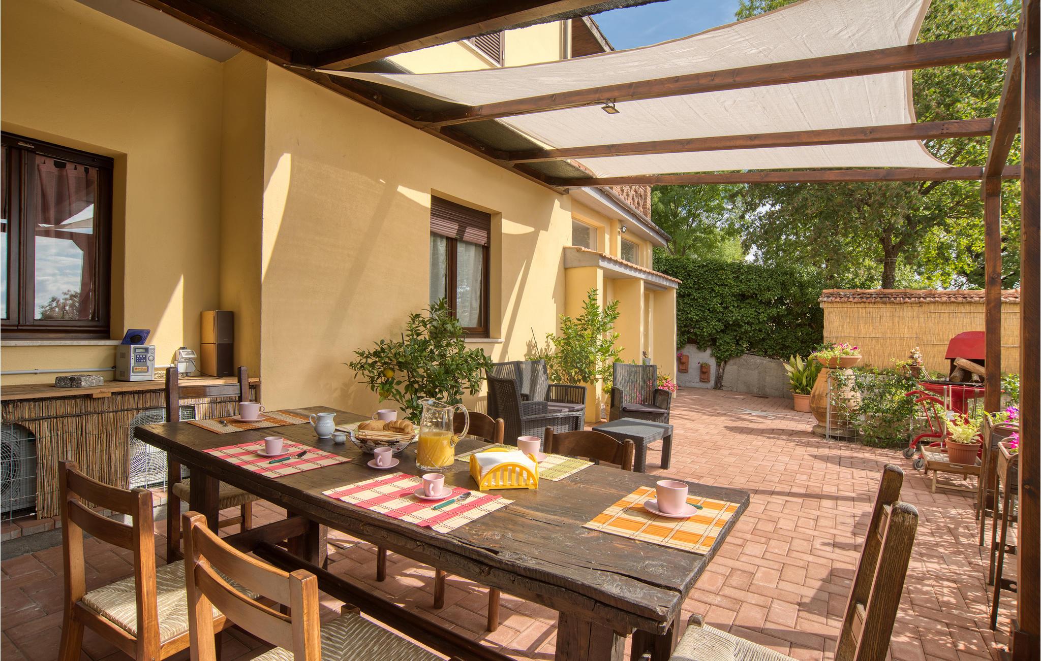 Denne fuldstændig restaurerede lejlighed er et godt udgangspunkt for at besøge Val d'Orcia. Den overdækkede terrasse med pergola giver jer den smukkeste udsigt over store dele af det store italienske landskab. Trælofterne, synlige bjælker og lille pejs i stuen fremtryller en hyggelig og afslappet atmosfære.