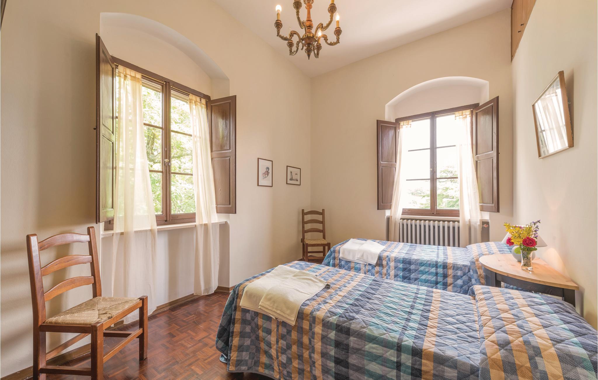 Roligt, solrigt landhus med anneks, tæt på Casciana Terme (10 km) højt beliggende i bakkerne imellem Pisa og Volterra. Fra den store grund er der mulighed for at gå spændende ture på de 8 kilometer stier, der slynger sig igennem skoven og de mange oliventræer i området - helt oplagt, hvis I også gerne vil opleve dyrelivet helt tæt på. Eller hvad med bare at slappe af i swimmingpoolen eller på den store græsplæne, mens I også nyder den fantastiske udsigt ud over landskabet. Siddepladser foran de to bygninger. Ca. 3 km væk ligger den kvægavlsdrift, der også hører til grunden. Tips til dagsudflugter: Cecina Mare med sine skønne sandstrande har I kun 25 km fra huset, Volterra 20 km, Pisa 25 km. I nærheden har I også kurstedet Casciana Terme, hvor I også finder gode restauranter og indkøbsmuligheder af enhver art. Mulighed for ekstrarengøring ved forespørgsel og mod betaling på stedet.