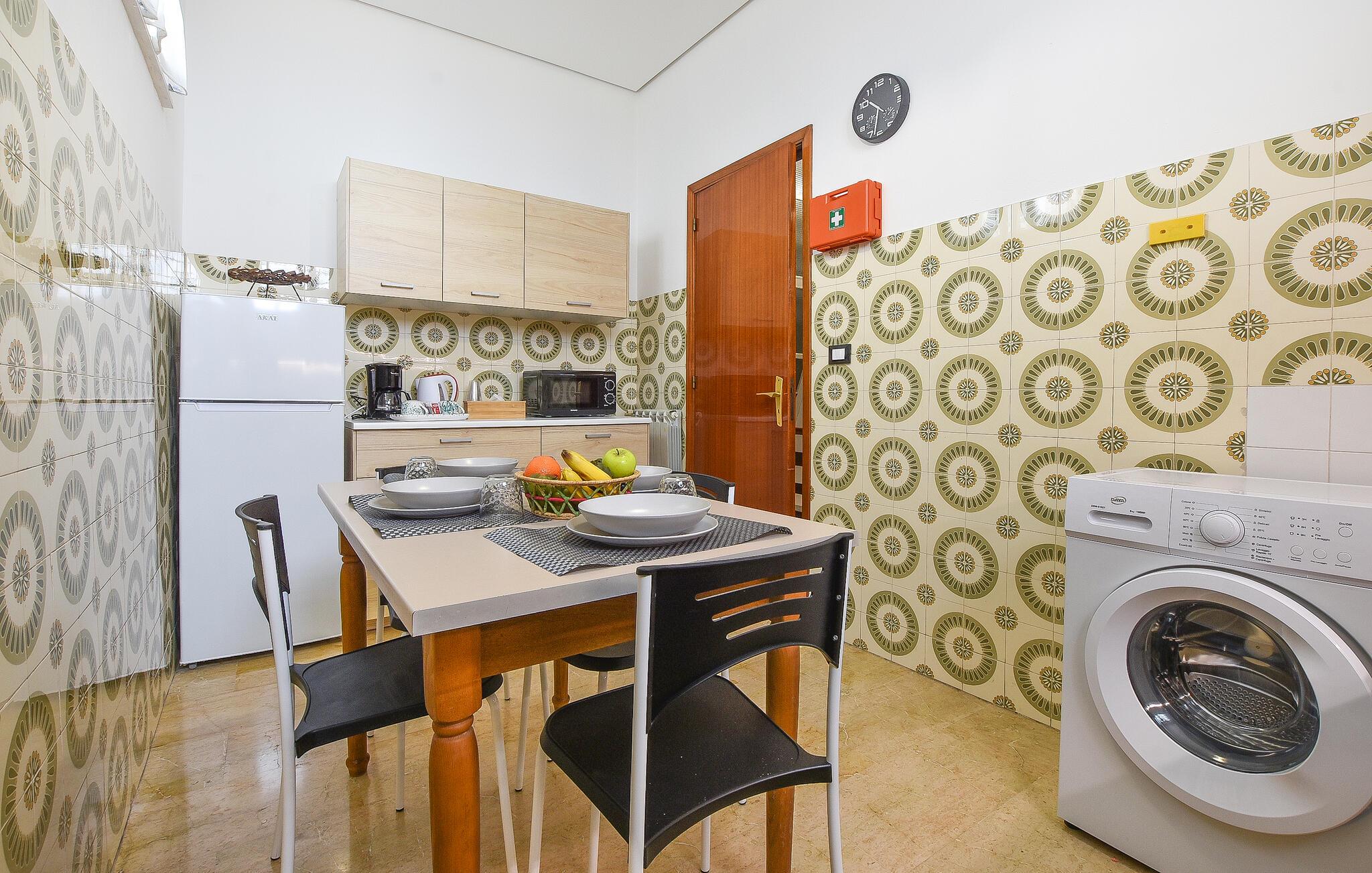 Tag familien under armen og rejs til Sicilien, hvor I får en vidunderlig base i for jeres fere i denne indbydende lejlighed i hjertet af øen. Boligen er nydeligt indrettet med flotte, mønstrede fliser, charmerende udsmykningsdetaljer og et godt køkken, hvor I kan tilberede familiens livretter efter en dejlig dag på udflugt.