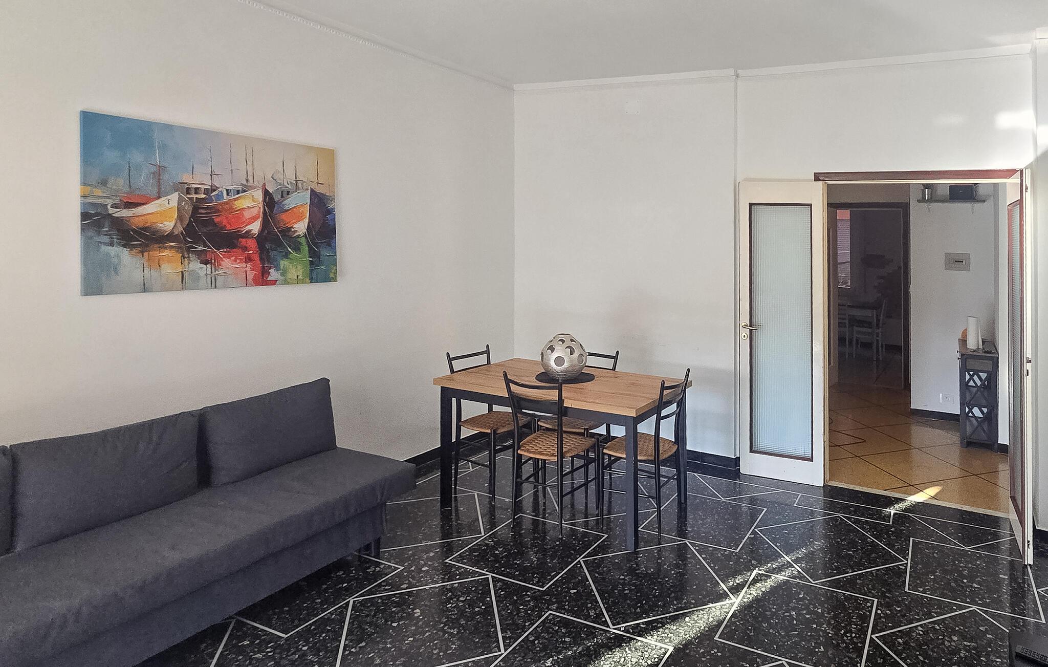 Denne rummelige lejlighed tilbyder et komfortabelt hjem væk fra hjemmet, mens I udforsker seværdighederne langs den liguriske kyst. Tilbered lækre pastaretter med friske ingredienser fra markedet, og planlæg jeres aktiviteter over afslappede måltider. Efter en begivenhedsrig dag kan I streame en film på sofaen eller nyde en spilleaften.