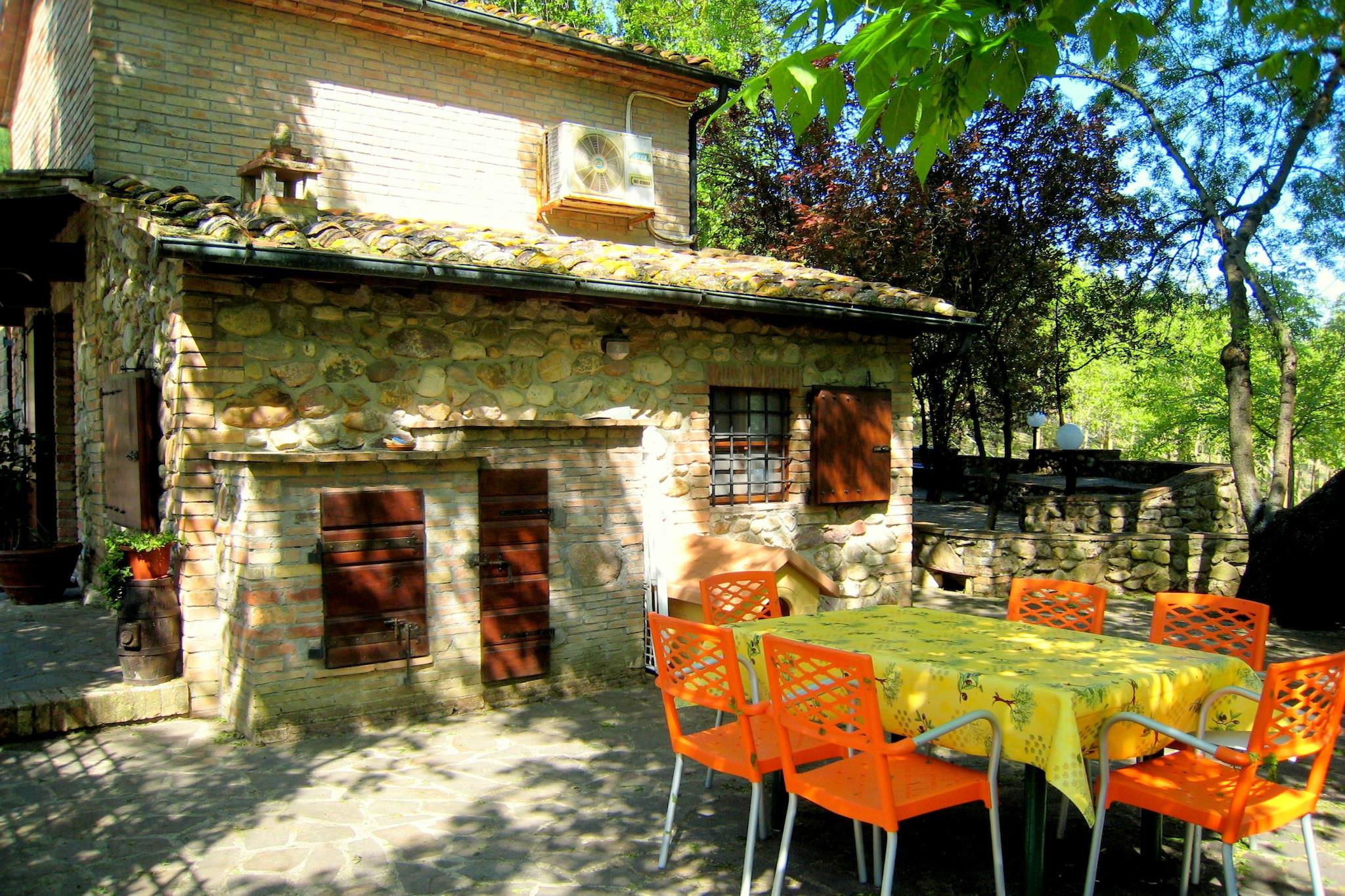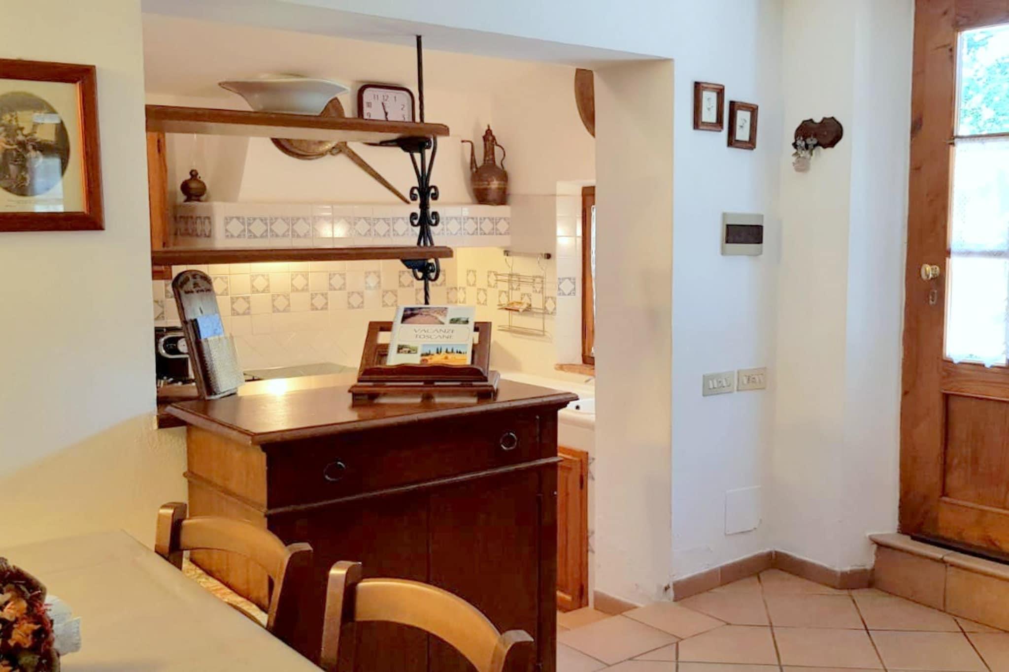 Dette kæledyrsvenlige feriehus til 5 gæster ligger i det rolige landskab i Chiusdino og tilbyder et roligt tilflugtssted kun 2 km fra landsbyens centrum. Huset er fordelt på to etager og har en hyggelig stue/spisestue med pejs, satellit-tv og aircondition. Det veludstyrede åbne køkken har et komfur med 4 kogeplader og ovn, ideel til at tilberede hjemmelavede toscanske retter. Der er to soveværelser: et dobbeltværelse i stueetagen og et andet værelse ovenpå (via forholdsvis stejle trapper) med en dobbeltseng og en enkeltseng, perfekt til familier. Nyd udendørslivet med en privat indhegnet have (480 m²) komplet med terrasse, møbler, grill og legeredskaber. Udekøkkenet tilføjer charme til al fresco madlavning, mens den indendørs vaskemaskine og elvarme tilbyder komfort under længere ophold. Der er privat parkering på stedet, hvilket gør det nemt at udforske regionen. I nærheden er det historiske kloster San Galgano et must-besøg, berømt for sin tagløse skønhed og legendariske sværd i stenen. Chiusdinos lokale spisesteder som La Palazzina serverer autentiske toscanske retter. Naturelskere vil nyde de omkringliggende skove og floder, mens kysten ved Follonica ligger kun 40 km væk til strand-dagsture. En perfekt blanding af natur, kultur og komfort i det sydlige Toscana.