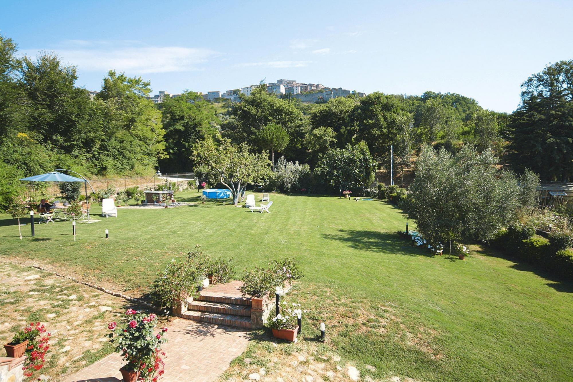 Stort landsted indrettet i rustik toscansk stil med panoramaudsigt. Ejendommen har en fredelig beliggenhed i vinmarkerne og er hjemsted for nogle dyr såsom æsler, grise, gæs, høns og ænder. Landstedet er omgivet af en stor, velholdt have med skyggefulde siddepladser. Nyd den vidunderlige fremsyn herfra! En flod inviterer dig til at svømme kun 5 km væk. Bjergbyen Chiusdino, sydvest for Siena og med et velbevaret historisk centrum, ligger kun 1 km fra palæet. Ikke egnet til personer med nedsat mobilitet