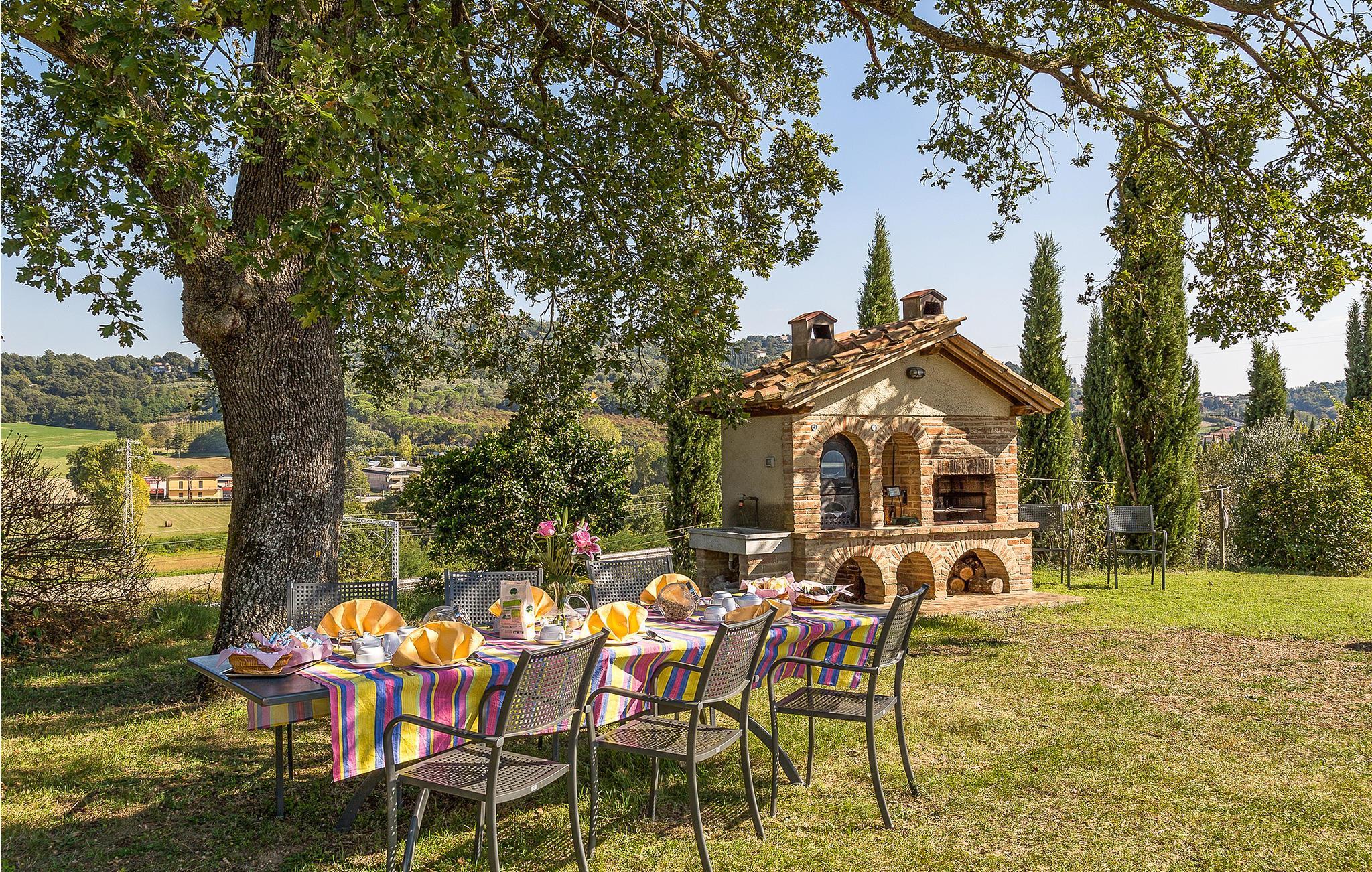 Dette skønne hus kan rumme op til 12 gæster. Den store private have med egen pool er et fantastisk sted at slappe af og nyde det vidunderlige toscanske klima. Her kan I begynde dagen med en lækker morgenmad eller afslutte dagen med et glas lokal vin, mens I beundrer udsigten til det omgivende kuperede landskab.