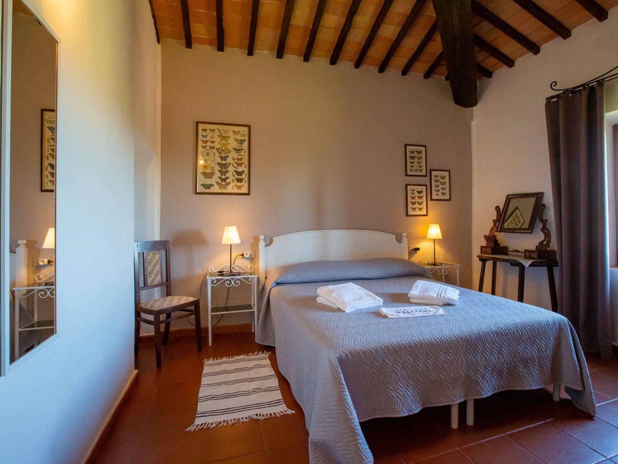 Location Macciano. In the middle of the splendid "Val di Chiana", situated on the first floor of a splendid 16th century farmhouse that has been completely renovated, the flat enjoys a marvellous view of the entire surrounding valley thanks to a living room created from an old window loggia.Vali Apartment situated on the first floor overlooking the villa's beautiful rose garden. Comprising living-dining room with sofa bed, open kitchen, double bedroom and bathroom with shower. Outdoor area equipped with parasol, table and chairs.