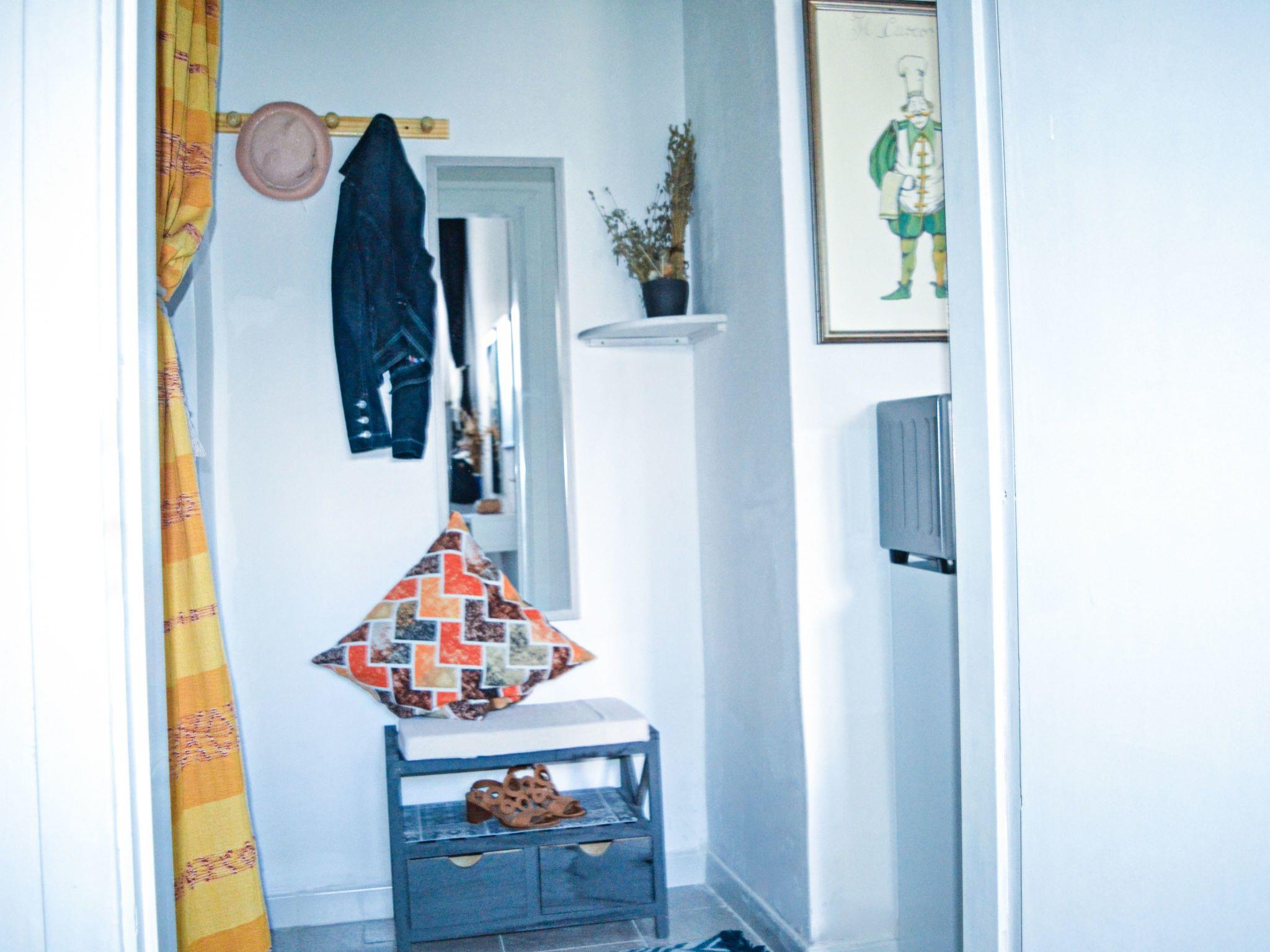 There is a small hallway with a wardrobe and a full-length mirror between the cooking area of the holiday flat and the bedroom.