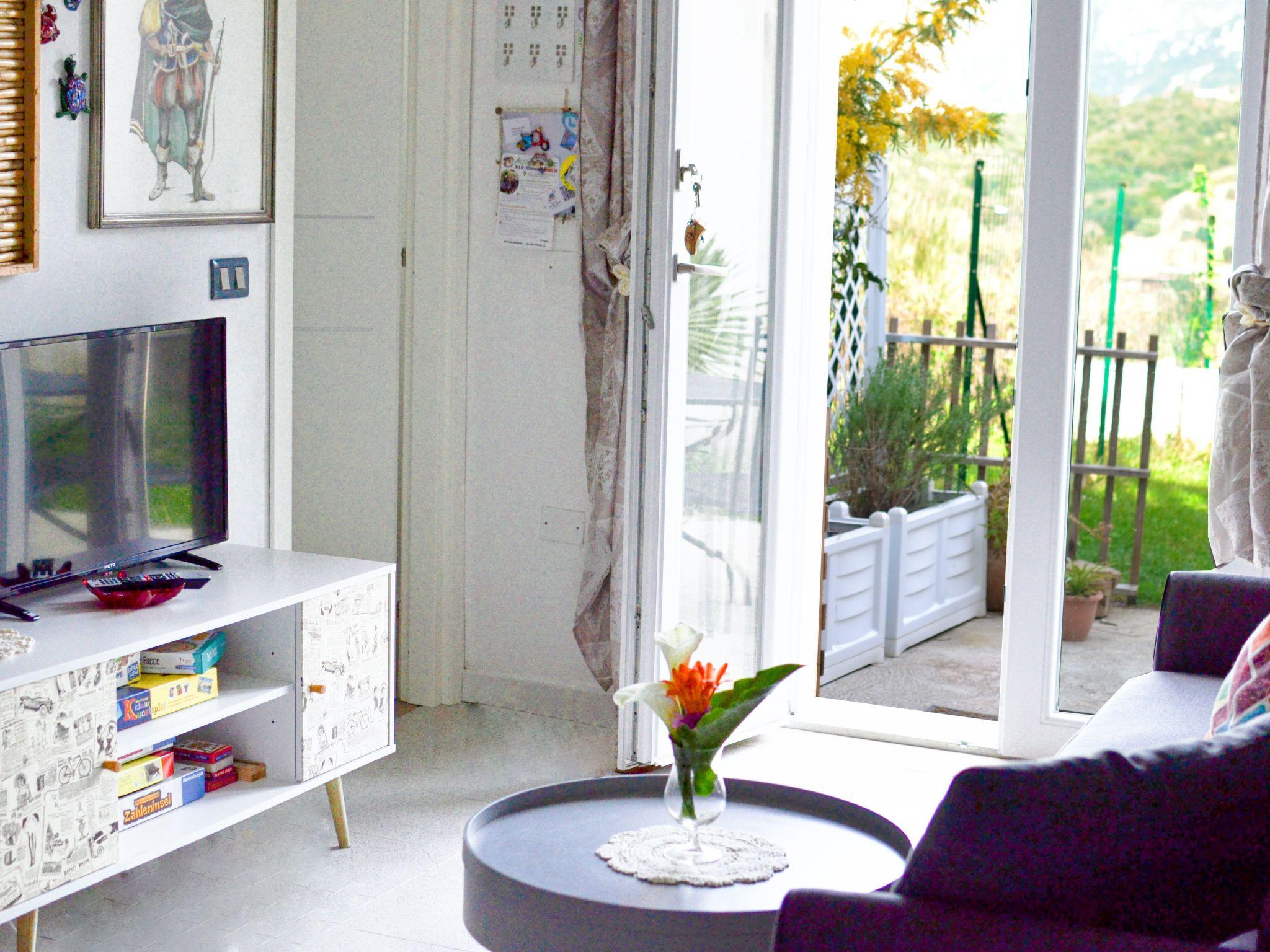 The holiday flat covers an area of just under 50 m², which is divided into an open-plan living room with kitchen and dining area. There is also a small hallway with a wardrobe, a large master bedroom with a double bed and a view of Trentinara, a small children's bedroom with a bunk bed and desk and a daylight bathroom. The flat is therefore best suited for two adults and a maximum of 2 children